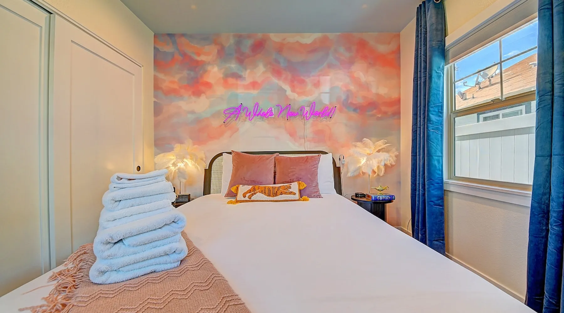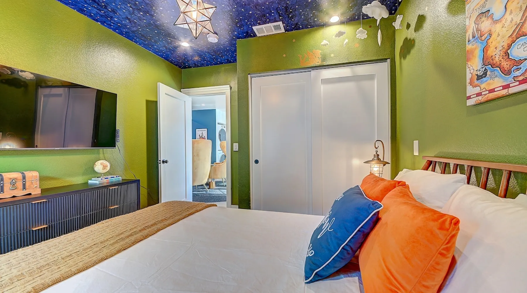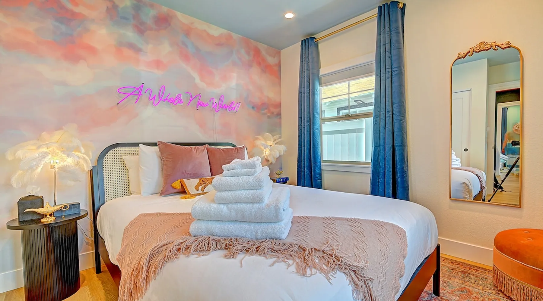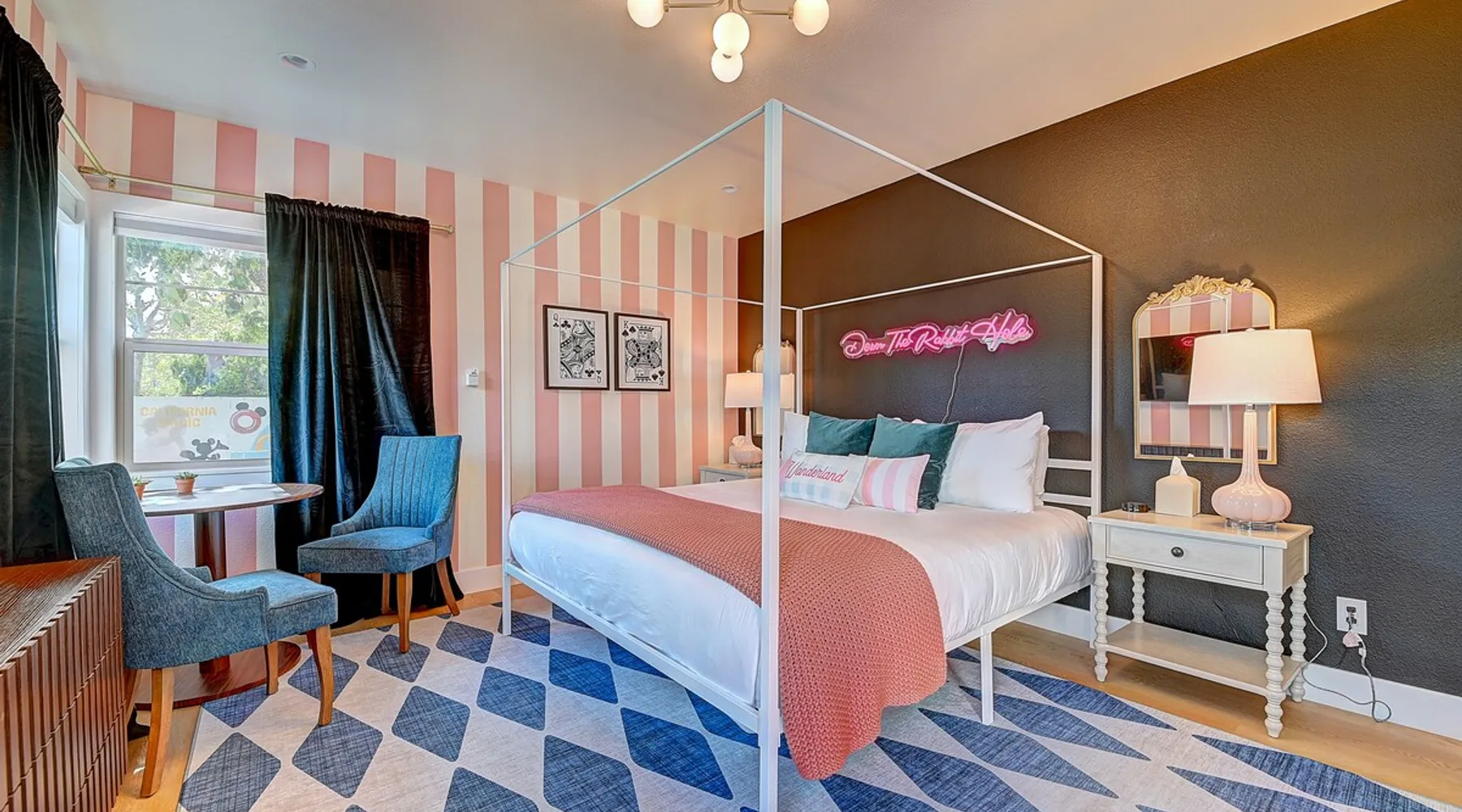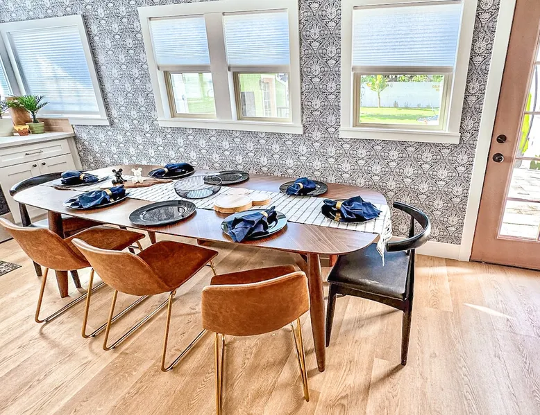 ✨ Welcome to AvoCottage, a bespoke home by Bamboo Dwellings ✨ Just 12 miles to Disneyland and 6 to Newport Beach. Enjoy a fenced backyard with a soaking pool, fire pit, yard games, outdoor TV, and Blackstone griddle. Features 5 magical Disney themed bedrooms, 3 luxury bathrooms, a game room with arcade, EV charger, private parking, and premium amenities. We have all the magic of SoCal with the comforts of home. The space 🥑 What You’ll Love About AvoCottage Our whimsical, newly renovated 1920s Californian Cottage is single storied and has 1400 sq ft of indoor space plus a 200 sq ft detached game room and an expansive Avocado tree shaded backyard. With our home, the magic from Disneyland doesn’t end at the park! Designed to give you the same sense of wonder and excitement you get at Disneyland—without feeling like you’re walking through a gift shop. It’s immersive with a touch of Disney magic in every room and perfect for families and friend groups. Inside, you'll find an open-concept layout with: ✶ Fully equipped kitchen with a blender, rice cooker, and all the tools a chef like Remy or Tianna could need ✶ Coffee bar with a kettle and both Keurig and drip coffee options ✶ Kids dishes, utensils, and cups (including spill resistant ones!) ✶ Dining table comfortably seats 8 guests ✶ High chair provided for your littlest mouseketeer ✶ 60" Smart TV with complimentary Netflix & Disney+ ✶ Comfy seating on luxury branded furniture for cuddle sessions while watching your favorite Disney films ✶ Board games for unplugged fun ✶ 3 beautifully designed bathrooms stocked with organic Public Goods toiletries, plush hotel towels, and a hairdryer. One includes a relaxing soaking tub. ✶ Washer and dryer for your convenience during longer stays You'll rest easy in 5 magical bedrooms, each with premium Helix mattresses, hotel bedding, and its own Disney-inspired theme: 🐇 Alice in Wonderland Studio: Private entrance from the backyard, king bed, crib, ensuite bathroom, Smart TV, coffee bar, and bistro dining set for your own Mad Hatter tea party. (Corner table can also be used as a desk) 🧚🏻 Neverland Suite: Queen bed, ensuite bathroom with tub, Smart TV 🕌 Aladdin Room: Queen bed, trendy neon sign decor 🌍 It’s a Small World Room: Twin over full bunk with trundle, dress-up closets, toys, and books 🛡 Avengers Game Room: Detached suite with queen sleeper sofa, Smart TV, climate control, and vintage arcade games Note: Game Room bathroom is inside the main house via the private backyard—please consider this during rainy months. 🌴Step outside to your private, fully fenced backyard oasis with: ✶ Heated cowboy-style tank pool ✶ Blackstone griddle and outdoor dining table ✶ Fire pit with string lights for cozy evenings ✶ Outdoor living room and TV for movies under the stars! ✶ Turf lawn with umbrellas, yard games, and room to run the zoomies out ✶ Hidden Mickeys to discover! ✶100+ year old Avocado tree adorned with string lights and 2 tree swings 🌿Heads Up, Nature Lovers: Our fruit trees attract Raccoons and Opossums. They’re harmless but can leave their droppings, we do our best to stay on top of removal between stays. 🦝 Guest favorite Avengers-themed game room ✶ Detached carriage house with Queen sleeper sofa ✶ combo Foosball/air hockey/ping pong table ✶ Vintage arcade games ✶ 65” Smart TV + surround sound for epic movie nights or game-day energy ✶ Prefer to have an epic office space? We can replace the foosball table with a spacious desk! Included thoughtful Amenities ✶ Starbucks Coffee, Tea, Hot Chocolate ✶ Helix mattresses & hotel linens for dreamy sleep ✶ Everything for the beach: Pool/beach towels, Bogg Bag, umbrella, 4 beach chairs, sand toys, and a wagon to carry it all ✶ Outdoor blankets for cozy evenings ✶ Public Goods sulfate-free and organic bath products ✶ EV charger available (for a small additional fee of $25 per charge) Whether you're soaking in the pool, grilling under the sun, or watching Disney classics with your favorite people, AvoCottage wraps you in comfort and a sprinkle of SoCal magic. It isn't just a place to sleep—it’s a place where core memories are made. 🌴 Book your Orange County escape today and experience the magic for yourself. 🌞 Guest access ✶ Easy self check-in with a keyless entry system ✶ Secure keyless keypad entry ✶ Your personalized access code, along with detailed check-in instructions, will be sent to you one day before your arrival. Other things to note 5th Bedroom: The Game Room Our Game Room doubles as a cozy private sleeping space, complete with a comfortable queen-size sofa bed and an armoire for clothing storage. Fresh linens and pillows are provided inside the armoire so you can make the bed at your convenience. This space is located in a detached carriage house just across the patio. It is well-insulated, climate-controlled, and filled with natural light through its windows, offering a pleasant and quiet retreat. Please note: While the Game Room is fully equipped for comfort, the bathroom is located in the main house or studio, requiring a short outdoor walk. California’s weather is generally sunny and mild year-round, with the exception of the occasional rain in spring. We recommend keeping this in mind if you're planning to use this as a fifth bedroom during your stay. About the Pool Our cowboy-style tank pool is 10 feet in diameter and 22 inches deep—perfect for cooling off with 6 to 7 adults. EV Charging An electric vehicle charging station is available on-site for guest use. $25 per charge applies. Pet Policy Well-behaved dogs are welcome with prior approval. $150 per pet, per day. Dogs only (no cats or other animals). Pets are not allowed on furniture or linens—extra $50 fee applies for excess hair. Please bring your own bedding if needed. Use provided bags for waste; turf clean-up incurs a $50 fee. Unauthorized pets will result in addit