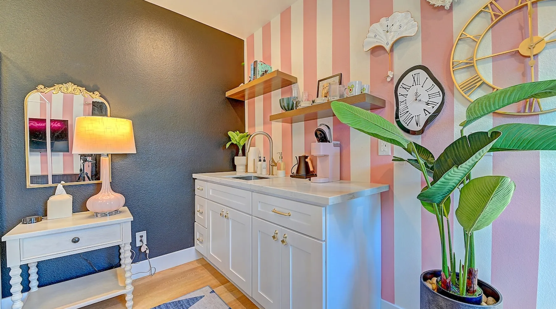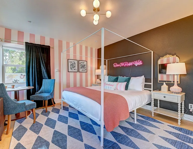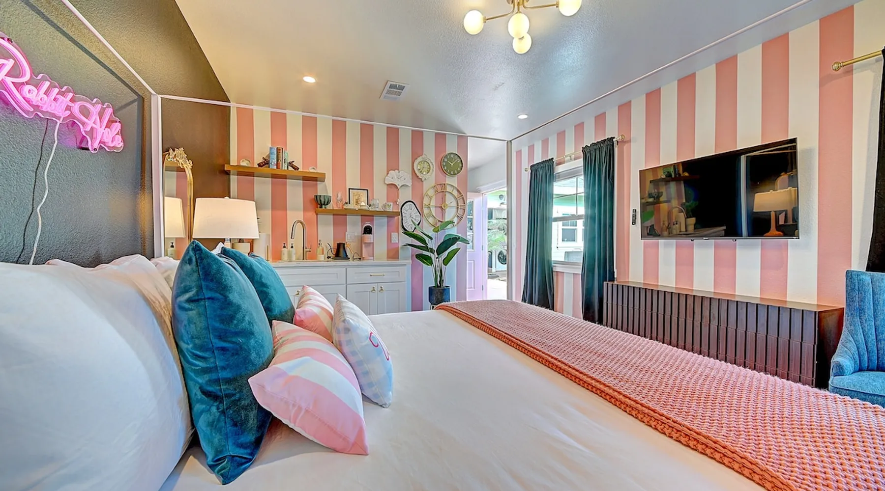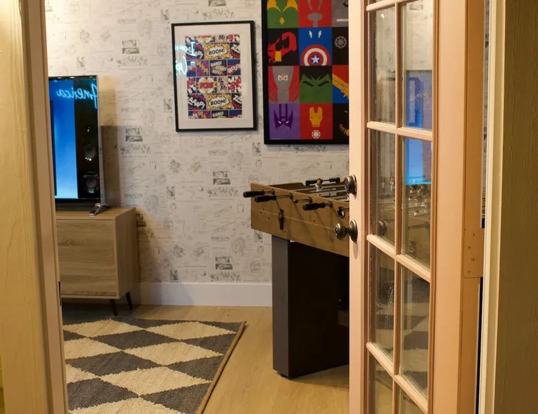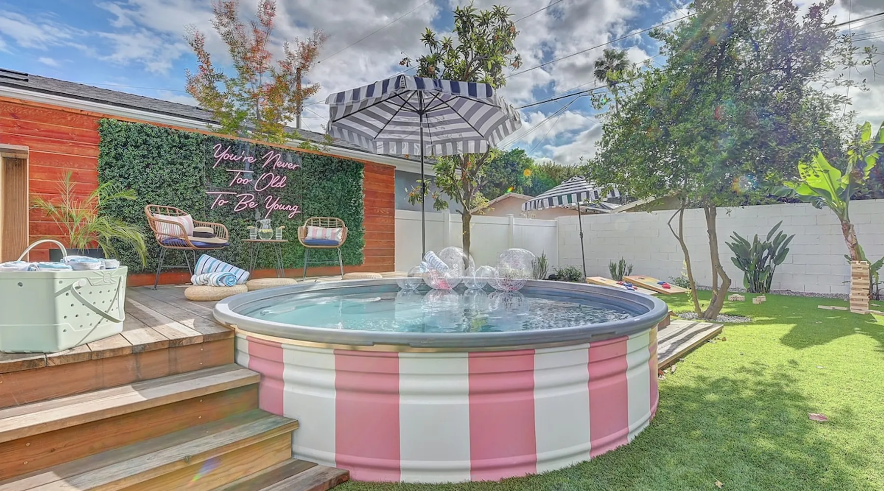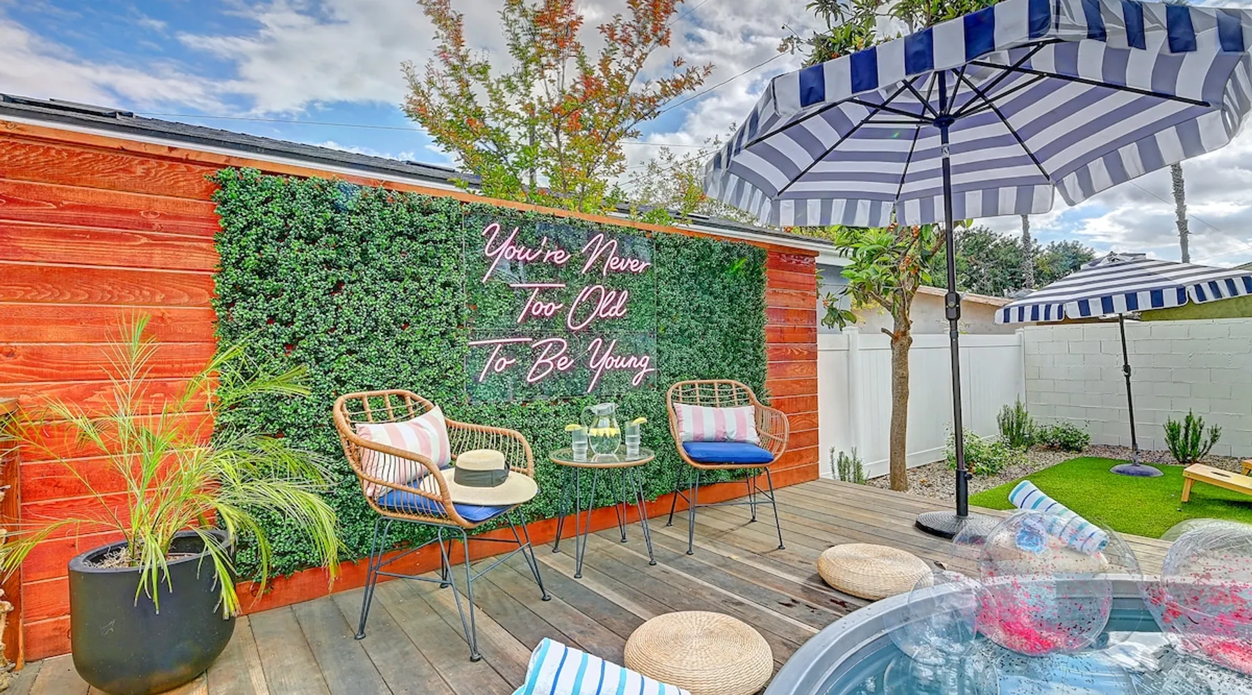 ✨ Welcome to AvoCottage, a bespoke home by Bamboo Dwellings ✨ Just 12 miles to Disneyland and 6 to Newport Beach. Enjoy a fenced backyard with a soaking pool, fire pit, yard games, outdoor TV, and Blackstone griddle. Features 5 magical Disney themed bedrooms, 3 luxury bathrooms, a game room with arcade, EV charger, private parking, and premium amenities. We have all the magic of SoCal with the comforts of home. The space 🥑 What You’ll Love About AvoCottage Our whimsical, newly renovated 1920s Californian Cottage is single storied and has 1400 sq ft of indoor space plus a 200 sq ft detached game room and an expansive Avocado tree shaded backyard. With our home, the magic from Disneyland doesn’t end at the park! Designed to give you the same sense of wonder and excitement you get at Disneyland—without feeling like you’re walking through a gift shop. It’s immersive with a touch of Disney magic in every room and perfect for families and friend groups. Inside, you'll find an open-concept layout with: ✶ Fully equipped kitchen with a blender, rice cooker, and all the tools a chef like Remy or Tianna could need ✶ Coffee bar with a kettle and both Keurig and drip coffee options ✶ Kids dishes, utensils, and cups (including spill resistant ones!) ✶ Dining table comfortably seats 8 guests ✶ High chair provided for your littlest mouseketeer ✶ 60" Smart TV with complimentary Netflix & Disney+ ✶ Comfy seating on luxury branded furniture for cuddle sessions while watching your favorite Disney films ✶ Board games for unplugged fun ✶ 3 beautifully designed bathrooms stocked with organic Public Goods toiletries, plush hotel towels, and a hairdryer. One includes a relaxing soaking tub. ✶ Washer and dryer for your convenience during longer stays You'll rest easy in 5 magical bedrooms, each with premium Helix mattresses, hotel bedding, and its own Disney-inspired theme: 🐇 Alice in Wonderland Studio: Private entrance from the backyard, king bed, crib, ensuite bathroom, Smart TV, coffee bar, and bistro dining set for your own Mad Hatter tea party. (Corner table can also be used as a desk) 🧚🏻 Neverland Suite: Queen bed, ensuite bathroom with tub, Smart TV 🕌 Aladdin Room: Queen bed, trendy neon sign decor 🌍 It’s a Small World Room: Twin over full bunk with trundle, dress-up closets, toys, and books 🛡 Avengers Game Room: Detached suite with queen sleeper sofa, Smart TV, climate control, and vintage arcade games Note: Game Room bathroom is inside the main house via the private backyard—please consider this during rainy months. 🌴Step outside to your private, fully fenced backyard oasis with: ✶ Heated cowboy-style tank pool ✶ Blackstone griddle and outdoor dining table ✶ Fire pit with string lights for cozy evenings ✶ Outdoor living room and TV for movies under the stars! ✶ Turf lawn with umbrellas, yard games, and room to run the zoomies out ✶ Hidden Mickeys to discover! ✶100+ year old Avocado tree adorned with string lights and 2 tree swings 🌿Heads Up, Nature Lovers: Our fruit trees attract Raccoons and Opossums. They’re harmless but can leave their droppings, we do our best to stay on top of removal between stays. 🦝 Guest favorite Avengers-themed game room ✶ Detached carriage house with Queen sleeper sofa ✶ combo Foosball/air hockey/ping pong table ✶ Vintage arcade games ✶ 65” Smart TV + surround sound for epic movie nights or game-day energy ✶ Prefer to have an epic office space? We can replace the foosball table with a spacious desk! Included thoughtful Amenities ✶ Starbucks Coffee, Tea, Hot Chocolate ✶ Helix mattresses & hotel linens for dreamy sleep ✶ Everything for the beach: Pool/beach towels, Bogg Bag, umbrella, 4 beach chairs, sand toys, and a wagon to carry it all ✶ Outdoor blankets for cozy evenings ✶ Public Goods sulfate-free and organic bath products ✶ EV charger available (for a small additional fee of $25 per charge) Whether you're soaking in the pool, grilling under the sun, or watching Disney classics with your favorite people, AvoCottage wraps you in comfort and a sprinkle of SoCal magic. It isn't just a place to sleep—it’s a place where core memories are made. 🌴 Book your Orange County escape today and experience the magic for yourself. 🌞 Guest access ✶ Easy self check-in with a keyless entry system ✶ Secure keyless keypad entry ✶ Your personalized access code, along with detailed check-in instructions, will be sent to you one day before your arrival. Other things to note 5th Bedroom: The Game Room Our Game Room doubles as a cozy private sleeping space, complete with a comfortable queen-size sofa bed and an armoire for clothing storage. Fresh linens and pillows are provided inside the armoire so you can make the bed at your convenience. This space is located in a detached carriage house just across the patio. It is well-insulated, climate-controlled, and filled with natural light through its windows, offering a pleasant and quiet retreat. Please note: While the Game Room is fully equipped for comfort, the bathroom is located in the main house or studio, requiring a short outdoor walk. California’s weather is generally sunny and mild year-round, with the exception of the occasional rain in spring. We recommend keeping this in mind if you're planning to use this as a fifth bedroom during your stay. About the Pool Our cowboy-style tank pool is 10 feet in diameter and 22 inches deep—perfect for cooling off with 6 to 7 adults. EV Charging An electric vehicle charging station is available on-site for guest use. $25 per charge applies. Pet Policy Well-behaved dogs are welcome with prior approval. $150 per pet, per day. Dogs only (no cats or other animals). Pets are not allowed on furniture or linens—extra $50 fee applies for excess hair. Please bring your own bedding if needed. Use provided bags for waste; turf clean-up incurs a $50 fee. Unauthorized pets will result in addit