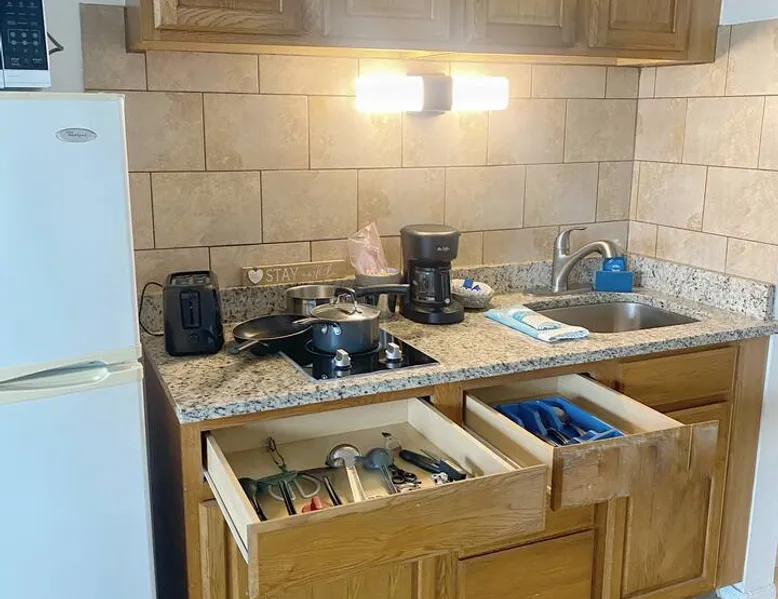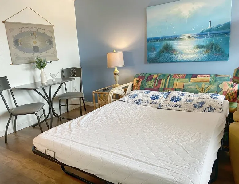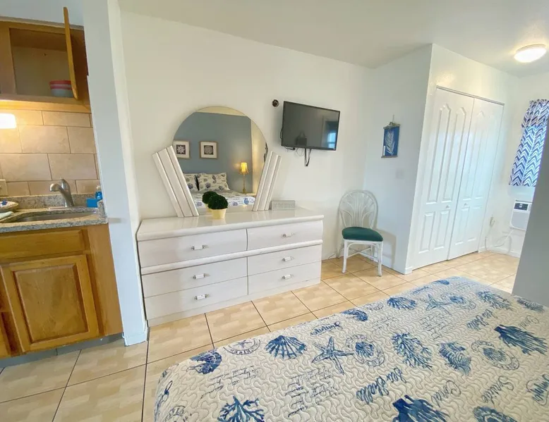 What You Will Love - Heated Pool - 4 minute walk to Beach Access - Please click "Show More" to read full description to see just how great and walkable this location is - Walking distance to many different restaurants - Free Wifi - Second Floor Unit The space Step into an authentic Old Florida getaway at Sunrise Motel, now under new management and just steps from the beach. With its laid-back charm, friendly atmosphere, and ideal location, it’s the kind of place that feels like the set of Cocoon—minus the aliens, of course. Stroll to nearby restaurants, enjoy sunsets at the beach, or just kick back and relax under the Florida sun at our heated pool. This happy guest said it best: "Always enjoy my time at Sunrise Motel—perfect location for restaurants and a quick walk to the beach!" Living Area Work desk , sleeper sofa, La-Z-Boy chair, dining table with two chairs Kitchenette Full-size fridge , microwave, coffee maker, stove top, utensils, wine opener can opener, silverware, calling board, fire extinguisher underneath kitchen sink, toaster , two pots and frying pan Bedroom Queen size bed , two nightstands, with night lamp, large dresser with mirror, 2 smart TVs with cable TV, full size closet Full Bathroom - Bathroom - bathtub/shower Please Note! - The Pool is open from dawn to dusk -Limited parking! One assigned parking space is available only. -No trailers, boat, RV parking -Absolutely NO SMOKING a $500 charge will occur for violating this policy -No pets -Jets in the bathroom tub do not function. Please do not turn on. The booking guest must sign a renters agreement before checking in. The renter's agreement will ask for your home address, phone number(s), & email address. The agreement will be sent to you automatically upon booking, check your spam folder in your email, if it is not there send me a message and I will send you a direct link to the rental agreement that must be read and signed before check-in information will be sent over. Guests are given one parking spot. Sunrise Motel is not responsible for theft or damage. No visitor vehicles. No unregistered guests allowed. Pineapple Cove Vacation Rentals LLC is not responsible for theft or damage while parked on site. STRICTLY NO SMOKING AND NO PETS ALLOWED! We Are Not Responsible For Any Personal Belongings Left Behind Other things to note The booking guest must sign a renters agreement before checking in. The renter's agreement will ask for your home address, phone number(s), & email address. The agreement will be sent to you automatically upon booking, check your spam folder in your email, if it is not there send me a message and I will send you a direct link to the rental agreement that must be read and signed before check-in information will be sent over. Guests are given one parking spot. Sunrise Motel is not responsible for theft or damage. No visitor vehicles. No unregistered guests allowed. Pineapple Cove Vacation Rentals LLC is not responsible for theft or damage while parked on site. STRICTLY NO SMOKING AND NO PETS ALLOWED! We Are Not Responsible For Any Personal Belongings Left Behind