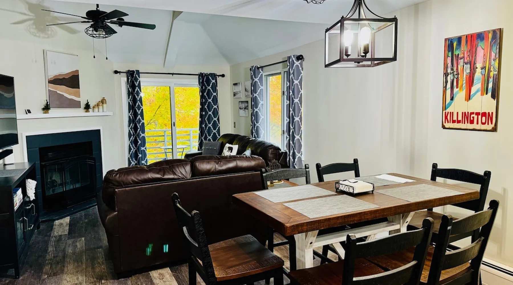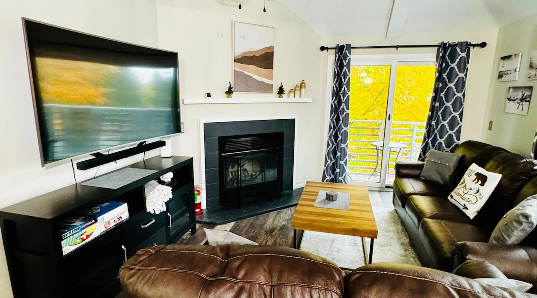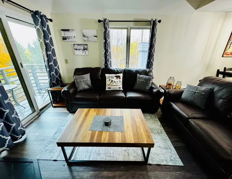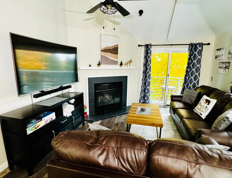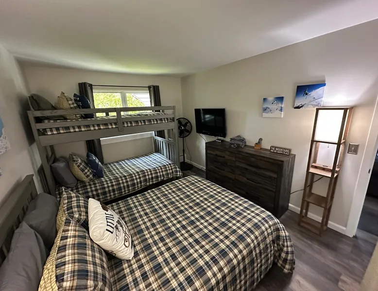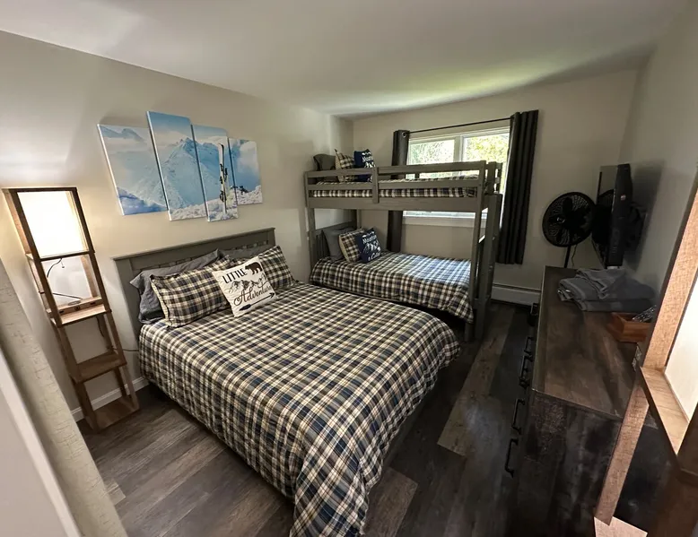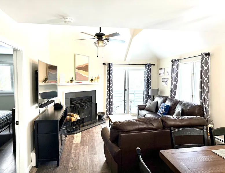 Welcome to your Vermont getaway! This beautifully renovated, dog-friendly 2BR/2BA condo in The Woods combines cozy comfort with modern style. Enjoy a spacious living area with a wood-burning fireplace, a fully stocked kitchen, and entertainment options like an arcade system and Xbox. Guests also enjoy access to premium community amenities: an indoor pool, hot tub, sauna, fitness center, and spa. Plus, the Killington Wine Bar is right next door—perfect for après-ski drinks or a great night out. The space You’ll have exclusive access to both floors of this spacious condo: Main Floor - Open-concept living area with a rustic dining table (seats 6) - Cozy living room with 65" Samsung UHDTV & soundbar, sofa + loveseat - Wood-burning fireplace for après-ski evenings - Fully equipped kitchen with microwave, dishwasher, stove, refrigerator, cookware, dinnerware, and both drip + Keurig coffee makers (coffee, tea & creamers provided) - 1 bedroom with queen bed - 1 bathroom with walk-in shower Upstairs Loft - Bedroom with twin-over-full bunk + pull-out trundle (great for kids or flexible sleeping) - Dedicated workspace with desk & chair overlooking the living area - Private balcony with serene tree views & nearby tennis courts Extras - Superfast WiFi (ideal for remote work or streaming) - Washer/dryer with detergent provided - Dog-friendly with plenty of outdoor walking space - Portable A/C available June–Mid September Guest access As a guest at The Woods, you’ll have access to: - Spa at The Woods (steam room, sauna, 75-ft indoor pool, hot tub*) - Fitness center - 2 tennis courts - On-site spa services (extra fees apply; guest discounts available) - On-site Wine Bar *Hot tub use is for guests ages 14+ - Free on-site parking included. Other things to note Skiing: Killington Snowshed Base (3.7 mi), Killington K1 Base (5.3 mi), Pico Mountain (3.5 mi) Golf: Killington Golf Course (3.6 mi), Green Mountain National Golf Course (4.4 mi) Dining & Nightlife: Pickle Barrel (1.5 mi), Wobbly Barn (2 mi), The Foundry at Summit Pond (1 mi) Weddings & Events: Killington Grand Resort (3.7 mi), Mountain Top Inn (14 mi) Airports: Rutland Regional (18 mi), Burlington Intl. (75 mi), Albany Intl. (103 mi), Manchester-Boston (115 mi) Things to Note - Maximum 6 guests - Up to 2 dogs welcome 🐾 - Portable A/C is available June-Mid September Killington STR Registration Number: 007808 Registration Details Killington STR license #007808