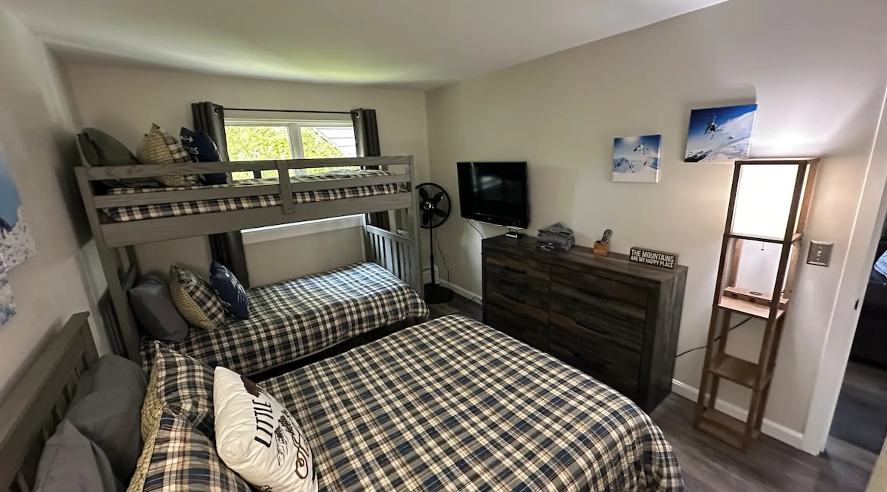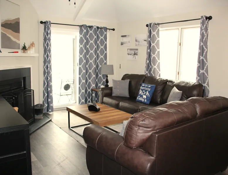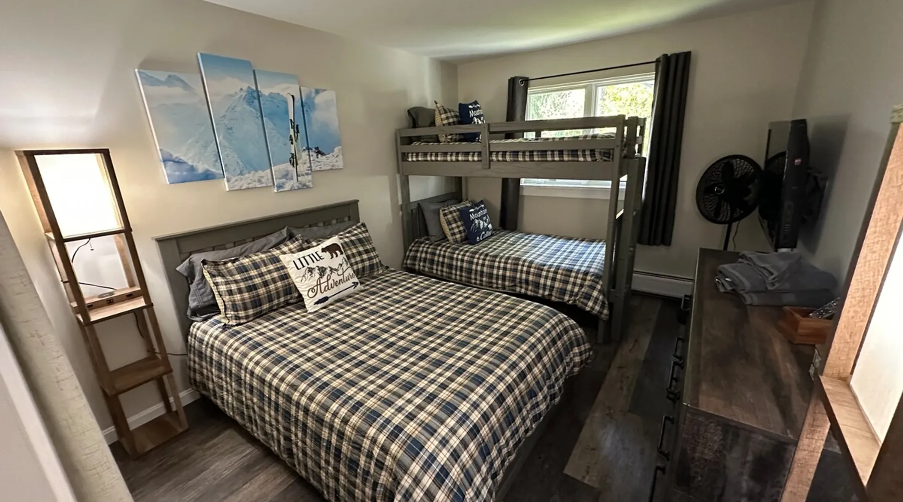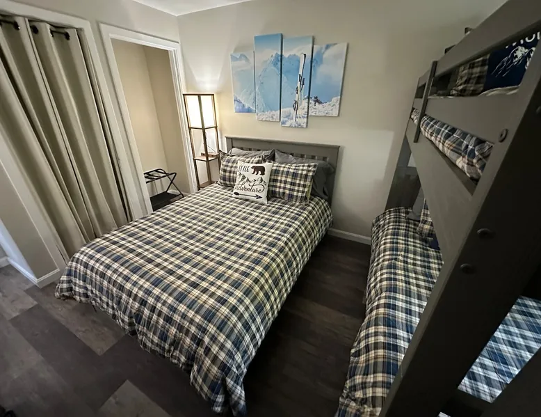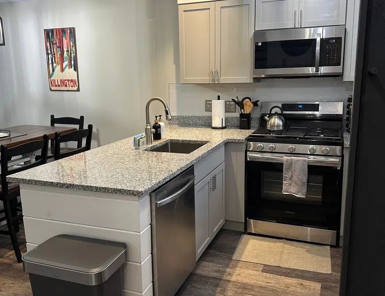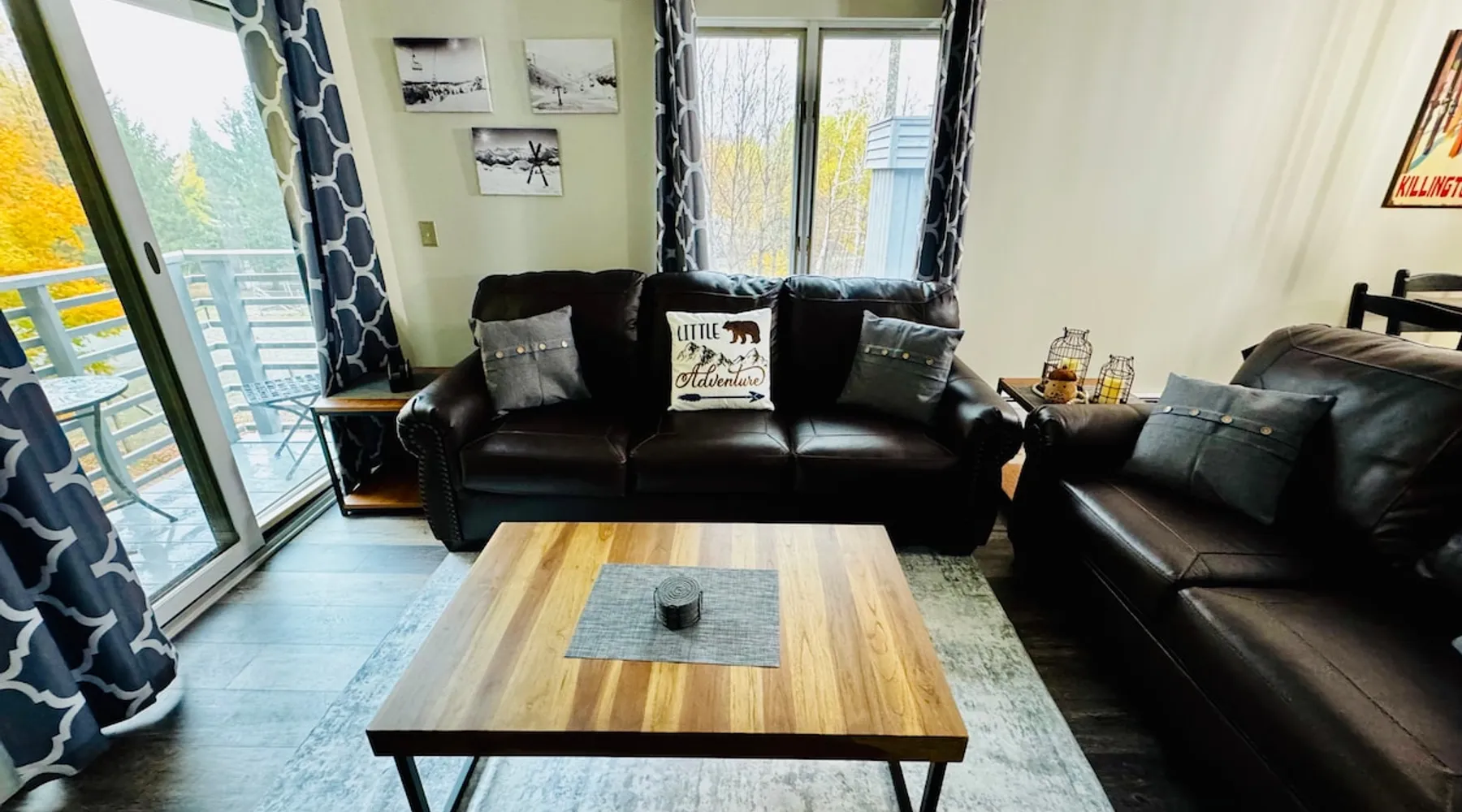 Welcome to your Vermont getaway! This beautifully renovated, dog-friendly 2BR/2BA condo in The Woods combines cozy comfort with modern style. Enjoy a spacious living area with a wood-burning fireplace, a fully stocked kitchen, and entertainment options like an arcade system and Xbox. Guests also enjoy access to premium community amenities: an indoor pool, hot tub, sauna, fitness center, and spa. Plus, the Killington Wine Bar is right next door—perfect for après-ski drinks or a great night out. The space You’ll have exclusive access to both floors of this spacious condo: Main Floor - Open-concept living area with a rustic dining table (seats 6) - Cozy living room with 65" Samsung UHDTV & soundbar, sofa + loveseat - Wood-burning fireplace for après-ski evenings - Fully equipped kitchen with microwave, dishwasher, stove, refrigerator, cookware, dinnerware, and both drip + Keurig coffee makers (coffee, tea & creamers provided) - 1 bedroom with queen bed - 1 bathroom with walk-in shower Upstairs Loft - Bedroom with twin-over-full bunk + pull-out trundle (great for kids or flexible sleeping) - Dedicated workspace with desk & chair overlooking the living area - Private balcony with serene tree views & nearby tennis courts Extras - Superfast WiFi (ideal for remote work or streaming) - Washer/dryer with detergent provided - Dog-friendly with plenty of outdoor walking space - Portable A/C available June–Mid September Guest access As a guest at The Woods, you’ll have access to: - Spa at The Woods (steam room, sauna, 75-ft indoor pool, hot tub*) - Fitness center - 2 tennis courts - On-site spa services (extra fees apply; guest discounts available) - On-site Wine Bar *Hot tub use is for guests ages 14+ - Free on-site parking included. Other things to note Skiing: Killington Snowshed Base (3.7 mi), Killington K1 Base (5.3 mi), Pico Mountain (3.5 mi) Golf: Killington Golf Course (3.6 mi), Green Mountain National Golf Course (4.4 mi) Dining & Nightlife: Pickle Barrel (1.5 mi), Wobbly Barn (2 mi), The Foundry at Summit Pond (1 mi) Weddings & Events: Killington Grand Resort (3.7 mi), Mountain Top Inn (14 mi) Airports: Rutland Regional (18 mi), Burlington Intl. (75 mi), Albany Intl. (103 mi), Manchester-Boston (115 mi) Things to Note - Maximum 6 guests - Up to 2 dogs welcome 🐾 - Portable A/C is available June-Mid September Killington STR Registration Number: 007808 Registration Details Killington STR license #007808