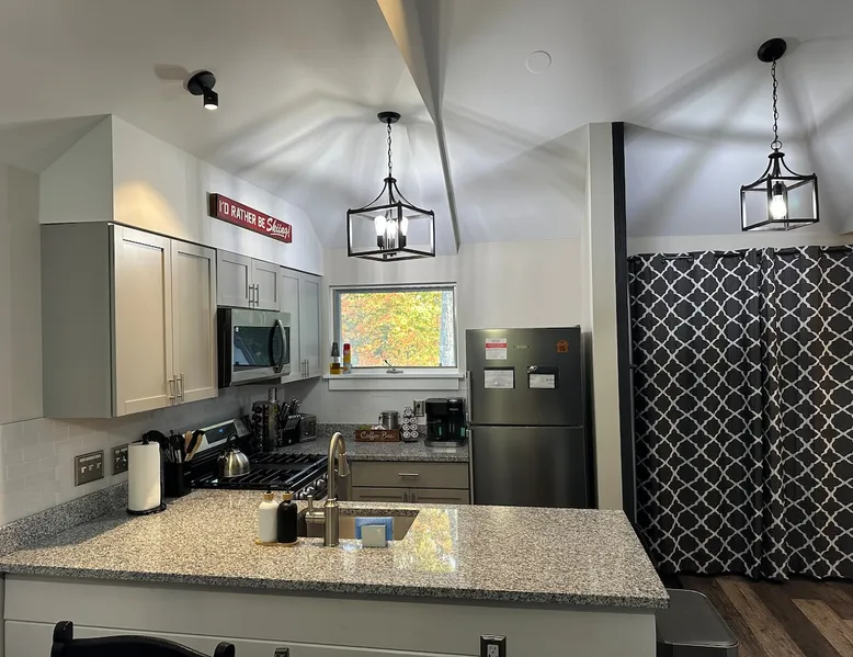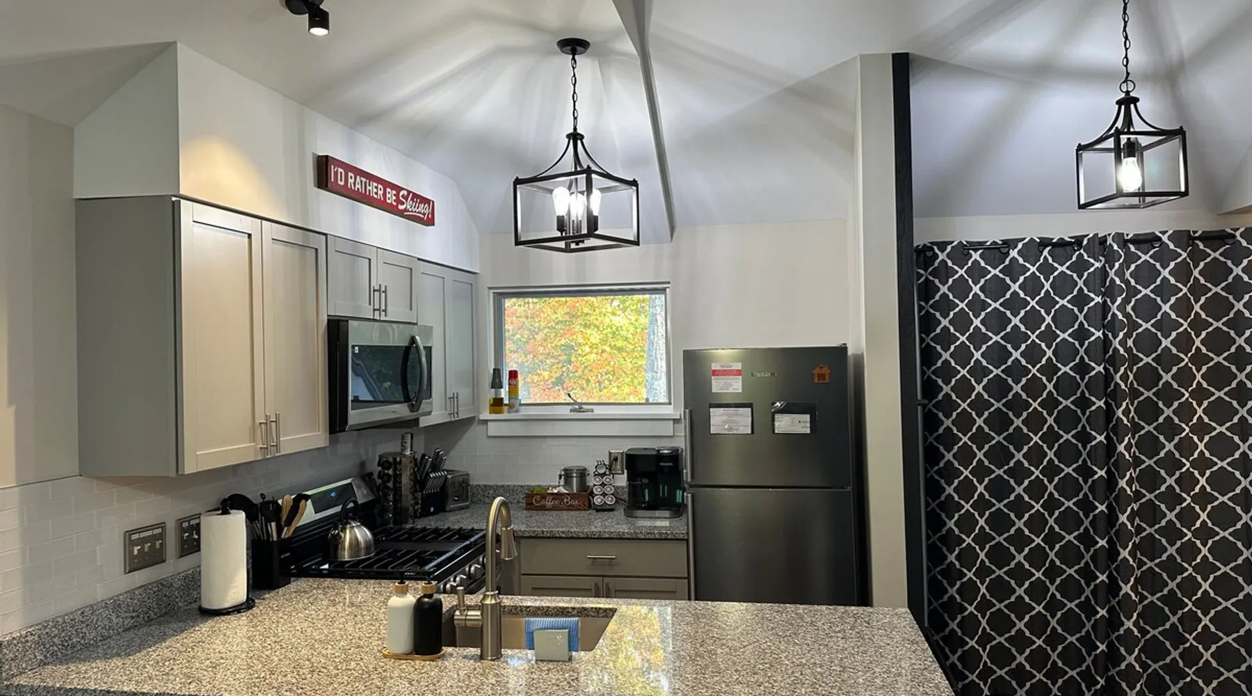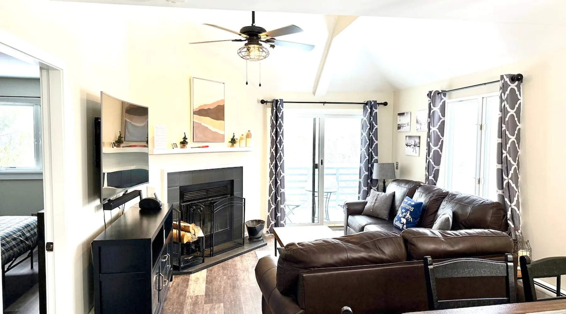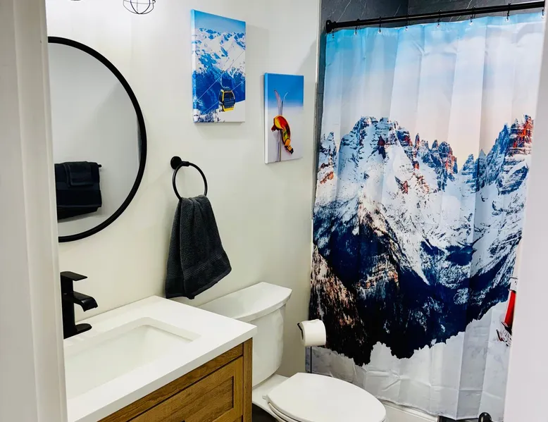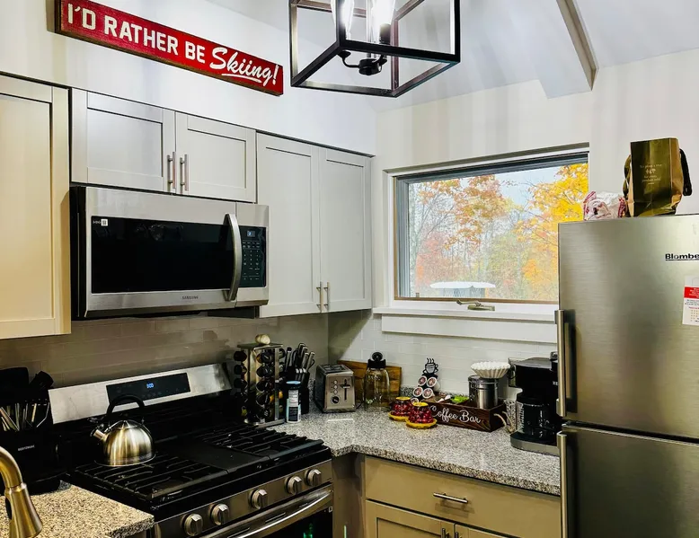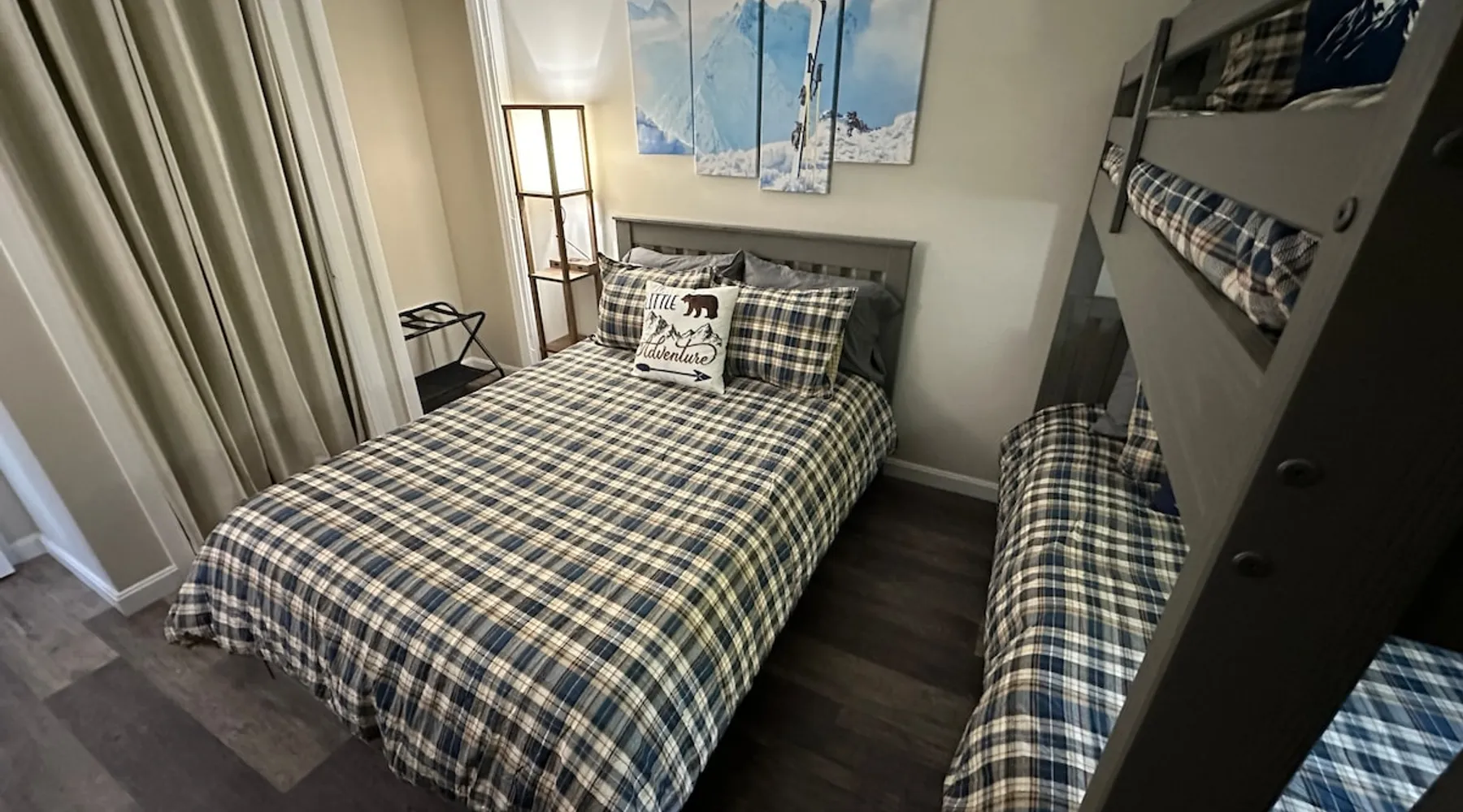 Welcome to your Vermont getaway! This beautifully renovated, dog-friendly 2BR/2BA condo in The Woods combines cozy comfort with modern style. Enjoy a spacious living area with a wood-burning fireplace, a fully stocked kitchen, and entertainment options like an arcade system and Xbox. Guests also enjoy access to premium community amenities: an indoor pool, hot tub, sauna, fitness center, and spa. Plus, the Killington Wine Bar is right next door—perfect for après-ski drinks or a great night out. The space You’ll have exclusive access to both floors of this spacious condo: Main Floor - Open-concept living area with a rustic dining table (seats 6) - Cozy living room with 65" Samsung UHDTV & soundbar, sofa + loveseat - Wood-burning fireplace for après-ski evenings - Fully equipped kitchen with microwave, dishwasher, stove, refrigerator, cookware, dinnerware, and both drip + Keurig coffee makers (coffee, tea & creamers provided) - 1 bedroom with queen bed - 1 bathroom with walk-in shower Upstairs Loft - Bedroom with twin-over-full bunk + pull-out trundle (great for kids or flexible sleeping) - Dedicated workspace with desk & chair overlooking the living area - Private balcony with serene tree views & nearby tennis courts Extras - Superfast WiFi (ideal for remote work or streaming) - Washer/dryer with detergent provided - Dog-friendly with plenty of outdoor walking space - Portable A/C available June–Mid September Guest access As a guest at The Woods, you’ll have access to: - Spa at The Woods (steam room, sauna, 75-ft indoor pool, hot tub*) - Fitness center - 2 tennis courts - On-site spa services (extra fees apply; guest discounts available) - On-site Wine Bar *Hot tub use is for guests ages 14+ - Free on-site parking included. Other things to note Skiing: Killington Snowshed Base (3.7 mi), Killington K1 Base (5.3 mi), Pico Mountain (3.5 mi) Golf: Killington Golf Course (3.6 mi), Green Mountain National Golf Course (4.4 mi) Dining & Nightlife: Pickle Barrel (1.5 mi), Wobbly Barn (2 mi), The Foundry at Summit Pond (1 mi) Weddings & Events: Killington Grand Resort (3.7 mi), Mountain Top Inn (14 mi) Airports: Rutland Regional (18 mi), Burlington Intl. (75 mi), Albany Intl. (103 mi), Manchester-Boston (115 mi) Things to Note - Maximum 6 guests - Up to 2 dogs welcome 🐾 - Portable A/C is available June-Mid September Killington STR Registration Number: 007808 Registration Details Killington STR license #007808