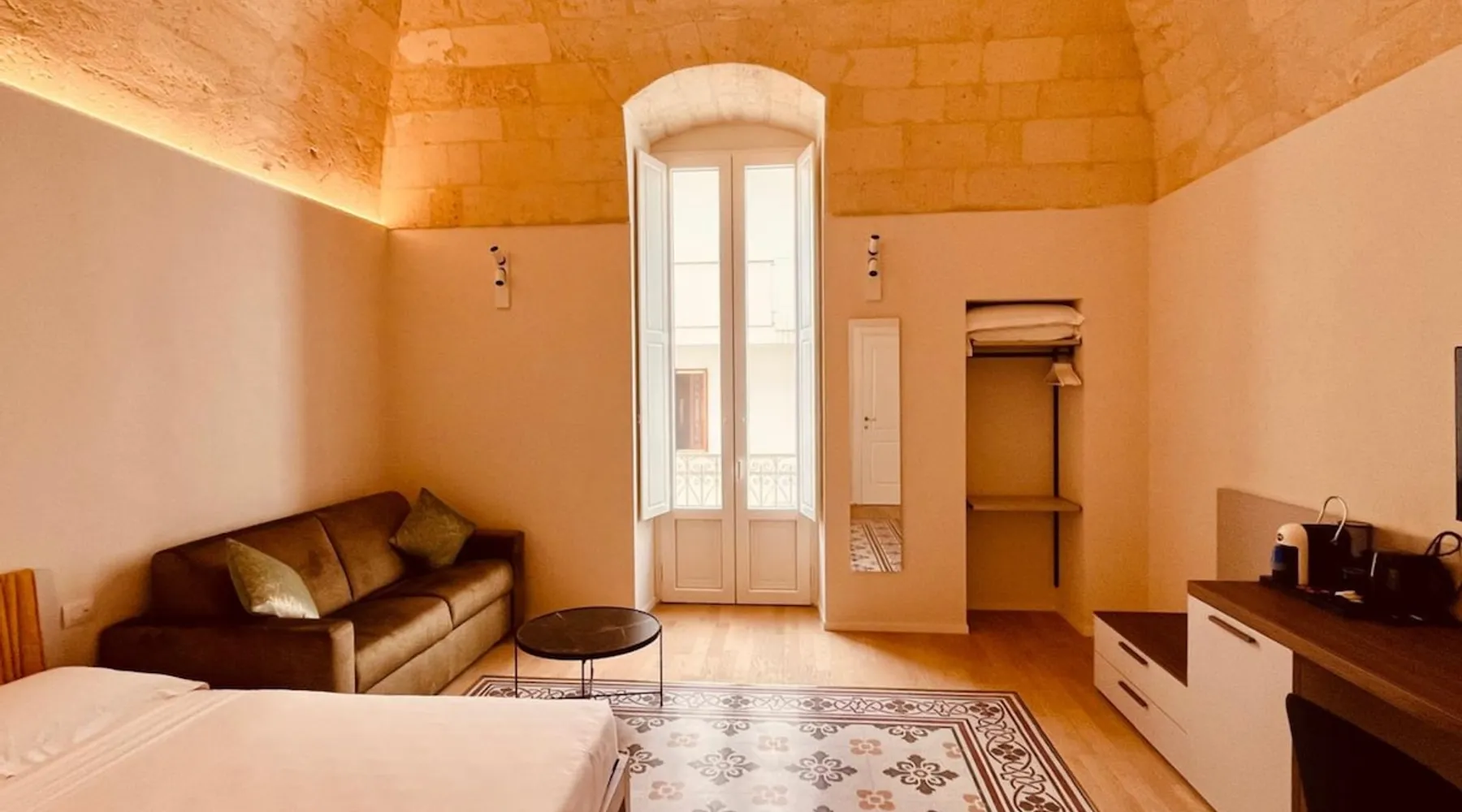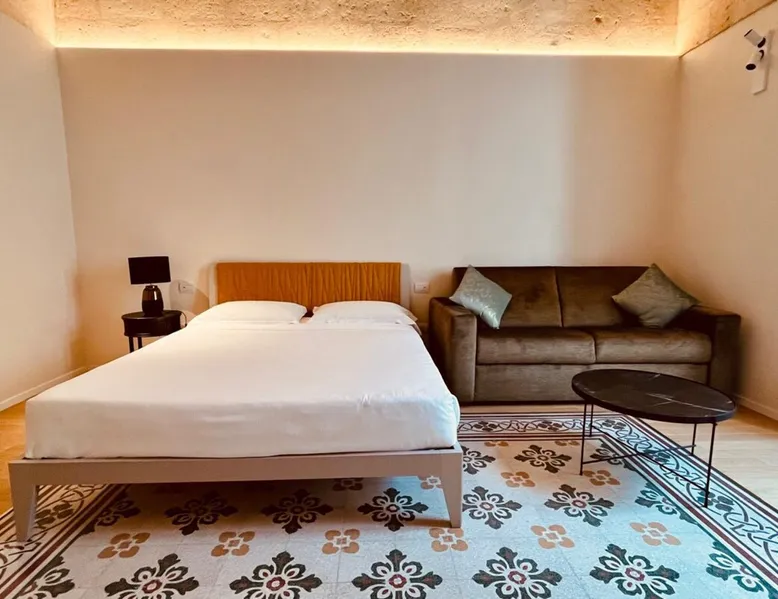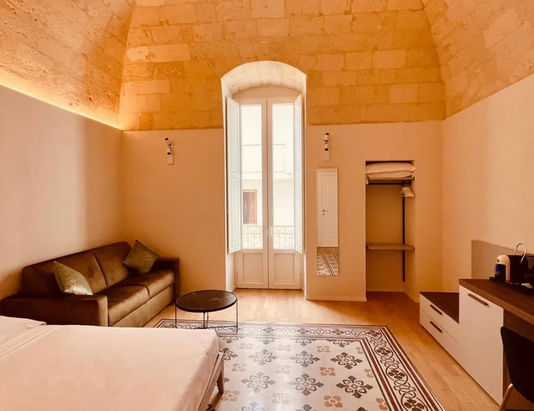 Welcome to our Junior Suite in a historic 1934 building, in the heart of Gravina in Puglia! Elegance & Comfort: Refined style, meticulous details, and modern amenities in a timeless atmosphere. Central Location: Discover on foot the majestic Acquedotto Bridge, the charming Old Town, and the Cathedral of Santa Maria Assunta. Unique Experiences: We organize personalized activities for you to fully experience the Murgia and local delights. Discover the authentic charm of Puglia! The space Immerse yourself in the timeless charm of our bright Junior Suite, located in a magnificent 1934 building. The suite features high vaulted ceilings and balconies that fill the room with natural light, offering spacious areas for complete relaxation. Every detail is designed for your comfort: free Wi-Fi, air conditioning, heating, TV, minibar, and a welcome kit with high-quality linens and comfortable slippers. Reach your suite through the elegant lobby and convenient elevator. A stay that combines history, style, and comfort, perfect for experiencing an authentic and unforgettable moment in the heart of Puglia. Guest access During your stay, we invite you to explore various areas of our charming property, each designed to offer you a unique experience: Elegant Hall: Immerse yourself in the atmosphere of our refined hall, a welcoming space where you can share unforgettable moments with other guests. Scenic Elevator: Ascend to your suite with our convenient elevator, which will transport you to a tranquil and stylish corner, making every move within the property a pleasure. Every corner of our property is designed to help you experience an unforgettable stay, immersed in the timeless charm of Puglia. During your stay Upon arrival, I personally welcome them, providing all the necessary information about the property and the surrounding area, so they feel at home right away. Before their arrival, I send check-in details, including the option for self check-in, and directions to reach the property. During their stay, I am available to answer any questions or resolve any issues, whether via phone, messages, or email. Additionally, I am happy to share recommendations and tips on restaurants, tourist attractions, and local activities to help guests make the most of their stay. I respect my guests' privacy and strive to be discreet, intervening only when necessary. Finally, I always ask them to provide feedback on their experience and to write a review of my property, so I can continuously improve and ensure a quality service for future guests. Registration Details IT072023B400102176
