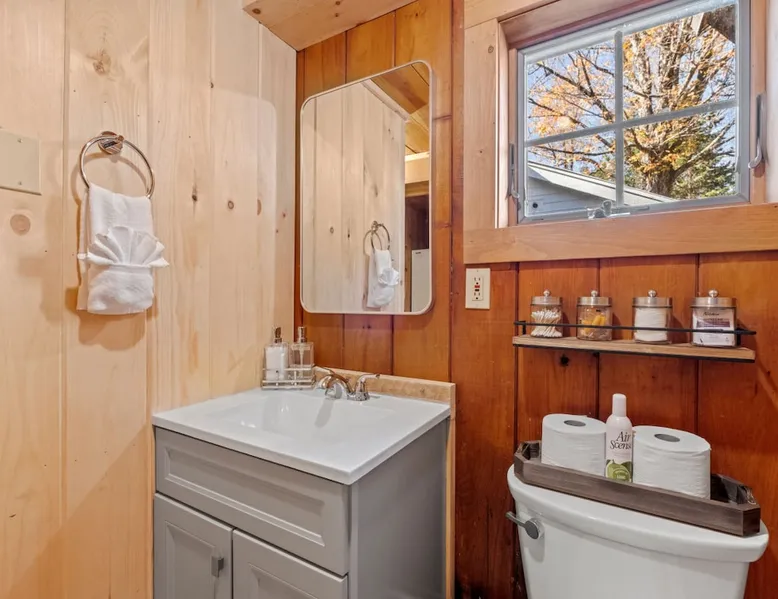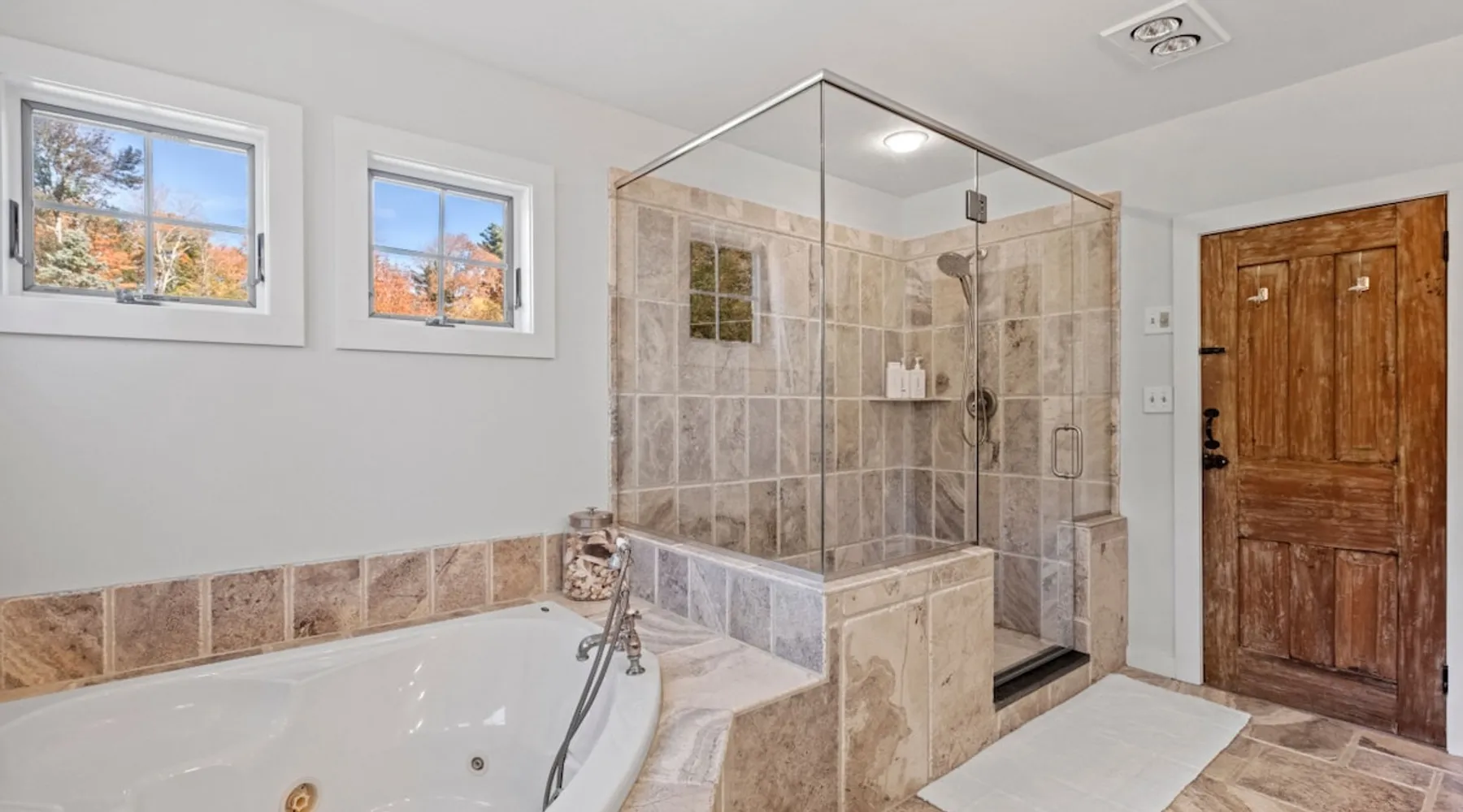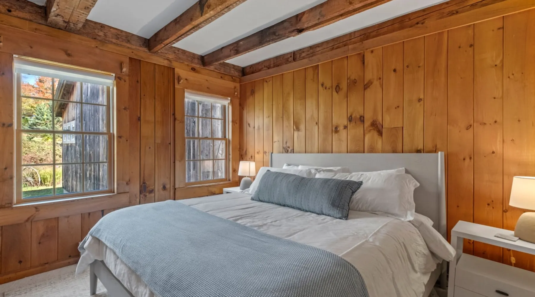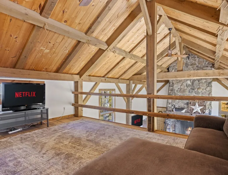 - Escape to southern Vermont in this spacious cabin with stunning mountain views - Perfect for large groups, with 6 cozy bedrooms and room for 16 guests - Enjoy a huge great room with a wood-burning fireplace and a bar area - Relax outdoors with a large yard, fire pit, and breathtaking mountain scenery - Just 12 minutes to Mt Snow Resort and 17 minutes to Grout Pond - Book now for an unforgettable retreat with your family or friends The space ☆☆ HIGHLIGHTS ☆☆ ✹ Sleeps 16 ✹ 6 spacious bedrooms: 3 kings, 1 queen, 1 full, and 6 twin beds ✹ 5 full bathrooms: essential and also not-so-essential toiletries provided ✹ Large kitchen w/ modern appliances + dining areas ✹ Complimentary coffee bar ✹ Cozy sitting rooms w/ pellet stoves ✹ Massive great room w/ bar, flat screen smart TV + huge wood-burning fireplace ✹ Loft w/ couch + flat screen smart TV ✹ Free parking for 6+ vehicles ✹ High-speed wifi + laptop-friendly workspaces ✹ Big yard with great mountain views ✹ Wood-burning fire pit ✹ Mudroom/sunroom ✹ In-unit washer/dryer ✹ Perfect location—private w/ easy access to nearby lakes, ski resorts, and other outdoor activities Here are some kind words from past guests: “This is my second stay at Tommy's place. We loved the location so much we had to go back! Each time Tommy was a responsive and helpful host. He provided lots of great information and helpful steps to get to the property, which is always helpful for those windy dirt Vermont roads. Definitely look forward to future stays at this beautiful location!” - Jessica (other location) “We had an amazing stay! Tommy and his co-hosts were super responsive and helpful when we had questions. It was so peaceful and quiet - we loved the hot tub under the deck lights on our last night while it lightly snowed. Magical! We would love to come back!” - Tiffany (other location) “Tommy was a great and responsive host. He even had some extra towels delivered to us halfway through our trip that we really appreciated. The home is in such a peaceful and beautiful spot too and was a very comfortable place to stay!” - Kassady (other location) ★★ BEDROOMS ★★ The home features six beautifully-appointed bedrooms, perfect for accommodating large families or groups. With high-end design elements and plenty of natural light, every room is a peaceful retreat after a day of adventure. ✹ Primary bedroom: Main level, primary bedroom w/ king size bed, ensuite bathroom with 2-person jacuzzi tub and separate shower, walk-in closet, and sitting area w/ flat screen smart TV ✹ Bedroom 2: Main level, king size bed, ensuite bathroom, flat screen smart TV ✹ Bedroom 3: Main level, king size bed, ensuite bathroom ✹ Bedroom 4: Upper level, queen size bed (note that other guests may need to walk through this room to access the upper level loft and Bedroom 5) ✹ Bedroom 5: Upper level, 1 twin bed + 1 full bed, ensuite bathroom ✹ Bedroom 6: Upper level “bunk room” w/ 5 built-in twin beds (note that other guests may need to walk through this room to access Bedroom 5) ★★ BATHROOMS ★★ Larger groups will appreciate the home’s five full bathrooms, each equipped with modern amenities for added convenience. Whether you're freshening up after a day of exploring or getting ready for a night in, these bathrooms offer comfort and style. ✹Bathroom 1: Ensuite to the primary bedroom w/ a large walk-in shower, 2-person jacuzzi tub, and dual sinks ✹Bathroom 2: Ensuite to bedroom 2 with a shower ✹Bathroom 3: Ensuite to bedroom 3 with a shower (also accessible via the dining room area) ✹Bathroom 4: Main level full bath with a shower ✹Bathroom 5: Ensuite to bedroom 5 with a shower ✔ Essential toiletries provided including shampoo, conditioner and body wash, and other less-than-essentials also like Q-tips, cotton rounds, makeup remover wipes, and earplugs ✔ Iron + ironing board ✔ Fresh towels ★★ KITCHEN & DINING ★★ The spacious kitchen is a chef's dream, featuring ultra-modern high-end appliances like a Viking range and dual ovens, a large, sleek island for meal prep, and a cozy coffee nook perfect for your morning brew. There's also a kitchen table for casual dining, while the adjacent dining room offers ample space for family meals with your whole group. ✔ Fully stocked kitchen w/ modern appliances (including dual ovens + gas range) ✔ Complimentary coffee bar with enough coffee to get the whole group started for a day or 2 ✔ Basic cookware & dinnerware ✔ Kitchen table w/ seating for 4 + dining table w/ seating for 8 ✔ Laundry room ★★ SITTING ROOMS ★★ In addition to the sitting area off the dining room which has a pellet stove, there is an additional sitting room located right off the kitchen, “the study”. The study is the perfect place to curl up with a good book or simply enjoy some R&R after a meal while you allow the dancing flames in the pellet stove to lull you. ✔ Secluded sitting room w/ comfy sofa ✔ Pellet stove ✔ Flat screen smart TV ★★ GREAT ROOM ★★ The great room is the centerpiece of the home. Boasting high ceilings, a beautiful bar, and a massive wood-burning fireplace, this room is the perfect spot for relaxation and entertainment for the whole group together. No need to argue over what to watch because the upper level loft has a flat screen TV and a couch too. For that matter, so does the study and some of the bedrooms. ✔ Plush sofas + chairs - plenty of space for the whole group ✔ Massive wood-burning fireplace ✔ Massive flat screen smart TV ✔ Soaring ceilings + upper level loft w/ extra seating + TV ✔ Antique bar w/ glassware, memorabilia + seating for 3 ★★ OUTDOOR SPACE ★★ Step outside and enjoy the lovely mountain views. Whether you're relishing a morning coffee, hosting a barbecue, or gathering around the outdoor fire pit in the evening, this tranquil setting offers a serene backdrop for your outdoor adventures. ✔ Back deck