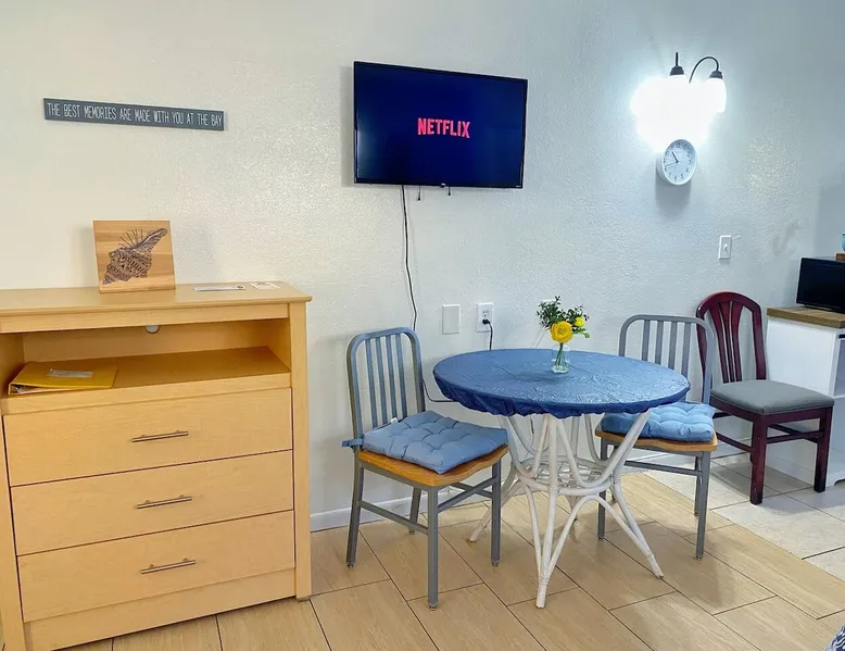 What You Will Love - Heated Pool - 4 minute walk to Beach Access - Please click "Show More" to read full description to see just how great and walkable this location is - Walking distance to many different restaurants - Free Wifi The space Step into an authentic Old Florida getaway at Sunrise Motel, now under new management and just steps from the beach. With its laid-back charm, friendly atmosphere, and ideal location, it’s the kind of place that feels like the set of Cocoon—minus the aliens, of course. Stroll to nearby restaurants, enjoy sunsets at the beach, or just kick back and relax under the Florida sun at our heated pool. This happy guest said it best: "Always enjoy my time at Sunrise Motel—perfect location for restaurants and a quick walk to the beach!" Kitchenette -Microwave, stove, cups, mugs, pots & pans. Features -2 Full Beds -Closet -Smart Tv -Dining table with 2 seats -Dresser Full Bathroom -Tub/Shower combo -Toilet -Vanity/Sink Please Note! - The Pool is open from dawn to dusk -Limited parking! One assigned parking space is available only. -No trailers, boat, RV parking -Absolutely NO SMOKING a $500 charge will occur for violating this policy -No pets The booking guest must sign a renters agreement before checking in. The renter's agreement will ask for your home address, phone number(s), & email address. The agreement will be sent to you automatically upon booking, check your spam folder in your email, if it is not there send me a message and I will send you a direct link to the rental agreement that must be read and signed before check-in information will be sent over. Guests are given one parking spot. Sunrise Motel is not responsible for theft or damage. No visitor vehicles. No unregistered guests allowed. Pineapple Cove Vacation Rentals LLC is not responsible for theft or damage while parked on site. STRICTLY NO SMOKING AND NO PETS ALLOWED! We Are Not Responsible For Any Personal Belongings Left Behind Other things to note The booking guest must sign a renters agreement before checking in. The renter's agreement will ask for your home address, phone number(s), & email address. The agreement will be sent to you automatically upon booking, check your spam folder in your email, if it is not there send me a message and I will send you a direct link to the rental agreement that must be read and signed before check-in information will be sent over. Guests are given one parking spot. Sunrise Motel is not responsible for theft or damage. No visitor vehicles. No unregistered guests allowed. Pineapple Cove Vacation Rentals LLC is not responsible for theft or damage while parked on site. STRICTLY NO SMOKING AND NO PETS ALLOWED! We Are Not Responsible For Any Personal Belongings Left Behind