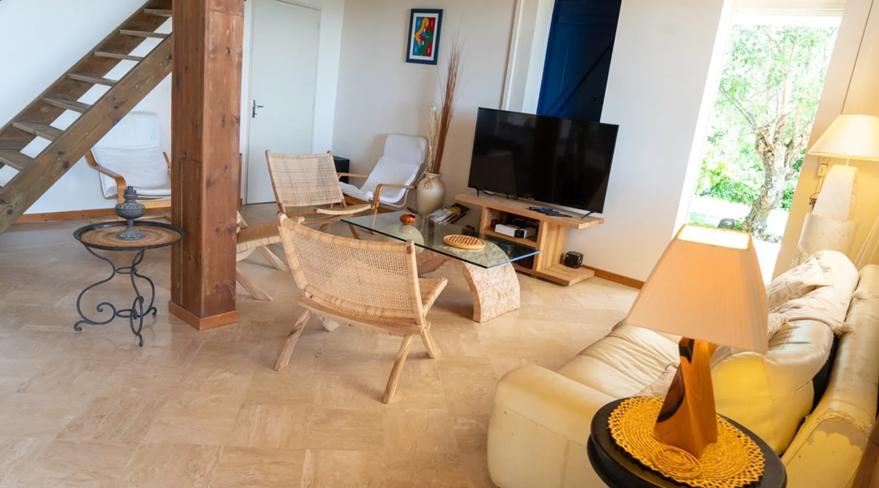 Located 800 meters from the beautiful beach of Anse Michel and its sports activities Kayak, fly board, surf. A 5-minute walk from the dock where boats take you to the Islet Chevalier or to the white bottoms. Several restaurants nearby. 5 minutes from the very lively cities of Marin and Sainte-Anne. The space Panoramic views of Cap Chevalier and its islands Guest access Entire Villa