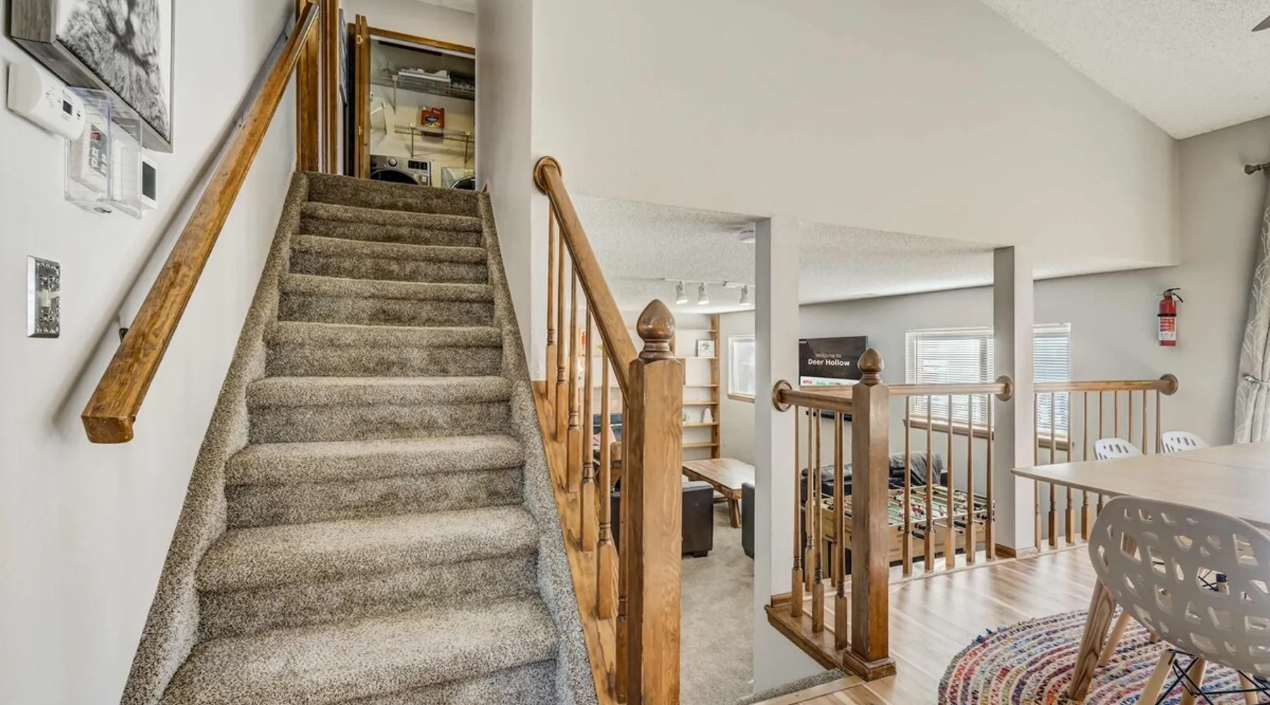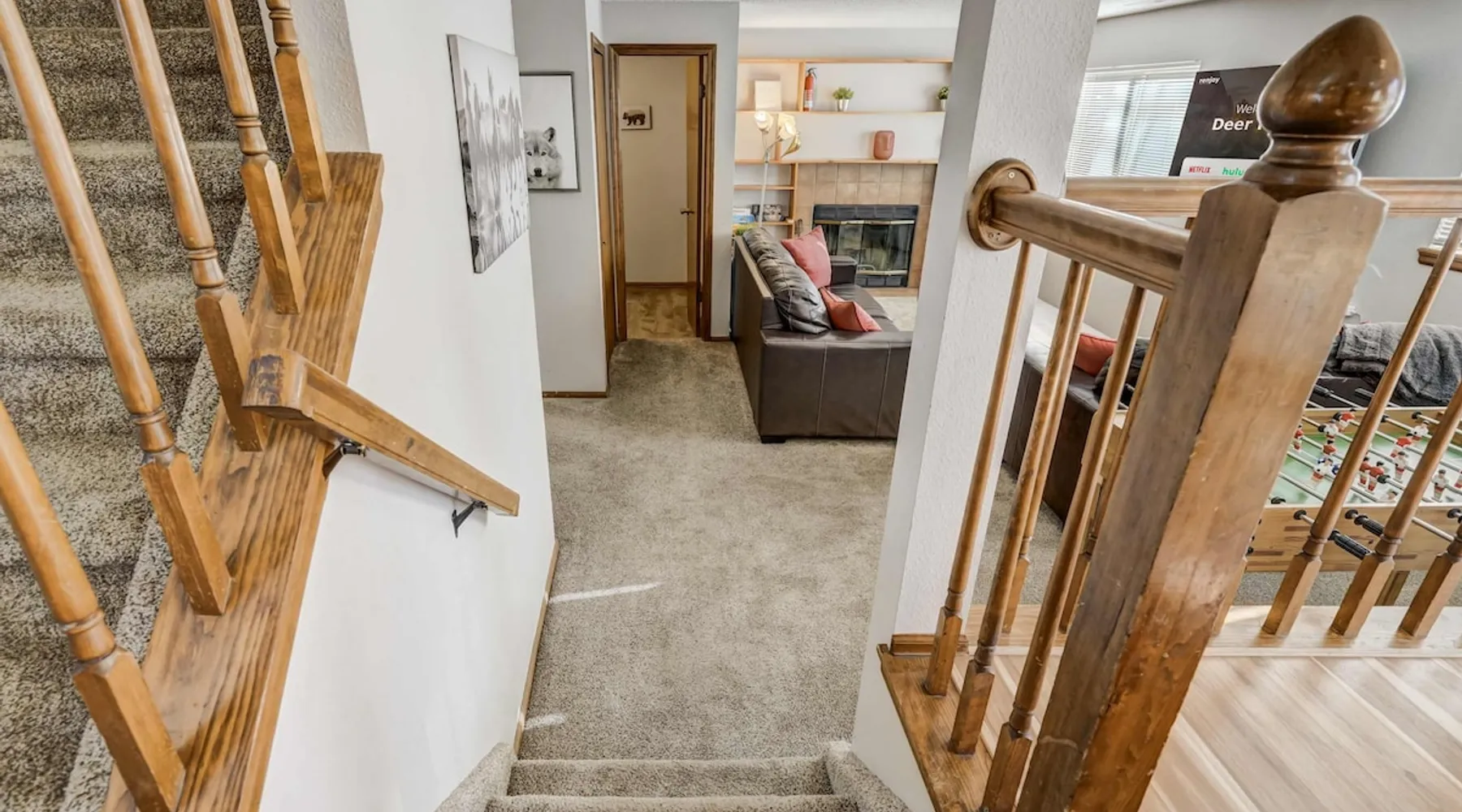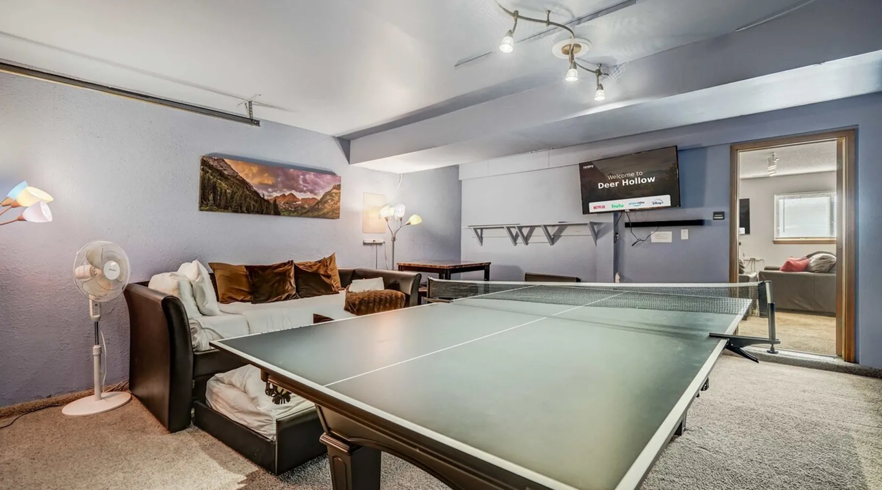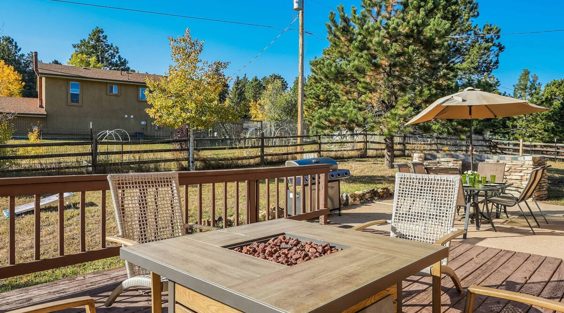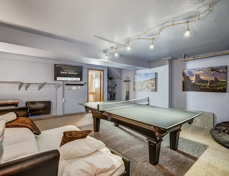Welcome to Deer Hollow, your serene retreat in Woodland Park, where relaxation meets adventure! 🔥 Spacious deck with a gas fire pit, BBQ, and mountain air vibes 🛁 Oversized hot tub under Colorado's starry sky 🎱 Rec room with pool, ping-pong, TV, and mini-fridge for endless fun 🛋️ Cozy living areas with a foosball table for unwinding 🌳 Quiet cul-de-sac surrounded by trees and local wildlife Reserve your stay for nature-filled relaxation and lasting memories! The space Step into Deer Hollow! Your ultimate retreat where relaxation and adventure meet. This spacious and cozy home offers comfort and modern amenities for families and friends, ensuring a memorable stay surrounded by the natural beauty of Woodland Park, Colorado. 🏡 Situated in a peaceful cul-de-sac with a variety of beautiful trees, this home offers a serene setting where you can enjoy nature at its best. Deer are frequent visitors to the property and neighborhood, adding a charming touch of wildlife to your stay. 📚 The Living room is tastefully decorated and ideal for gathering, reading, or relaxing. There’s also a dedicated workspace in the corner for those who may need to work during their stay, offering a quiet and comfortable spot. ✨The Family room serves as a welcoming, cozy living area with comfortable seating, a Smart TV, soundbar, a foosball table, and a pull-out sofa with a queen sleeper (sleeps 2). It’s the perfect spot for gathering and enjoying some fun after a day of exploring. 🎱 Fun-Filled Recreation Room Let the fun begin in our fully equipped recreation room! Challenge your friends and family to a game of pool, ping-pong (the ping-pong table sits atop the pool table), or foosball. This converted garage space is perfect for hanging out, complete with a comfy trundle daybed with a TV, soundbar, and mini-fridge. —a favorite spot for kids and teens to unwind and have fun. It's also a great space for adults who are young at heart, offering plenty of fun and relaxation. 🛏️ Comfortable Bedrooms The property comfortably sleeps up to 8 guests: Bedroom 1: King-size bed with an ensuite bathroom and a Smart TV. Bedroom 2: King-size bed for added comfort. Bedroom 3: Two twin beds, perfect for kids or friends. Family Room: Queen sleeper sofa (2-person sleeping area). Recreation Room: Trundle bed for extra sleeping options. All beds are adorned with high-quality linens and plush pillows, ensuring maximum comfort for all guests. 🛁 Modern Bathrooms: Three bathrooms are available for your use, equipped with fresh towels, essentials, and modern fixtures. Two of the bathrooms have showers, and one is a half bath. Please note that shower temperatures may require a gentle touch to find your perfect setting. 🍽️ Fully-Equipped Kitchen Prepare meals in the fully stocked kitchen, complete with stainless steel appliances, a gas stovetop, dishwasher, microwave, and all the cookware and utensils you need. Popular spices, coffee, and filters are also provided, making it easy to cook up a feast for your group. 🔥 Outdoor Oasis Step out onto the deck for an evening under the stars. With a gas fire pit, outdoor dining area, and a spacious yard, it's perfect for BBQs, cornhole, or simply enjoying the fresh mountain air. Relax in the oversized outdoor hot tub—ideal for soaking under the Colorado sky after a day of adventure. Please note, the indoor fireplace is not available for guest use. 🚗 Convenient Location While providing a serene escape, Deer Hollow is just minutes away from local restaurants, grocery stores, and coffee shops in Woodland Park. It's the perfect base for exploring nearby attractions like Colorado Springs, Garden of the Gods, Pikes Peak, and various hiking and rock climbing spots. 💼 Professional Host Service We pride ourselves on our prompt and professional service. Our team is dedicated to ensuring your stay is comfortable and enjoyable, responding quickly to any questions or needs you may have. ⭐ Guest Reviews We take great pride in providing an exceptional experience for our guests. Here are some reviews from guests who have stayed at Deer Hollow across all our booking channels: ⭐ Alysia (June 2024): "Clean, peaceful, private stay with a view! Responsive host, clear instructions, lovely place to stay. Highly recommend!" ⭐ Elaine (December 2023): "We loved the house! It met all our family’s needs and was very cozy. The game room was the highlight for our older kids, and we would definitely recommend." ⭐ Yesenia (May 2024): "Beautiful location, easy self-check-in, immediate response to all questions. A very fun home to stay in!" ⭐ Jasmine (January 2023): "Our stay was perfect! We loved the pong/pool table and the hot tub was very relaxing! Everything was clean, and there were plenty of towels and linens. We felt at home." ⭐ Tara (July 2023): "The house was great! Loved the location! The pictures and description matched the house. We had a great week!" ⭐ Sis (August 2023): "The host was amazing and responded almost instantly. Nice, quiet neighborhood. Beds were very comfortable, and I loved all the sheets on them. The location is perfect, close to all surrounding cities so you don’t have to be in the middle of the hassle of traffic in a big city! I highly recommend this house for a Colorado stay!" ⭐ Eric (October 2022): "Great visit for our family as we visited nearby attractions for a long weekend. The house was clean and comfortable. Our kids especially loved the game room with billiards and ping pong. Plenty of room for our group of six. The hot tub was nice as well with the cooler weather." Book now to create lasting memories at Deer Hollow! Guest access 🔑 Throughout your stay, you will enjoy unrestricted access to the entire premises, encompassing all the amenities and facilities it boasts. This encompasses bedrooms, communal living areas, the kitchen, the backyard, and every feature that defines this residence. Feel free to utilize all availab
