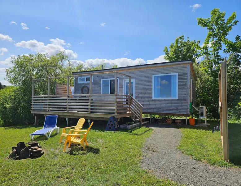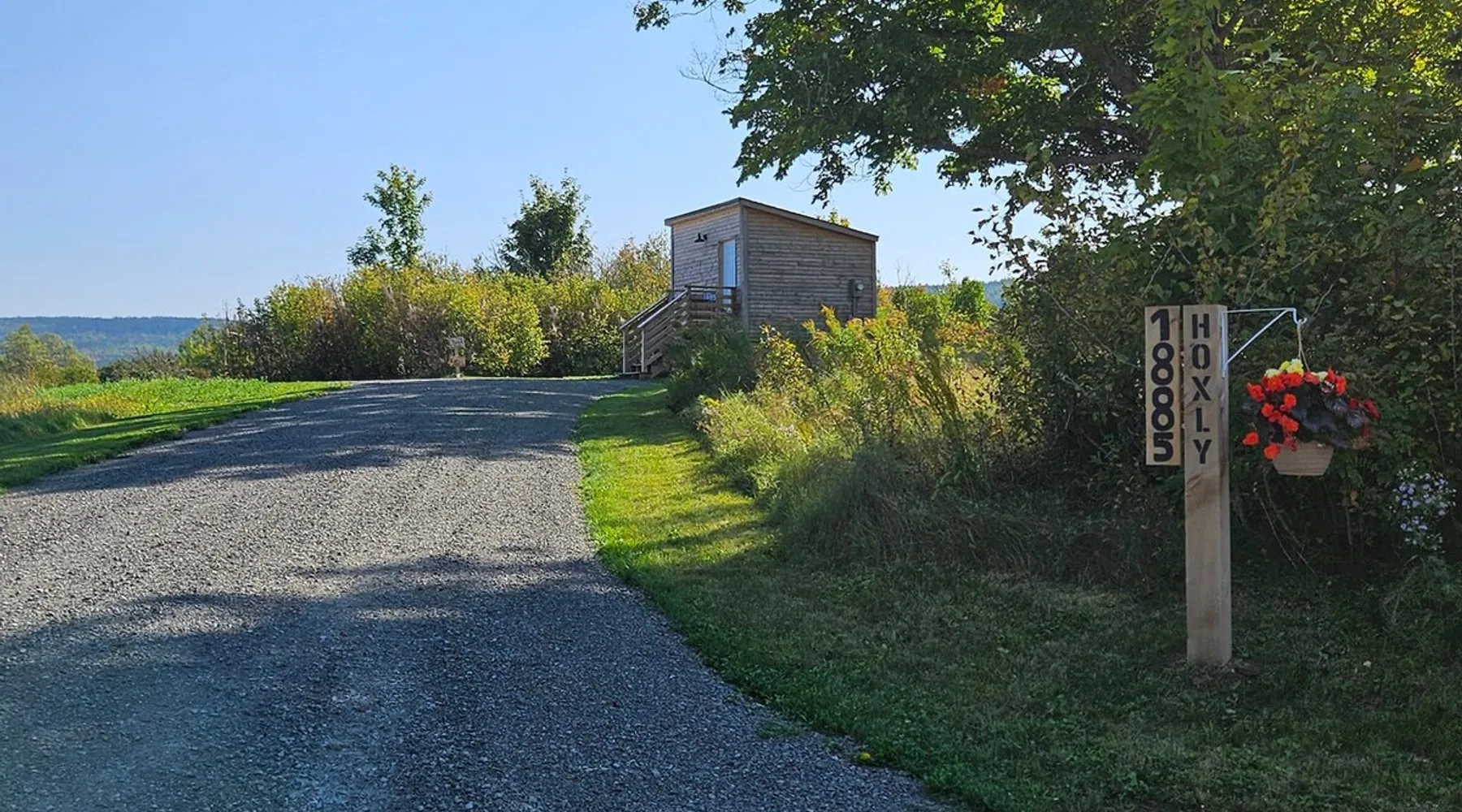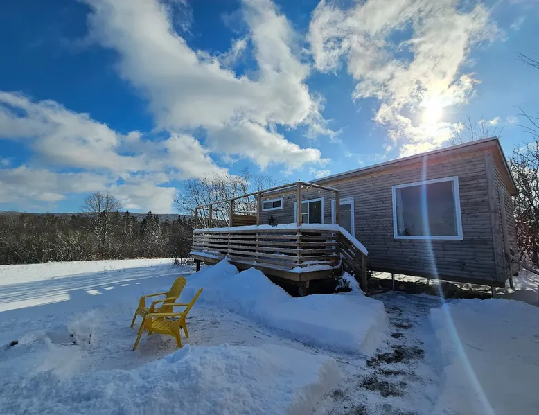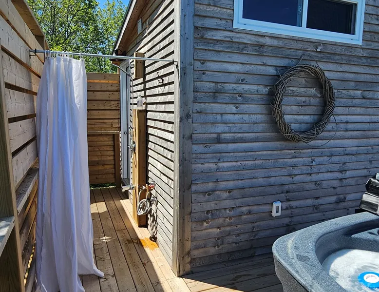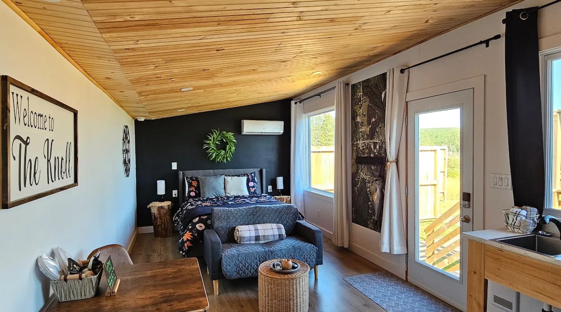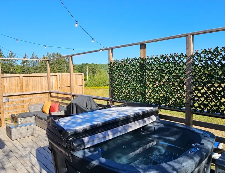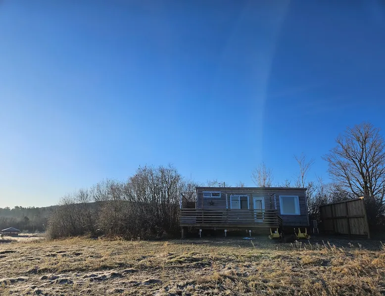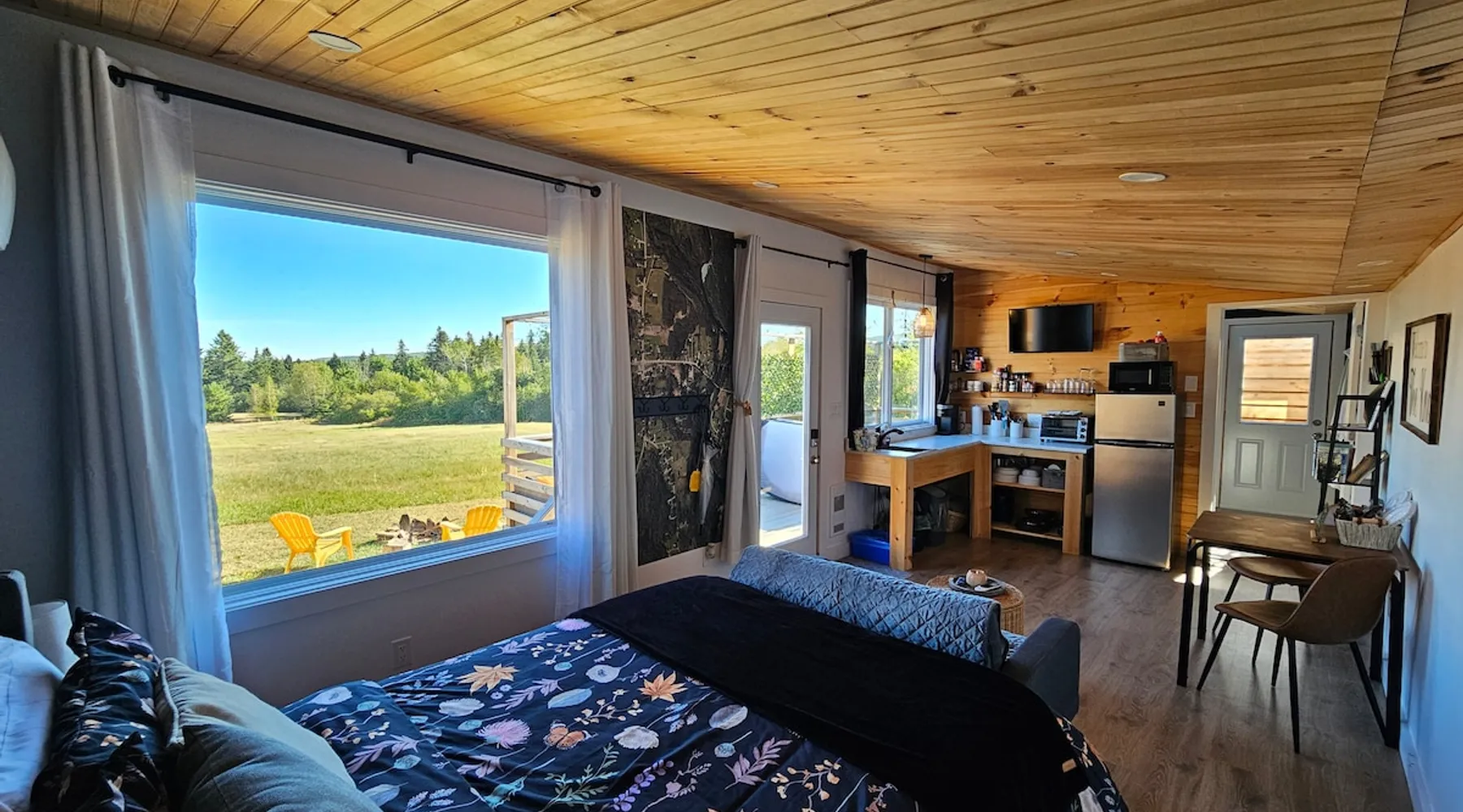 Welcome to The Knoll Bunkie at Hoxly Hideaway! It is one of two shed-style tiny homes with its own hot tub, located in the heart of Elgin, NB. Open year-round, enjoy peace and privacy only steps from the Elgin Eco Park, hiking & cycling trails, ATV and snowmobiling trails, the Pollett River, and much much more. Relax and unwind in this cozy & quaint space, whether you've spent the day on the trails or are looking for a unique getaway. The space The property consists of two 10x30 unique tiny homes situated on 5 acres of land right off the main road in the heart of Elgin. This unit has beautiful field & tree views with lots of wildlife sightings, small & large, and is the more favourable unit for pets with the expansive field out front. Outside on the deck just steps from the door, there is a hot tub to unwind in, a seating area, BBQ, and three seasons outdoor shower (not operating in the winter). Completing the outdoor space is a firepit area (wood provided). Inside this studio style lay-out, you will find a well equipped kitchenette complete with an apartment sized fridge (with freezer), double cooktop burner, microwave, toaster oven, air fryer, kettle, and Keurig (complimentary coffee & tea pods, tea bags, sugar, hot chocolate, and milk & cream are provided). Everything else needed for cooking is right at your fingertips! There is a small dining table for two, complete with a cozy seating area with love seat. This is a great space for board games, cards, a movie night, or to put your feet up and relax. Have a great night's sleep in the luxurious and cozy bed, with beautiful views from the big picture window overlooking the field. Enjoy the three piece bath during your stay with all the amenities provided as well as heated porcelain floors for comfort. You can also access the outside shower & hot tub through the bathroom. If you are not a fan of full sun, this bunkie is East facing and offers more shade than "The Grove bunkie". Guest access Guests have full access to the tiny home. We ask that you stay to the section of the field directly in front of the bunkie if out with your dog so as not to disturb guests in the other bunkie. (In "Exterior" photos, there is an aerial picture showing you the boundaries). Other things to note Please let us know if your pet will be with you. The property is on the main road in Elgin. Cleaning fee: In order to keep our rate reasonable we do not charge a cleaning fee but do ask for general tidying. Please no cooking of shellfish or fish in the bunkie as a staff member is very allergic. Thank you! Fires: From April to November there can be fire bans. Please check the NB Forest Fire Watch (GNB website) for daily restrictions. Their website updates daily at 2pm. Fireworks: Not permitted. Exploring: Please be cautious of your GPS if coming to or from Fundy National Park/Alma. It may take you on back roads that are only meant for 4x4 vehicles and areas where there is no cell service. Pets: Please clean up after your furry friend, it would be much appreciated! The property is an old family homestead so there may be small shards of glass around. We are doing our best to remove what we can. Extras: If you would like to celebrate/set up something special, please send us a message so we can help accommodate your requests!