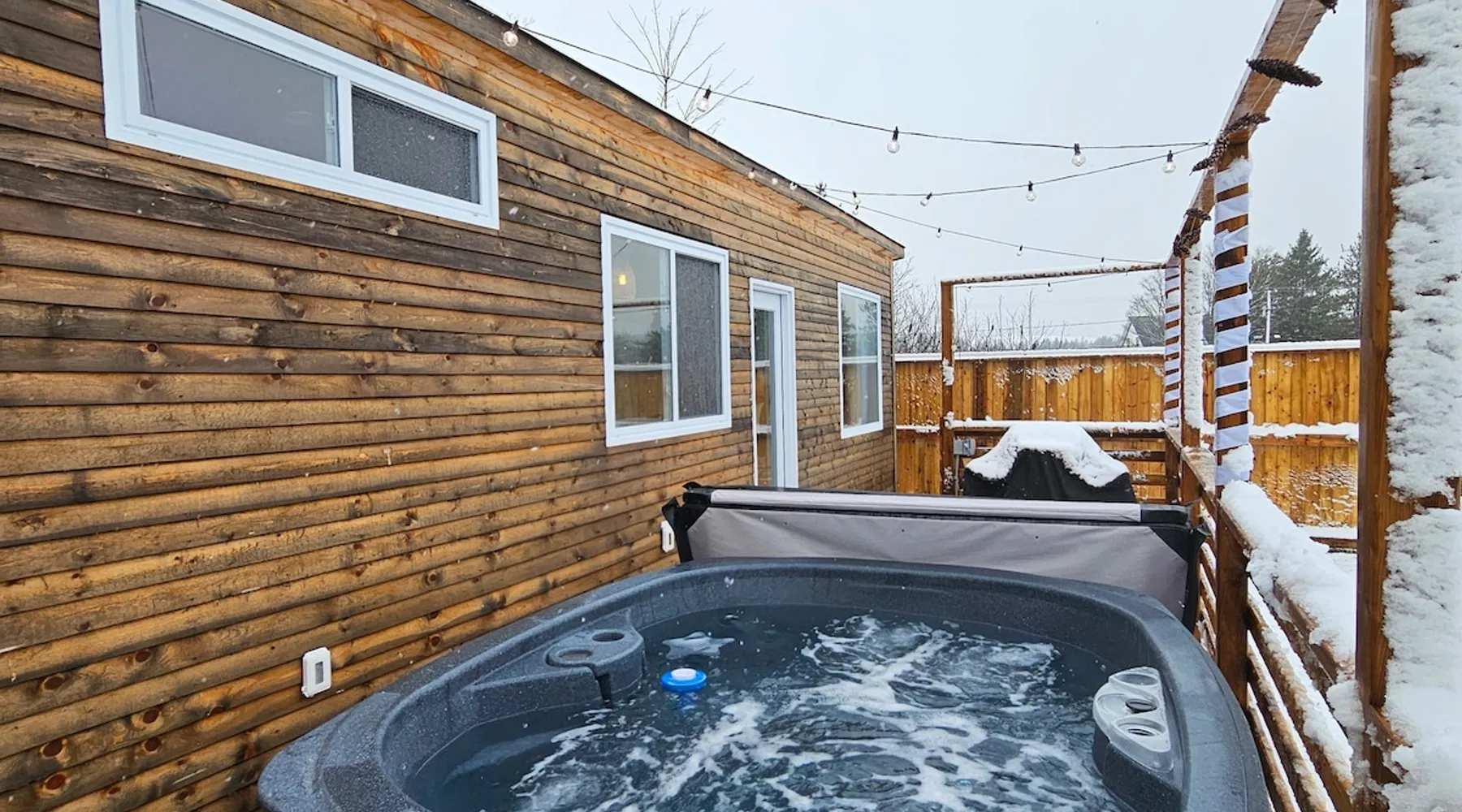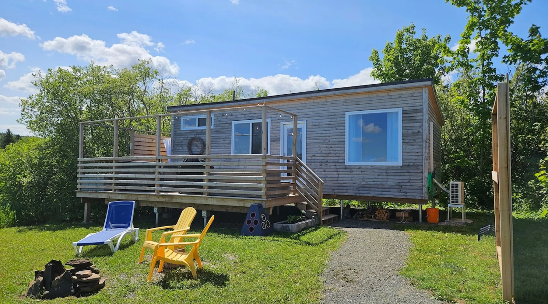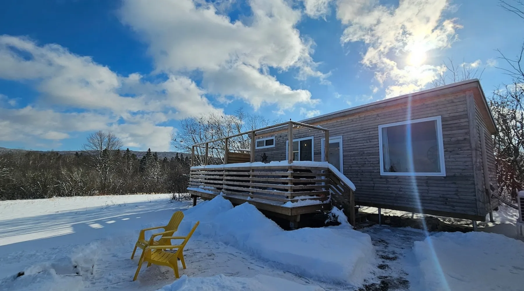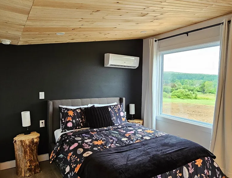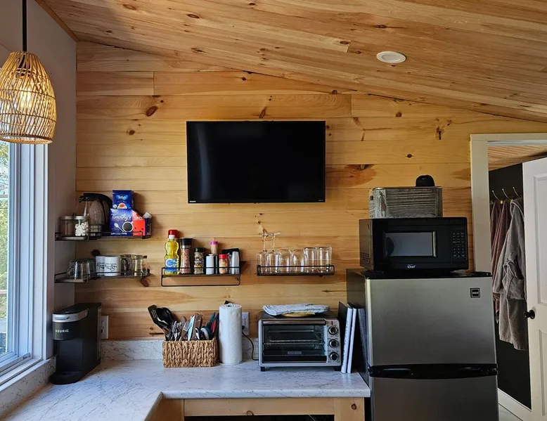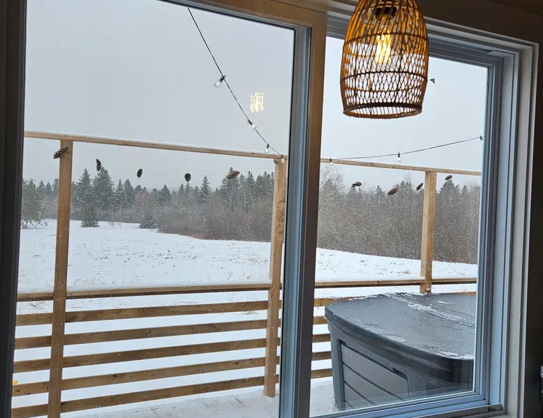 Welcome to The Knoll Bunkie at Hoxly Hideaway! It is one of two shed-style tiny homes with its own hot tub, located in the heart of Elgin, NB. Open year-round, enjoy peace and privacy only steps from the Elgin Eco Park, hiking & cycling trails, ATV and snowmobiling trails, the Pollett River, and much much more. Relax and unwind in this cozy & quaint space, whether you've spent the day on the trails or are looking for a unique getaway. The space The property consists of two 10x30 unique tiny homes situated on 5 acres of land right off the main road in the heart of Elgin. This unit has beautiful field & tree views with lots of wildlife sightings, small & large, and is the more favourable unit for pets with the expansive field out front. Outside on the deck just steps from the door, there is a hot tub to unwind in, a seating area, BBQ, and three seasons outdoor shower (not operating in the winter). Completing the outdoor space is a firepit area (wood provided). Inside this studio style lay-out, you will find a well equipped kitchenette complete with an apartment sized fridge (with freezer), double cooktop burner, microwave, toaster oven, air fryer, kettle, and Keurig (complimentary coffee & tea pods, tea bags, sugar, hot chocolate, and milk & cream are provided). Everything else needed for cooking is right at your fingertips! There is a small dining table for two, complete with a cozy seating area with love seat. This is a great space for board games, cards, a movie night, or to put your feet up and relax. Have a great night's sleep in the luxurious and cozy bed, with beautiful views from the big picture window overlooking the field. Enjoy the three piece bath during your stay with all the amenities provided as well as heated porcelain floors for comfort. You can also access the outside shower & hot tub through the bathroom. If you are not a fan of full sun, this bunkie is East facing and offers more shade than "The Grove bunkie". Guest access Guests have full access to the tiny home. We ask that you stay to the section of the field directly in front of the bunkie if out with your dog so as not to disturb guests in the other bunkie. (In "Exterior" photos, there is an aerial picture showing you the boundaries). Other things to note Please let us know if your pet will be with you. The property is on the main road in Elgin. Cleaning fee: In order to keep our rate reasonable we do not charge a cleaning fee but do ask for general tidying. Please no cooking of shellfish or fish in the bunkie as a staff member is very allergic. Thank you! Fires: From April to November there can be fire bans. Please check the NB Forest Fire Watch (GNB website) for daily restrictions. Their website updates daily at 2pm. Fireworks: Not permitted. Exploring: Please be cautious of your GPS if coming to or from Fundy National Park/Alma. It may take you on back roads that are only meant for 4x4 vehicles and areas where there is no cell service. Pets: Please clean up after your furry friend, it would be much appreciated! The property is an old family homestead so there may be small shards of glass around. We are doing our best to remove what we can. Extras: If you would like to celebrate/set up something special, please send us a message so we can help accommodate your requests!