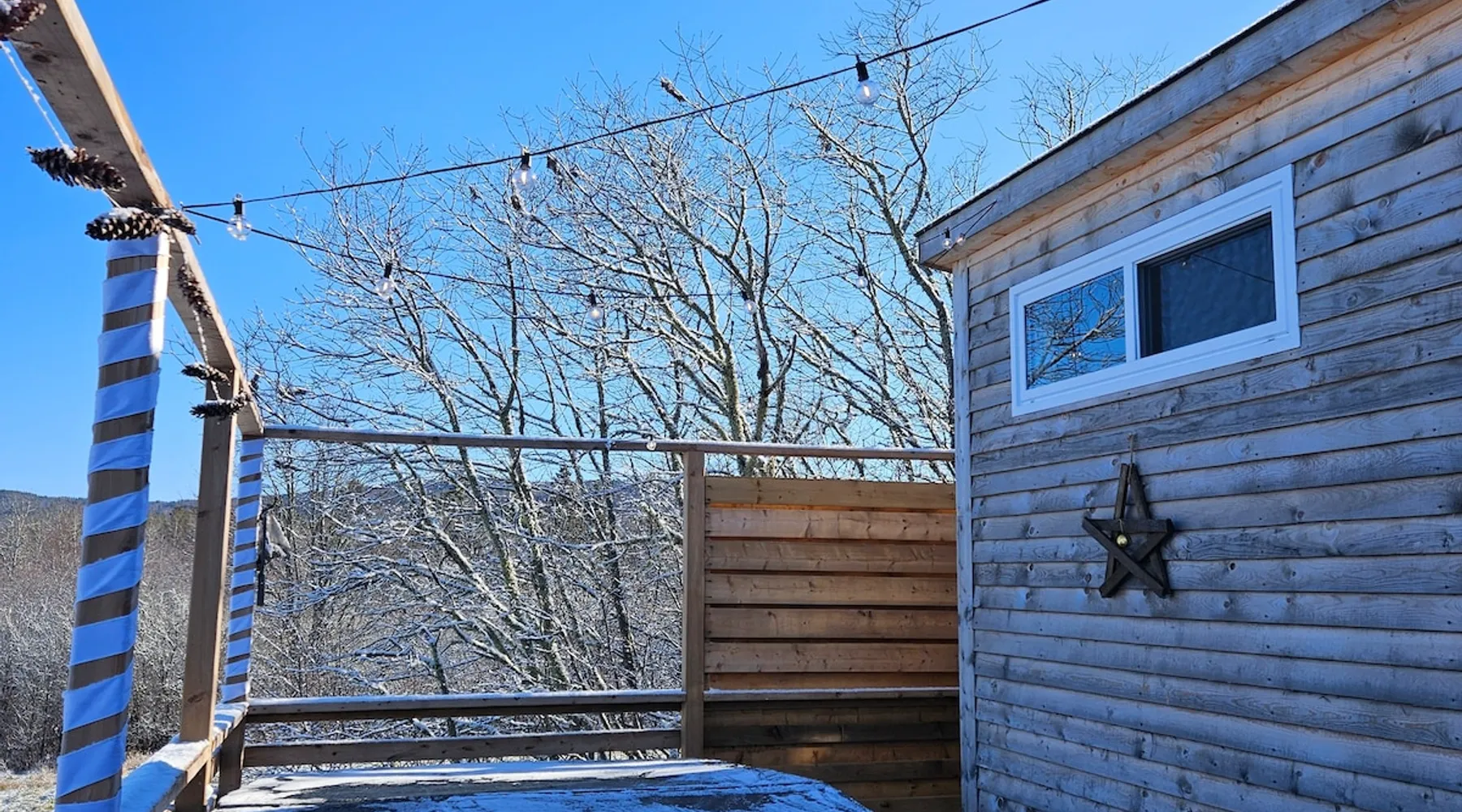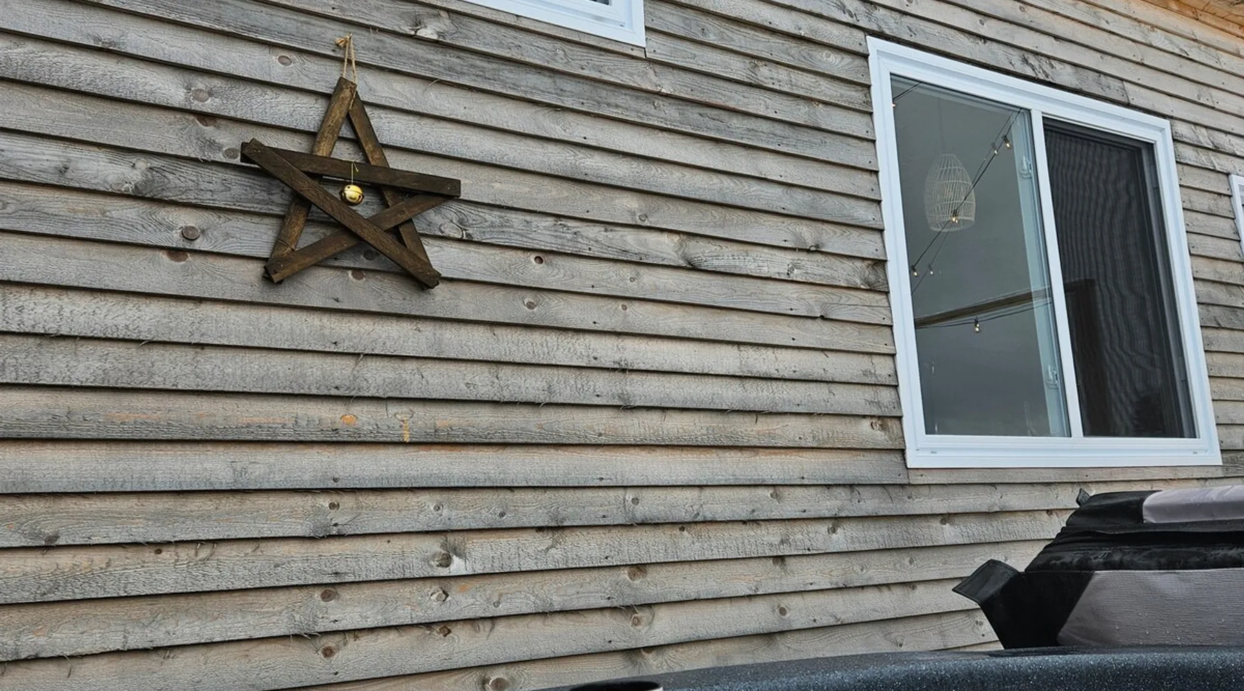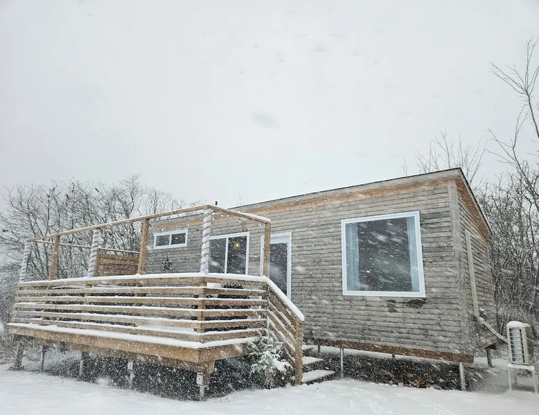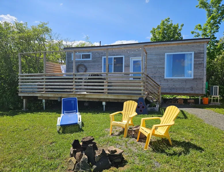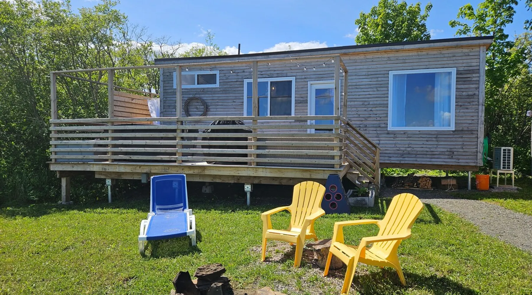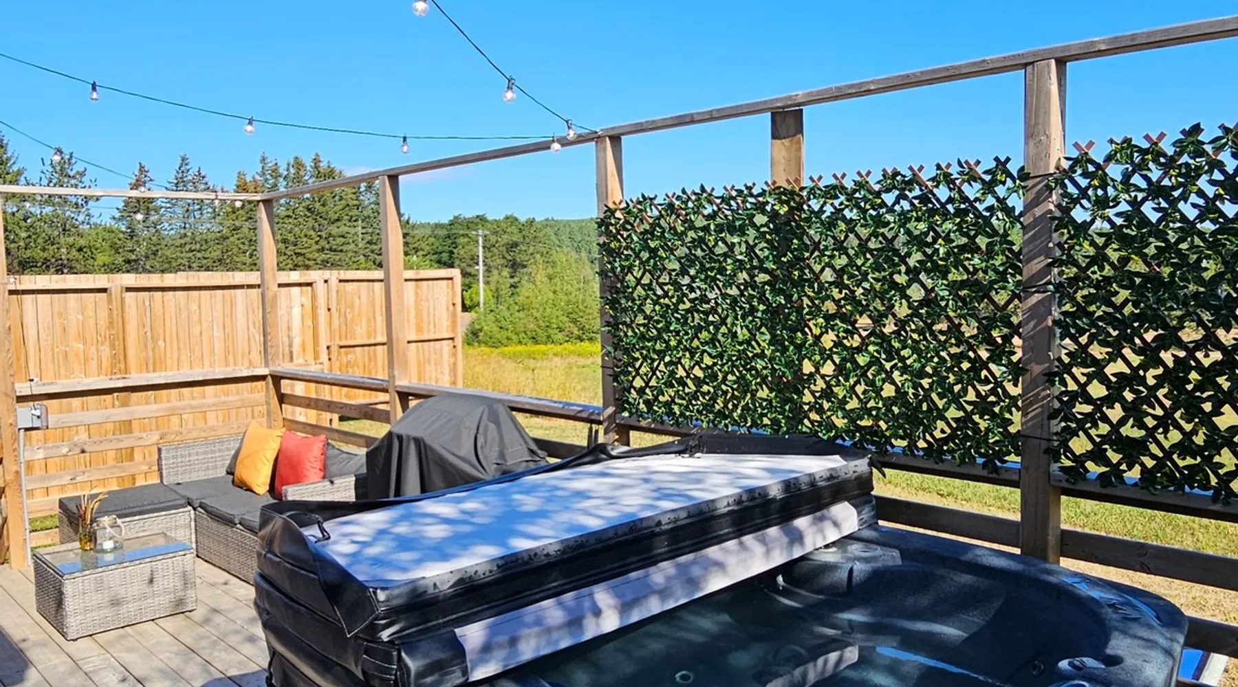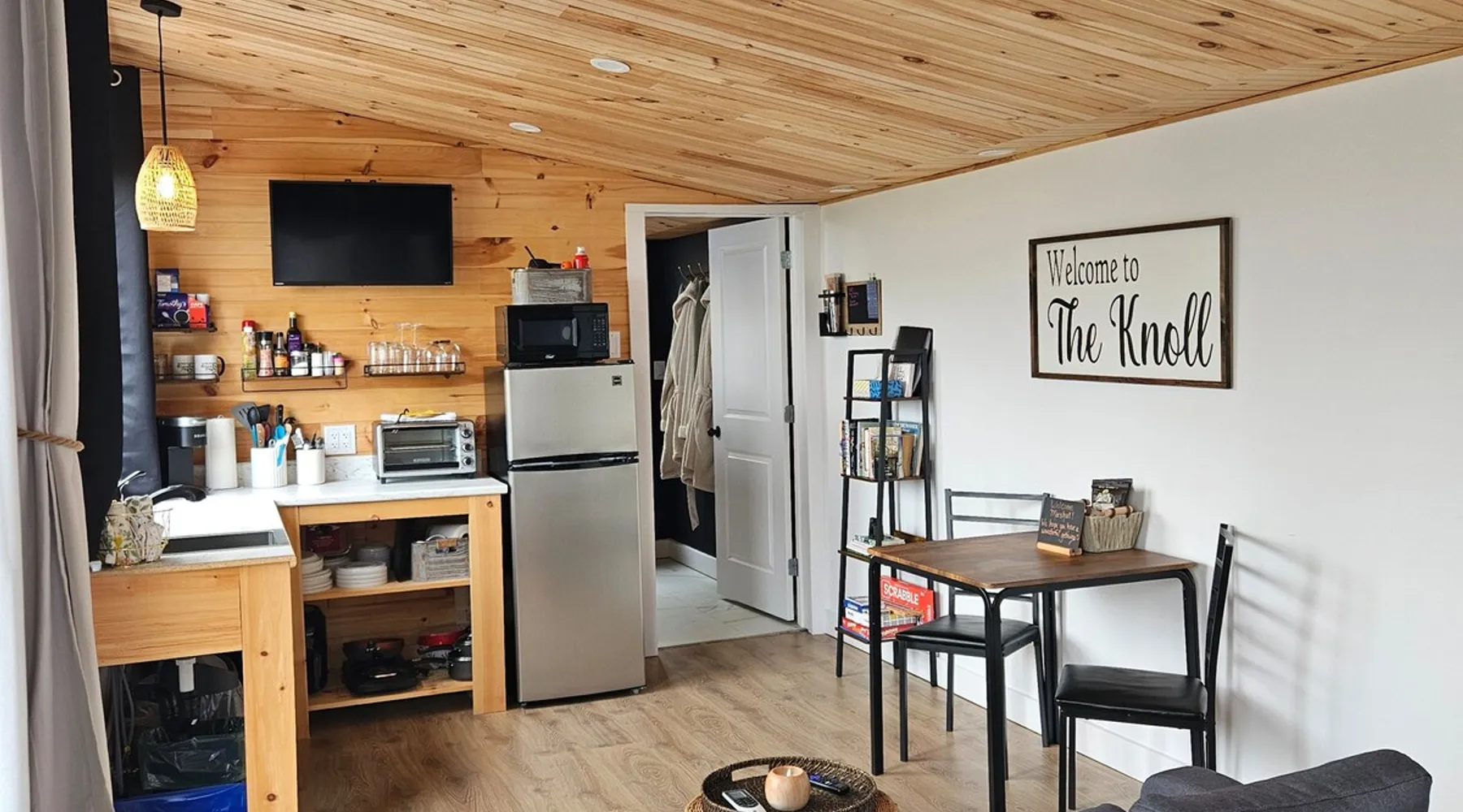 Welcome to The Knoll Bunkie at Hoxly Hideaway! It is one of two shed-style tiny homes with its own hot tub, located in the heart of Elgin, NB. Open year-round, enjoy peace and privacy only steps from the Elgin Eco Park, hiking & cycling trails, ATV and snowmobiling trails, the Pollett River, and much much more. Relax and unwind in this cozy & quaint space, whether you've spent the day on the trails or are looking for a unique getaway. The space The property consists of two 10x30 unique tiny homes situated on 5 acres of land right off the main road in the heart of Elgin. This unit has beautiful field & tree views with lots of wildlife sightings, small & large, and is the more favourable unit for pets with the expansive field out front. Outside on the deck just steps from the door, there is a hot tub to unwind in, a seating area, BBQ, and three seasons outdoor shower (not operating in the winter). Completing the outdoor space is a firepit area (wood provided). Inside this studio style lay-out, you will find a well equipped kitchenette complete with an apartment sized fridge (with freezer), double cooktop burner, microwave, toaster oven, air fryer, kettle, and Keurig (complimentary coffee & tea pods, tea bags, sugar, hot chocolate, and milk & cream are provided). Everything else needed for cooking is right at your fingertips! There is a small dining table for two, complete with a cozy seating area with love seat. This is a great space for board games, cards, a movie night, or to put your feet up and relax. Have a great night's sleep in the luxurious and cozy bed, with beautiful views from the big picture window overlooking the field. Enjoy the three piece bath during your stay with all the amenities provided as well as heated porcelain floors for comfort. You can also access the outside shower & hot tub through the bathroom. If you are not a fan of full sun, this bunkie is East facing and offers more shade than "The Grove bunkie". Guest access Guests have full access to the tiny home. We ask that you stay to the section of the field directly in front of the bunkie if out with your dog so as not to disturb guests in the other bunkie. (In "Exterior" photos, there is an aerial picture showing you the boundaries). Other things to note Please let us know if your pet will be with you. The property is on the main road in Elgin. Cleaning fee: In order to keep our rate reasonable we do not charge a cleaning fee but do ask for general tidying. Please no cooking of shellfish or fish in the bunkie as a staff member is very allergic. Thank you! Fires: From April to November there can be fire bans. Please check the NB Forest Fire Watch (GNB website) for daily restrictions. Their website updates daily at 2pm. Fireworks: Not permitted. Exploring: Please be cautious of your GPS if coming to or from Fundy National Park/Alma. It may take you on back roads that are only meant for 4x4 vehicles and areas where there is no cell service. Pets: Please clean up after your furry friend, it would be much appreciated! The property is an old family homestead so there may be small shards of glass around. We are doing our best to remove what we can. Extras: If you would like to celebrate/set up something special, please send us a message so we can help accommodate your requests!