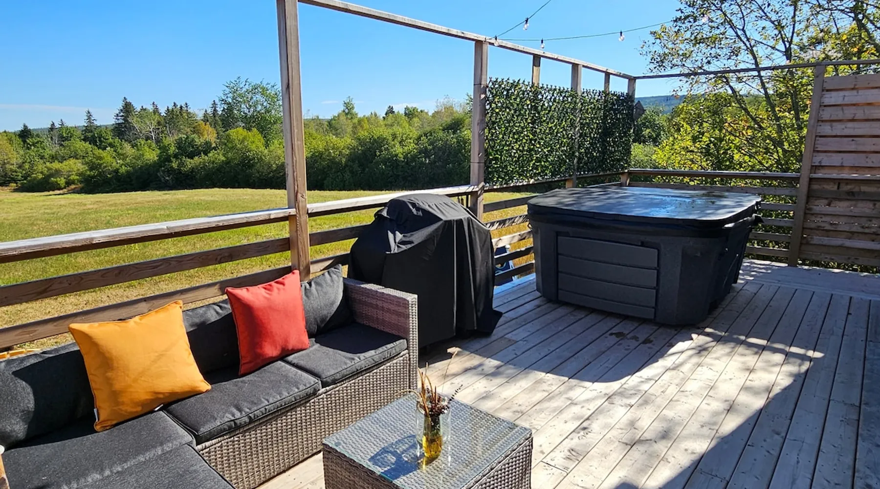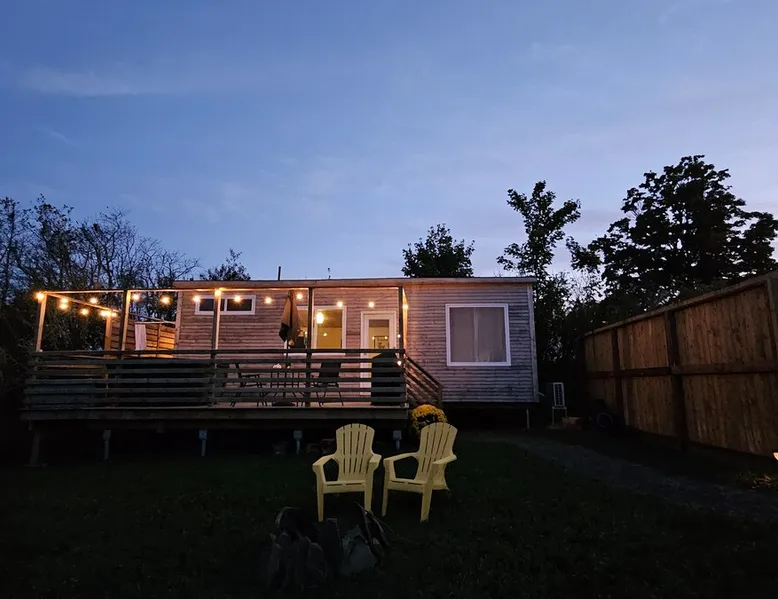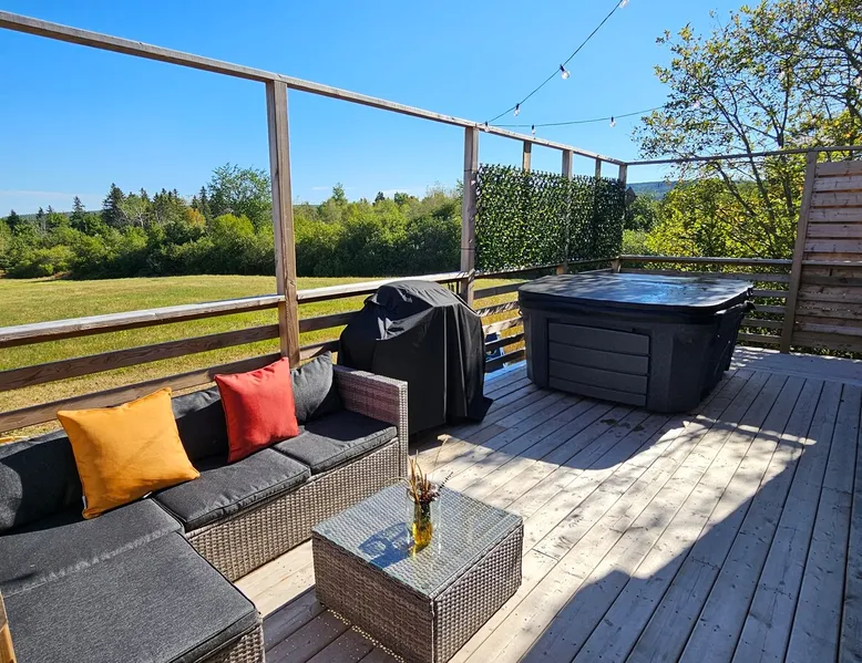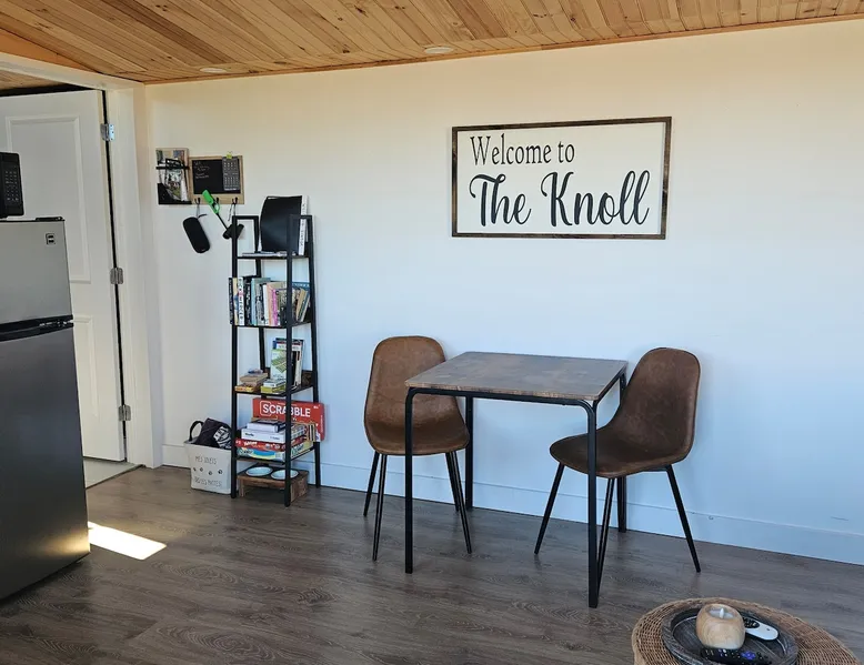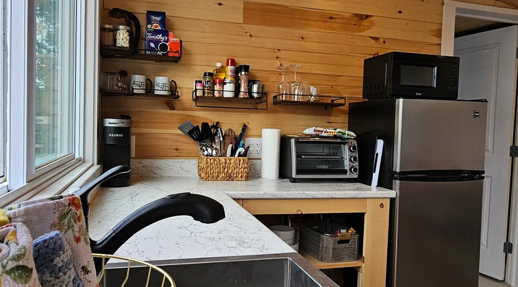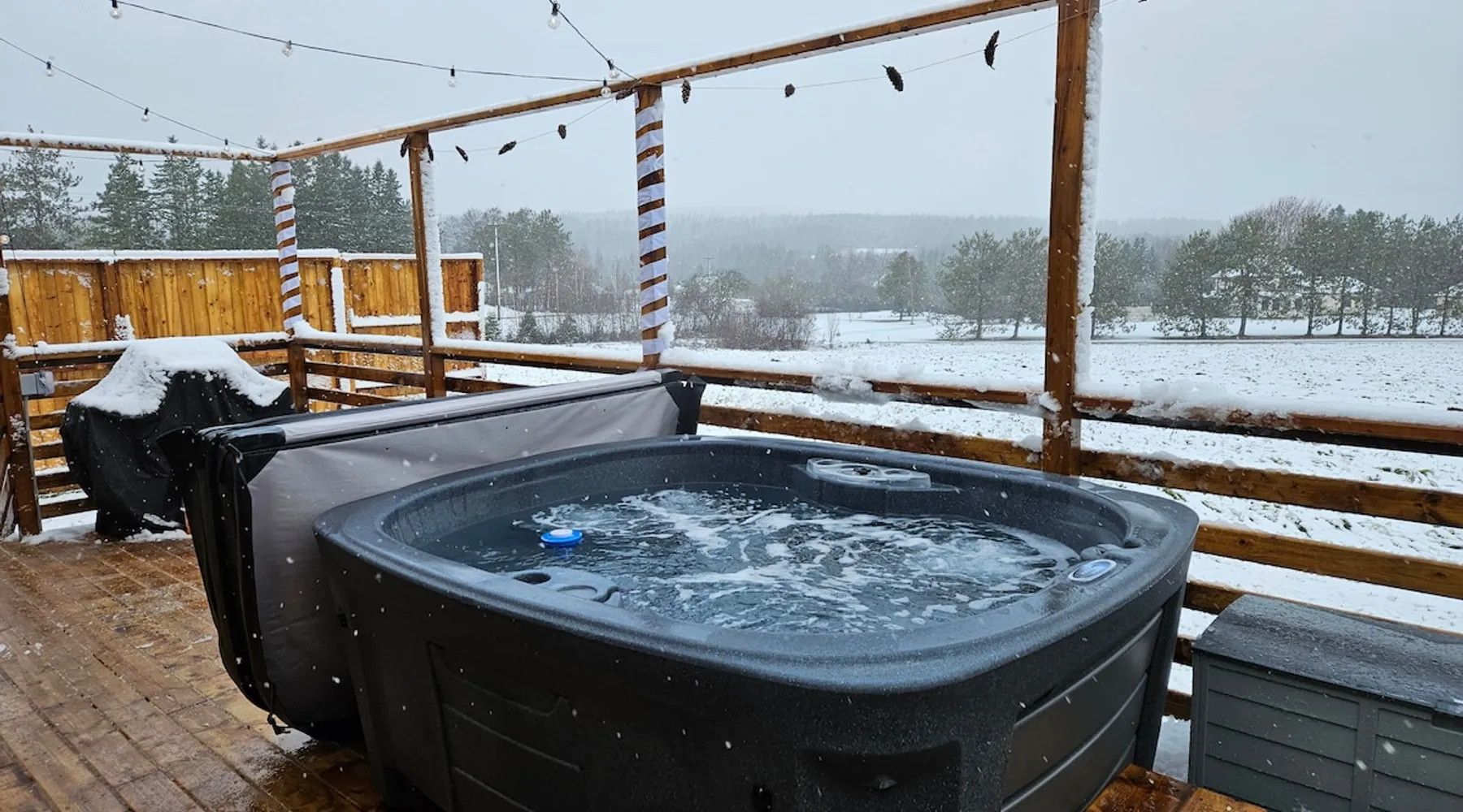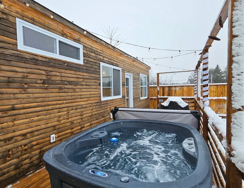 Welcome to The Knoll Bunkie at Hoxly Hideaway! It is one of two shed-style tiny homes with its own hot tub, located in the heart of Elgin, NB. Open year-round, enjoy peace and privacy only steps from the Elgin Eco Park, hiking & cycling trails, ATV and snowmobiling trails, the Pollett River, and much much more. Relax and unwind in this cozy & quaint space, whether you've spent the day on the trails or are looking for a unique getaway. The space The property consists of two 10x30 unique tiny homes situated on 5 acres of land right off the main road in the heart of Elgin. This unit has beautiful field & tree views with lots of wildlife sightings, small & large, and is the more favourable unit for pets with the expansive field out front. Outside on the deck just steps from the door, there is a hot tub to unwind in, a seating area, BBQ, and three seasons outdoor shower (not operating in the winter). Completing the outdoor space is a firepit area (wood provided). Inside this studio style lay-out, you will find a well equipped kitchenette complete with an apartment sized fridge (with freezer), double cooktop burner, microwave, toaster oven, air fryer, kettle, and Keurig (complimentary coffee & tea pods, tea bags, sugar, hot chocolate, and milk & cream are provided). Everything else needed for cooking is right at your fingertips! There is a small dining table for two, complete with a cozy seating area with love seat. This is a great space for board games, cards, a movie night, or to put your feet up and relax. Have a great night's sleep in the luxurious and cozy bed, with beautiful views from the big picture window overlooking the field. Enjoy the three piece bath during your stay with all the amenities provided as well as heated porcelain floors for comfort. You can also access the outside shower & hot tub through the bathroom. If you are not a fan of full sun, this bunkie is East facing and offers more shade than "The Grove bunkie". Guest access Guests have full access to the tiny home. We ask that you stay to the section of the field directly in front of the bunkie if out with your dog so as not to disturb guests in the other bunkie. (In "Exterior" photos, there is an aerial picture showing you the boundaries). Other things to note Please let us know if your pet will be with you. The property is on the main road in Elgin. Cleaning fee: In order to keep our rate reasonable we do not charge a cleaning fee but do ask for general tidying. Please no cooking of shellfish or fish in the bunkie as a staff member is very allergic. Thank you! Fires: From April to November there can be fire bans. Please check the NB Forest Fire Watch (GNB website) for daily restrictions. Their website updates daily at 2pm. Fireworks: Not permitted. Exploring: Please be cautious of your GPS if coming to or from Fundy National Park/Alma. It may take you on back roads that are only meant for 4x4 vehicles and areas where there is no cell service. Pets: Please clean up after your furry friend, it would be much appreciated! The property is an old family homestead so there may be small shards of glass around. We are doing our best to remove what we can. Extras: If you would like to celebrate/set up something special, please send us a message so we can help accommodate your requests!