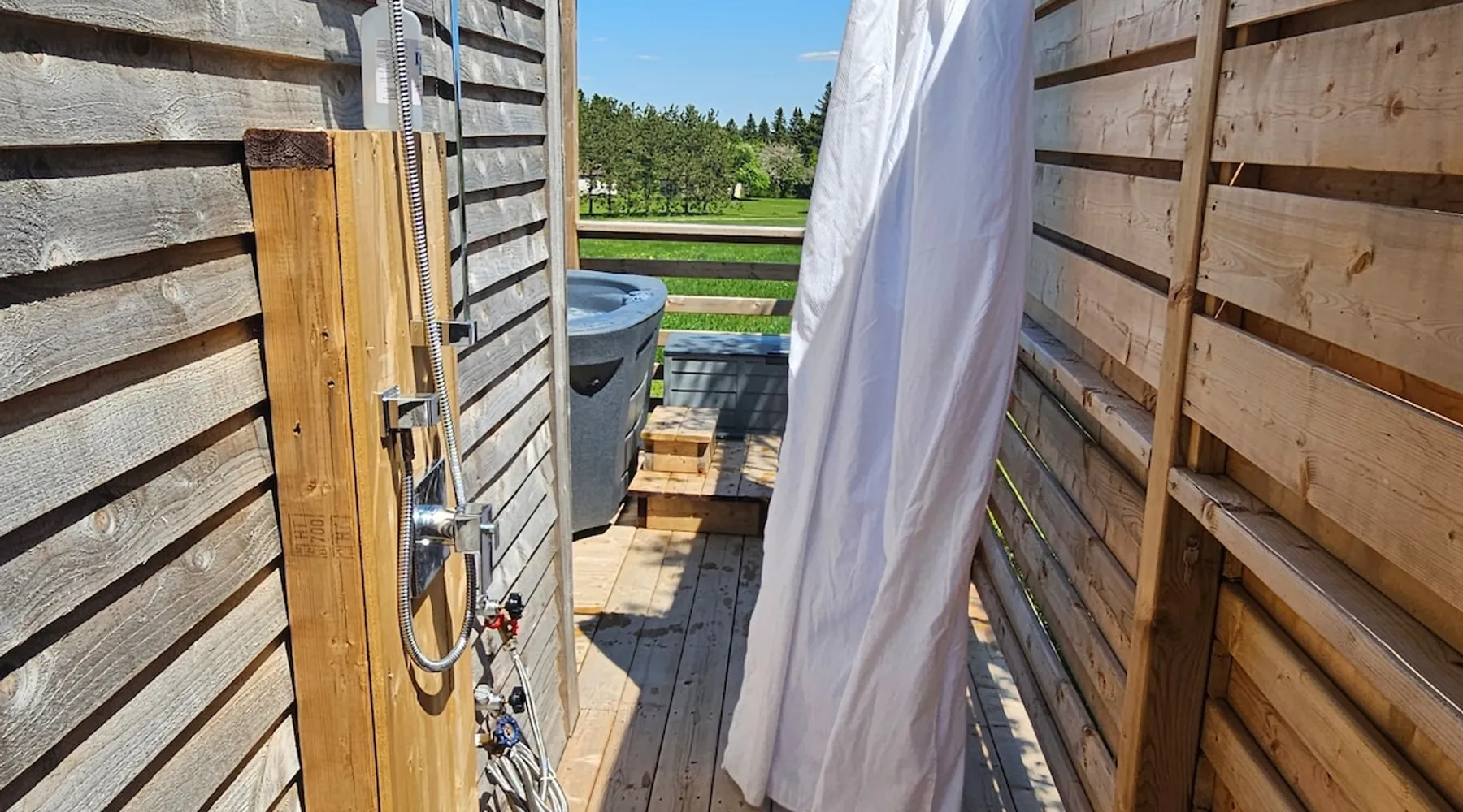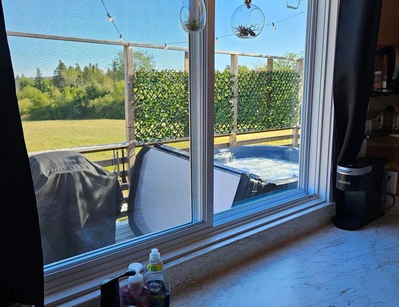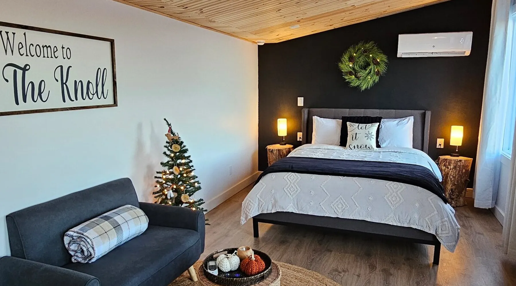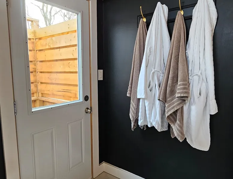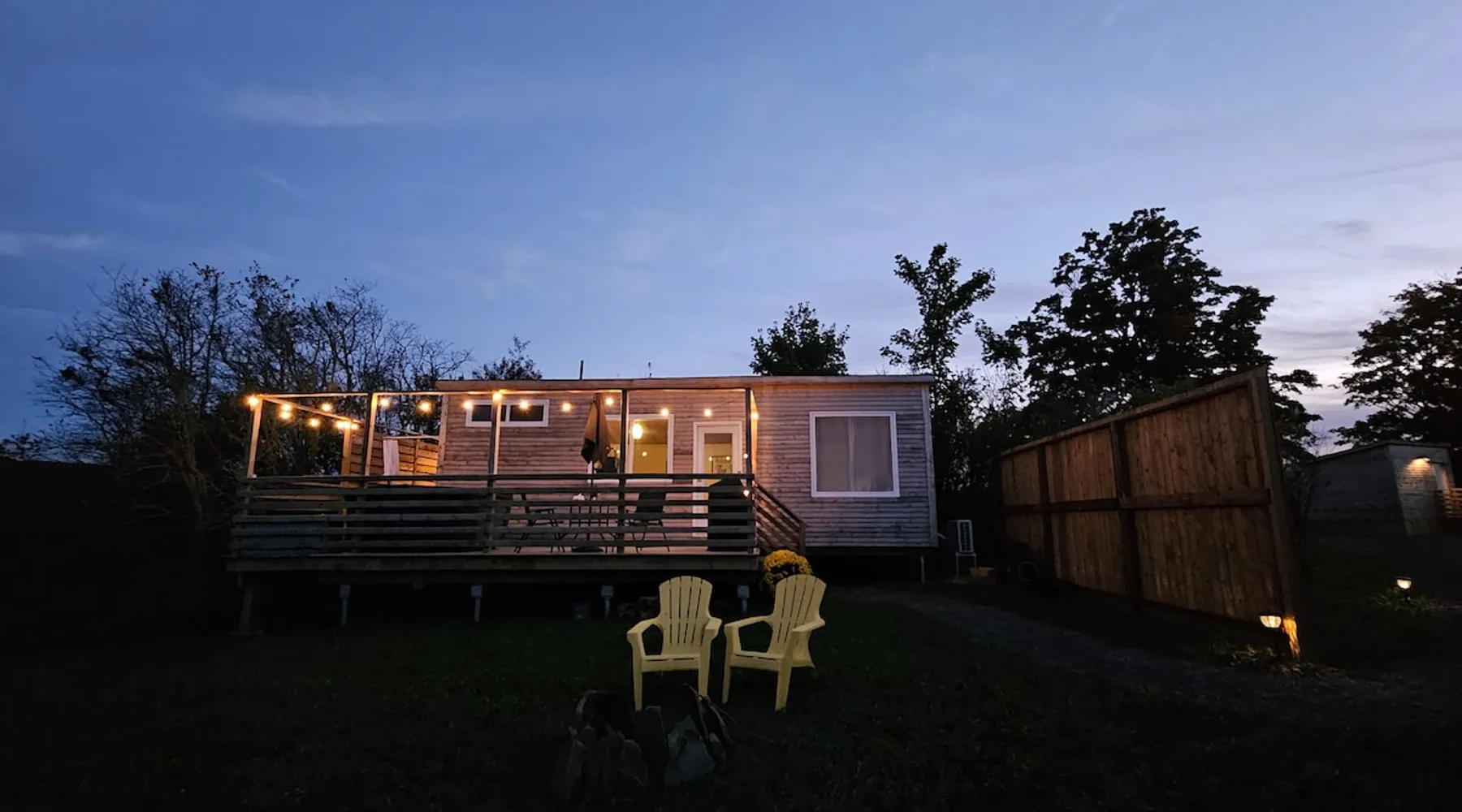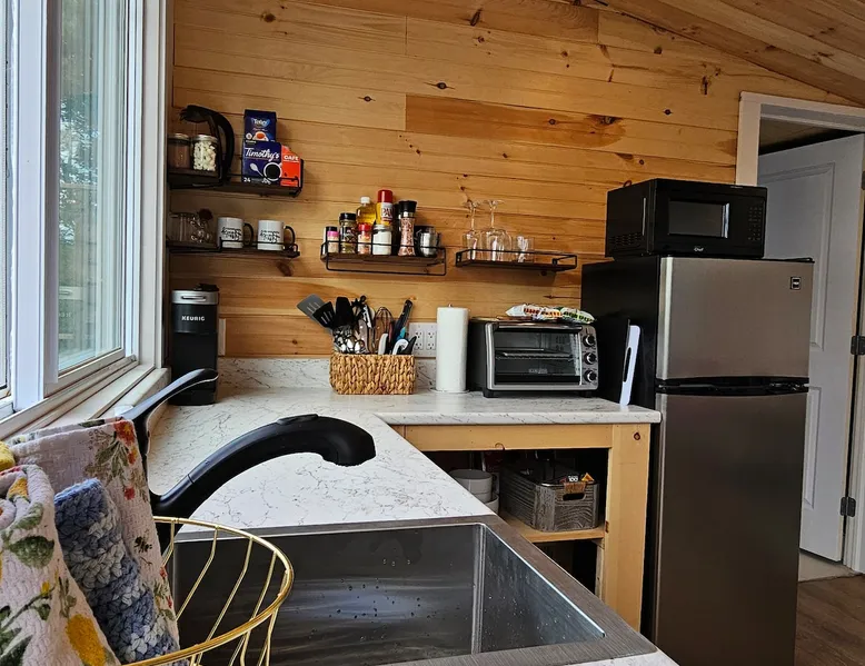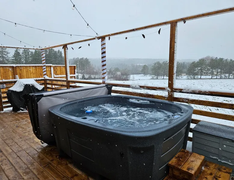 Welcome to The Knoll Bunkie at Hoxly Hideaway! It is one of two shed-style tiny homes with its own hot tub, located in the heart of Elgin, NB. Open year-round, enjoy peace and privacy only steps from the Elgin Eco Park, hiking & cycling trails, ATV and snowmobiling trails, the Pollett River, and much much more. Relax and unwind in this cozy & quaint space, whether you've spent the day on the trails or are looking for a unique getaway. The space The property consists of two 10x30 unique tiny homes situated on 5 acres of land right off the main road in the heart of Elgin. This unit has beautiful field & tree views with lots of wildlife sightings, small & large, and is the more favourable unit for pets with the expansive field out front. Outside on the deck just steps from the door, there is a hot tub to unwind in, a seating area, BBQ, and three seasons outdoor shower (not operating in the winter). Completing the outdoor space is a firepit area (wood provided). Inside this studio style lay-out, you will find a well equipped kitchenette complete with an apartment sized fridge (with freezer), double cooktop burner, microwave, toaster oven, air fryer, kettle, and Keurig (complimentary coffee & tea pods, tea bags, sugar, hot chocolate, and milk & cream are provided). Everything else needed for cooking is right at your fingertips! There is a small dining table for two, complete with a cozy seating area with love seat. This is a great space for board games, cards, a movie night, or to put your feet up and relax. Have a great night's sleep in the luxurious and cozy bed, with beautiful views from the big picture window overlooking the field. Enjoy the three piece bath during your stay with all the amenities provided as well as heated porcelain floors for comfort. You can also access the outside shower & hot tub through the bathroom. If you are not a fan of full sun, this bunkie is East facing and offers more shade than "The Grove bunkie". Guest access Guests have full access to the tiny home. We ask that you stay to the section of the field directly in front of the bunkie if out with your dog so as not to disturb guests in the other bunkie. (In "Exterior" photos, there is an aerial picture showing you the boundaries). Other things to note Please let us know if your pet will be with you. The property is on the main road in Elgin. Cleaning fee: In order to keep our rate reasonable we do not charge a cleaning fee but do ask for general tidying. Please no cooking of shellfish or fish in the bunkie as a staff member is very allergic. Thank you! Fires: From April to November there can be fire bans. Please check the NB Forest Fire Watch (GNB website) for daily restrictions. Their website updates daily at 2pm. Fireworks: Not permitted. Exploring: Please be cautious of your GPS if coming to or from Fundy National Park/Alma. It may take you on back roads that are only meant for 4x4 vehicles and areas where there is no cell service. Pets: Please clean up after your furry friend, it would be much appreciated! The property is an old family homestead so there may be small shards of glass around. We are doing our best to remove what we can. Extras: If you would like to celebrate/set up something special, please send us a message so we can help accommodate your requests!