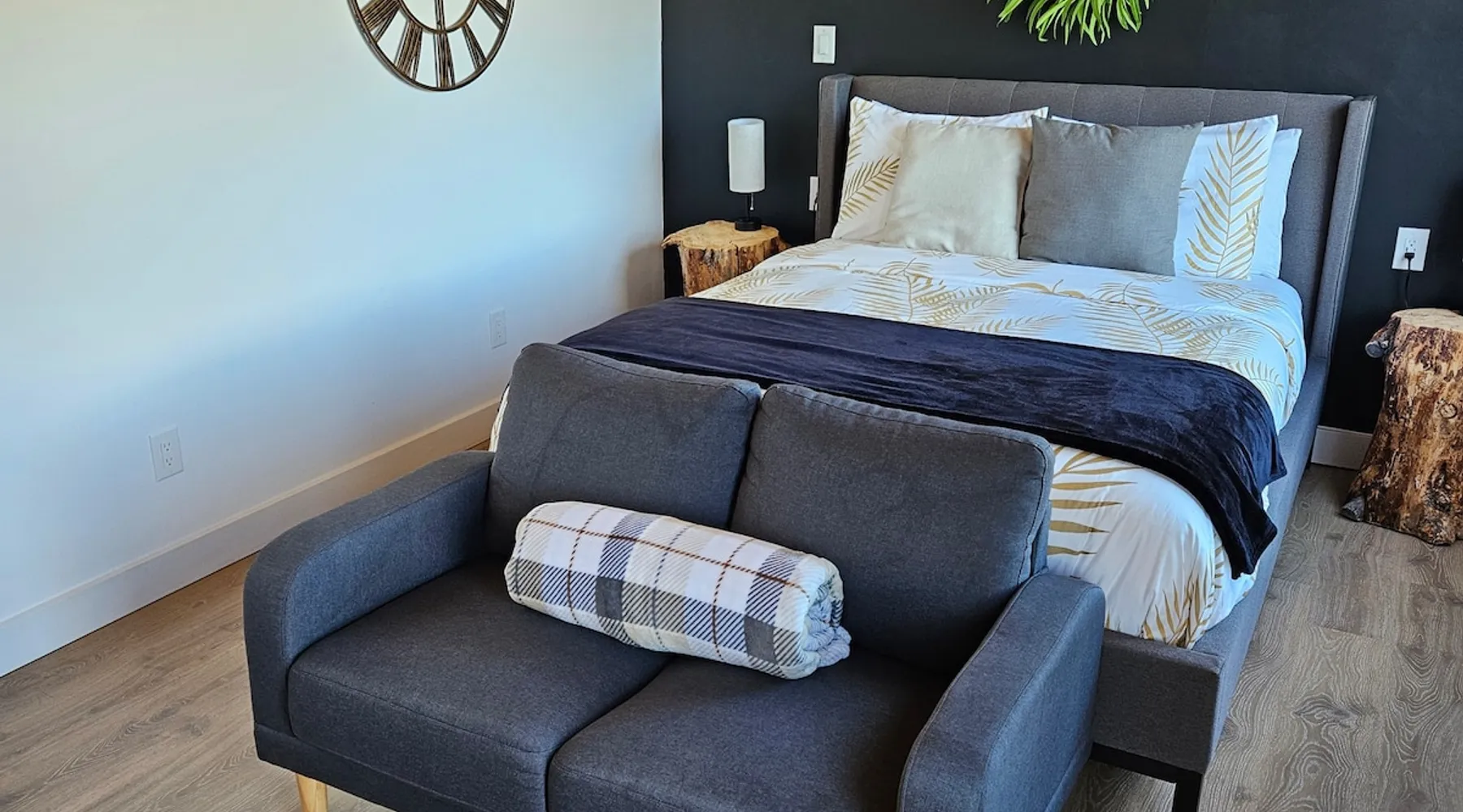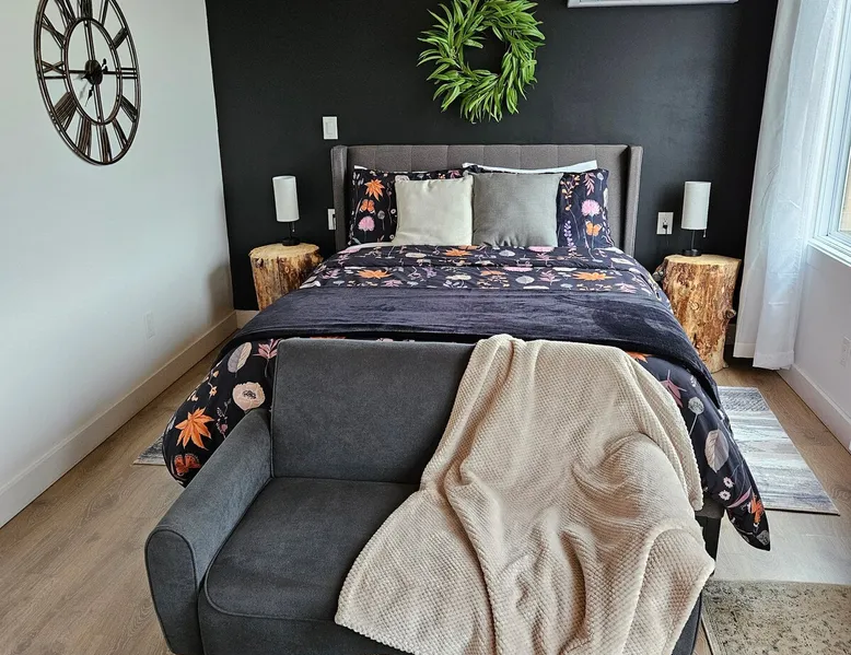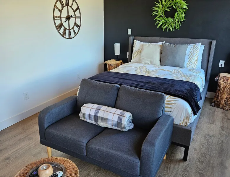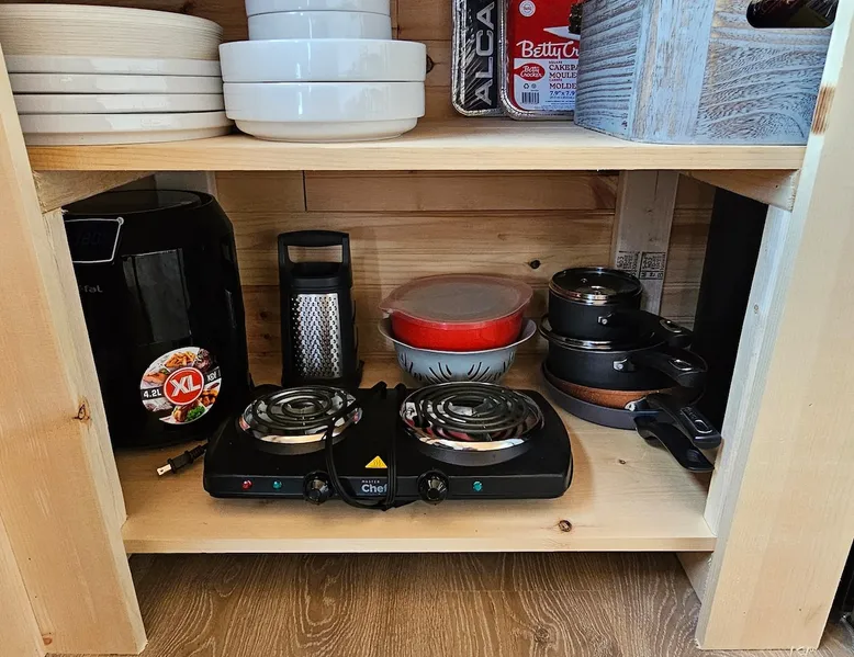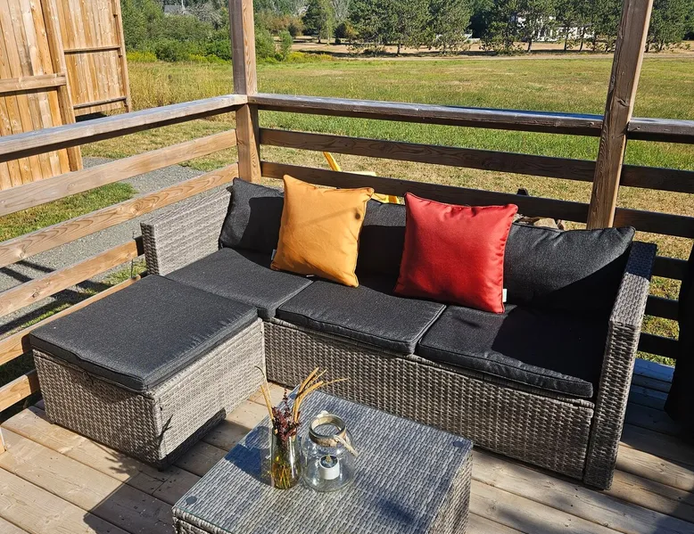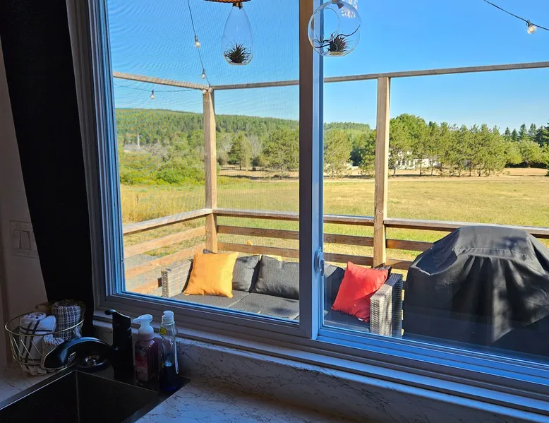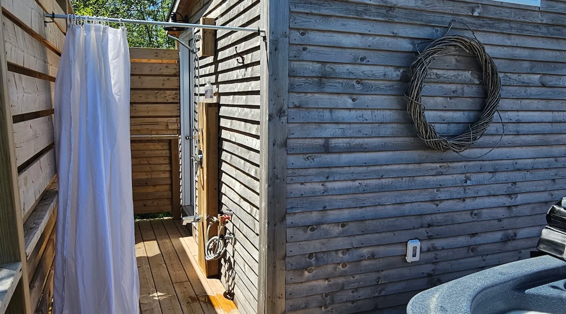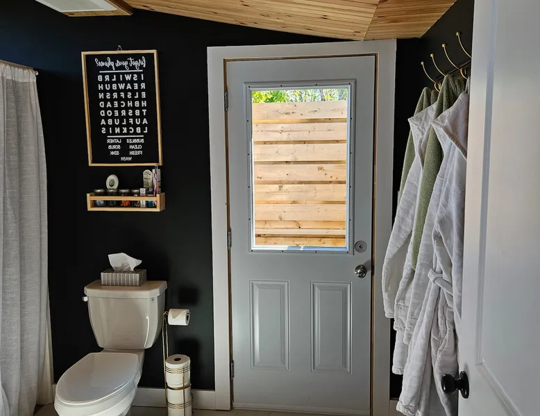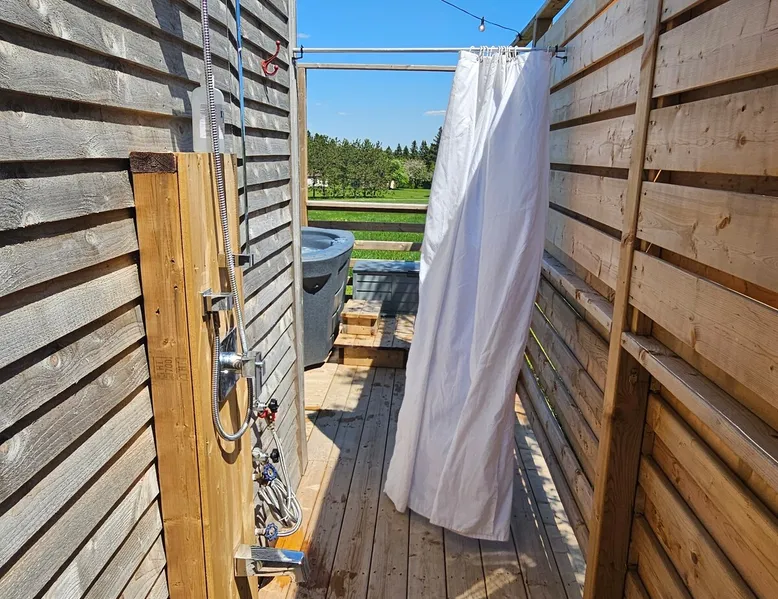 Welcome to The Knoll Bunkie at Hoxly Hideaway! It is one of two shed-style tiny homes with its own hot tub, located in the heart of Elgin, NB. Open year-round, enjoy peace and privacy only steps from the Elgin Eco Park, hiking & cycling trails, ATV and snowmobiling trails, the Pollett River, and much much more. Relax and unwind in this cozy & quaint space, whether you've spent the day on the trails or are looking for a unique getaway. The space The property consists of two 10x30 unique tiny homes situated on 5 acres of land right off the main road in the heart of Elgin. This unit has beautiful field & tree views with lots of wildlife sightings, small & large, and is the more favourable unit for pets with the expansive field out front. Outside on the deck just steps from the door, there is a hot tub to unwind in, a seating area, BBQ, and three seasons outdoor shower (not operating in the winter). Completing the outdoor space is a firepit area (wood provided). Inside this studio style lay-out, you will find a well equipped kitchenette complete with an apartment sized fridge (with freezer), double cooktop burner, microwave, toaster oven, air fryer, kettle, and Keurig (complimentary coffee & tea pods, tea bags, sugar, hot chocolate, and milk & cream are provided). Everything else needed for cooking is right at your fingertips! There is a small dining table for two, complete with a cozy seating area with love seat. This is a great space for board games, cards, a movie night, or to put your feet up and relax. Have a great night's sleep in the luxurious and cozy bed, with beautiful views from the big picture window overlooking the field. Enjoy the three piece bath during your stay with all the amenities provided as well as heated porcelain floors for comfort. You can also access the outside shower & hot tub through the bathroom. If you are not a fan of full sun, this bunkie is East facing and offers more shade than "The Grove bunkie". Guest access Guests have full access to the tiny home. We ask that you stay to the section of the field directly in front of the bunkie if out with your dog so as not to disturb guests in the other bunkie. (In "Exterior" photos, there is an aerial picture showing you the boundaries). Other things to note Please let us know if your pet will be with you. The property is on the main road in Elgin. Cleaning fee: In order to keep our rate reasonable we do not charge a cleaning fee but do ask for general tidying. Please no cooking of shellfish or fish in the bunkie as a staff member is very allergic. Thank you! Fires: From April to November there can be fire bans. Please check the NB Forest Fire Watch (GNB website) for daily restrictions. Their website updates daily at 2pm. Fireworks: Not permitted. Exploring: Please be cautious of your GPS if coming to or from Fundy National Park/Alma. It may take you on back roads that are only meant for 4x4 vehicles and areas where there is no cell service. Pets: Please clean up after your furry friend, it would be much appreciated! The property is an old family homestead so there may be small shards of glass around. We are doing our best to remove what we can. Extras: If you would like to celebrate/set up something special, please send us a message so we can help accommodate your requests!