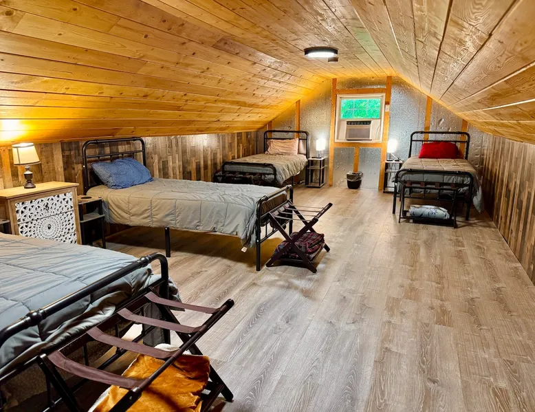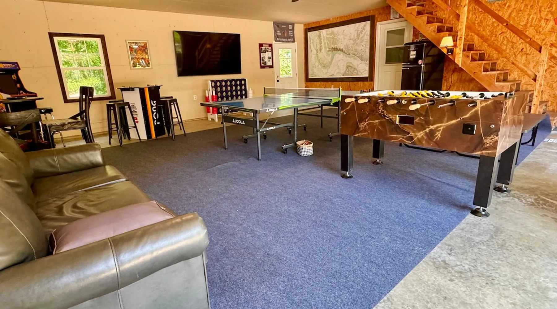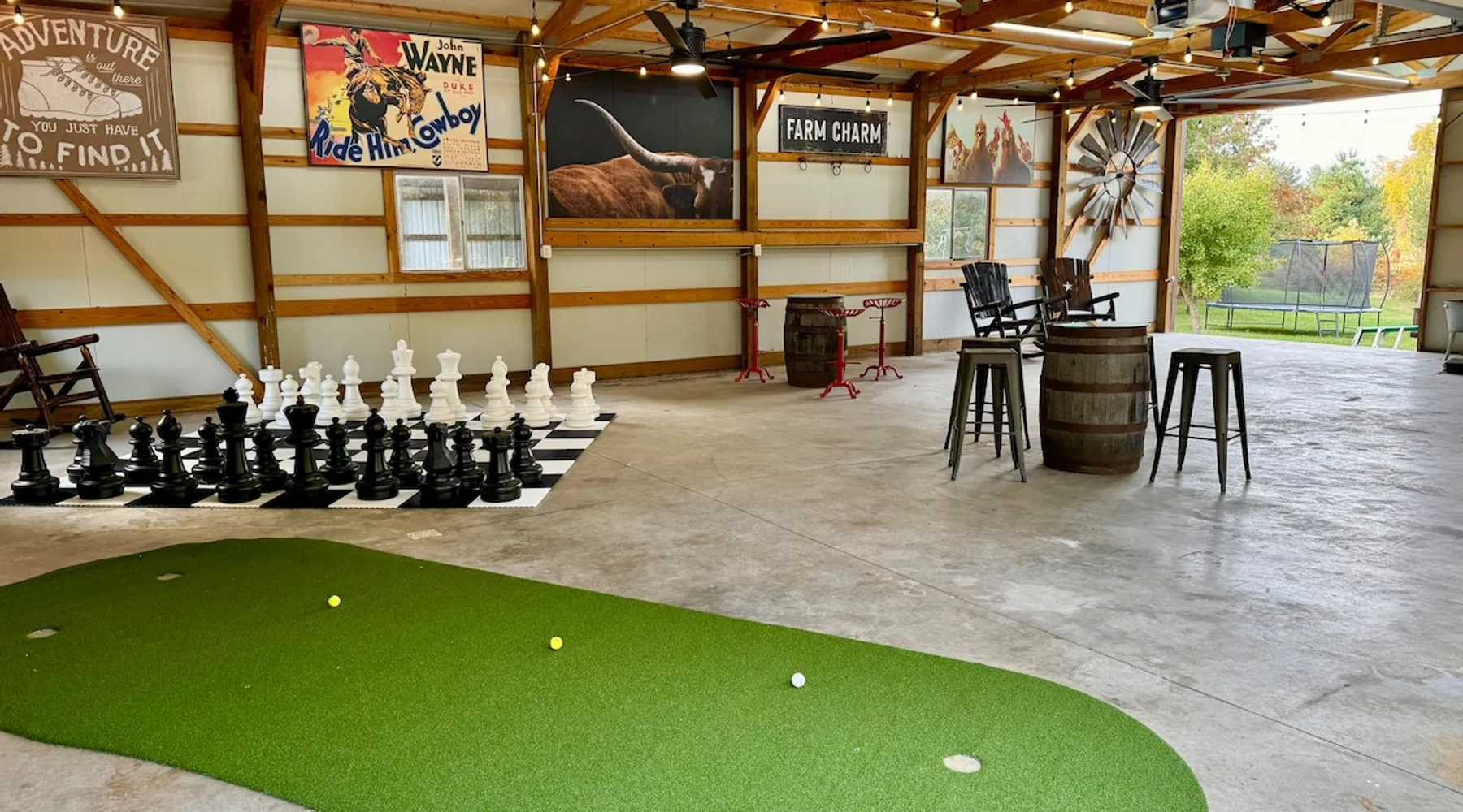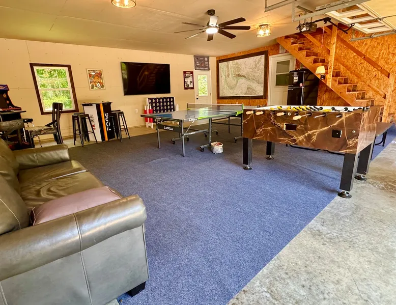 Grafton Getaway Guesthouses are eight family friendly locations and our newest, Towering Pines, has amenities we are known for such as board games, foosball, ping pong, mega chess, fishing pond, full kitchen, firepits, hammocks, arcade games, and the list goes on. We hope to host your next couples, group, or family getaway. This home sleeps 22 and if adding our Studio or Camper to your stay the capacity rises. The Studio rents separately but inquire about adding it to your large group stay. The space This property sits on 3 wooded acres with the next nearest neighbor being 350 yards away. Use of our 1500 square foot Barn event space is included with your stay and please inquire to add our Studio home if a large group stay. Adding the Studio adds a 4th full bathroom and 8th bedroom to your stay. Also please note that in early 2025 the main house will have a half bath added in the basement. For the main house, the barn, and the Studio together the total indoor square footage available to guests is a very spacious 6,500 square feet Other things to note Towering Pines is just 8 minutes from Grafton and we have many excursion brochures all of which are within 15 minutes drive from the home. Lambert STL airport is 38 minutes away. At all locations we utilize staggered pricing so that smaller groups pay less than larger groups. An accurate overnight guest count is imperative and additional guests are $30 per person per night starting with the 4th guest. The app will calculate this for you up to the 16th guest and after that we manually calculate it. For special events we must come to terms prior to your reservation. Please reach out with specifics of your event prior to booking and a site visit prior to booking is always welcome to discuss parking/trash/etc. If this property is booked for your desired stay dates please consider our sister locations which are all within 12 minutes drive from this property. Guests at hotels call the front desk when they need something...so if ever during a stay you feel your satisfaction is not at a 5-star level please call/text us right away, while you are still with us, so we can remedy the situation and make your stay all you hoped it would be.