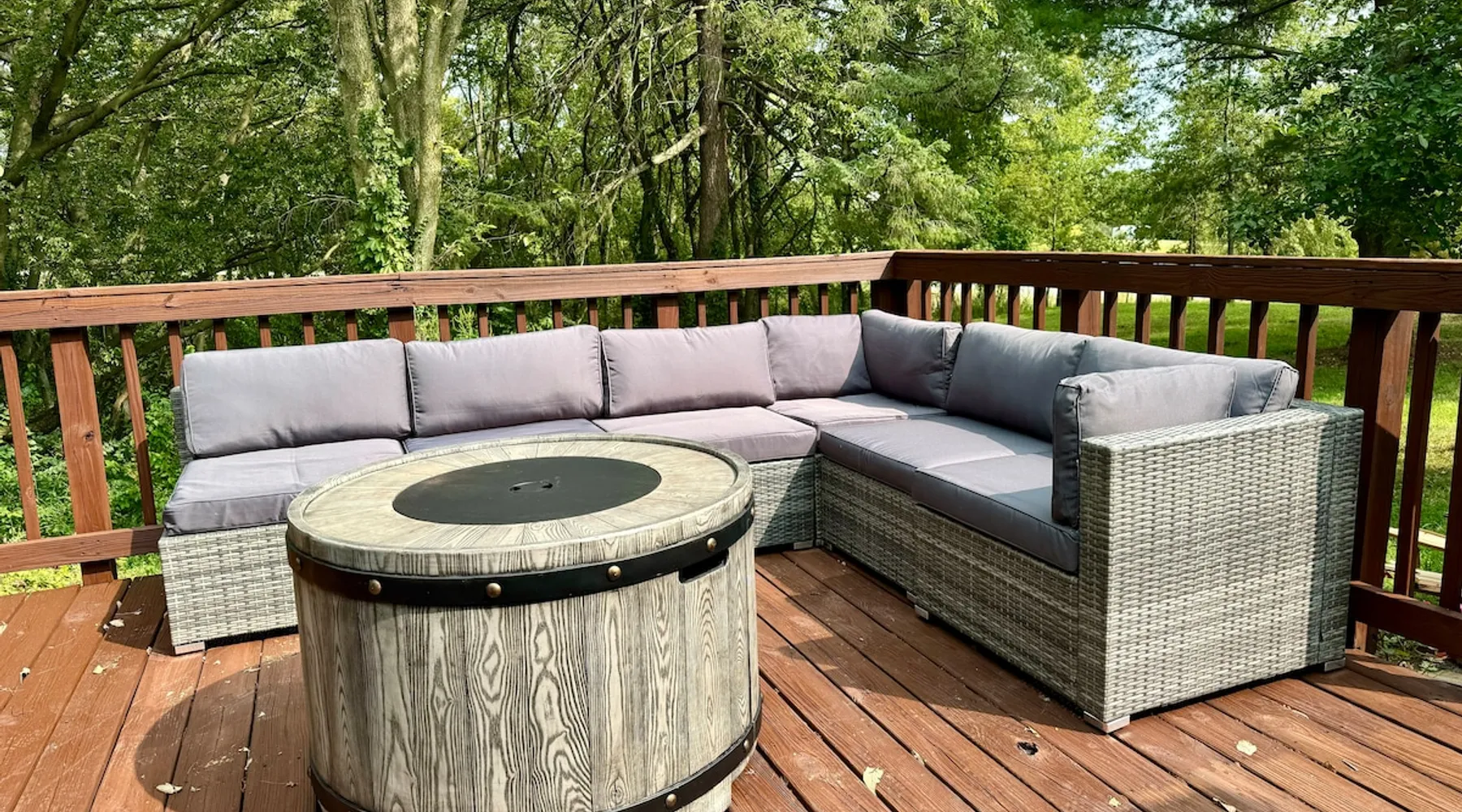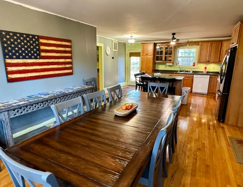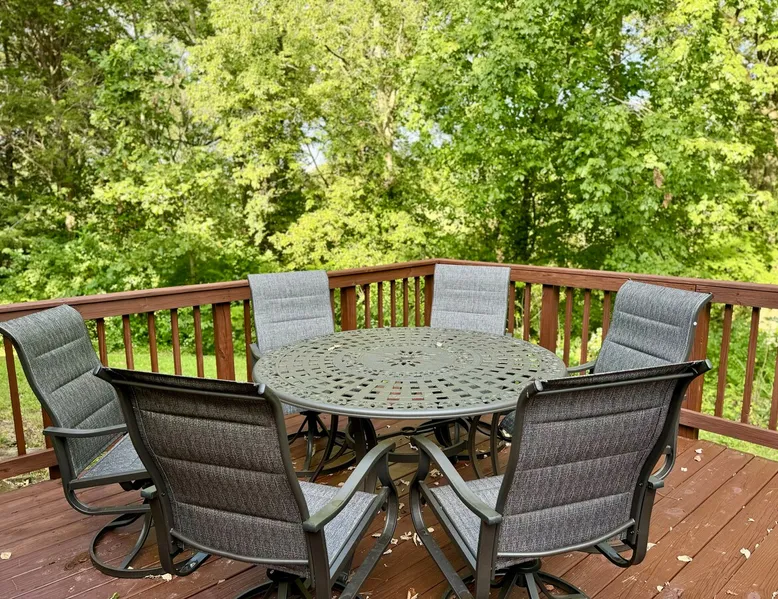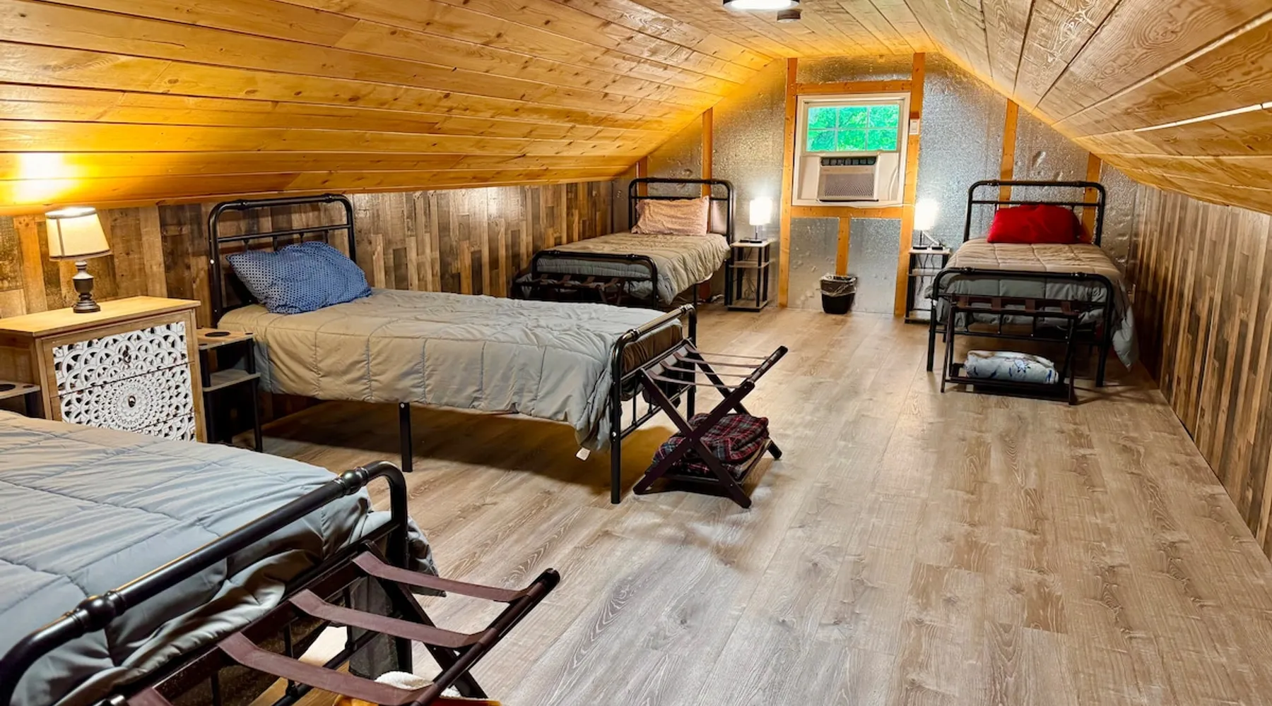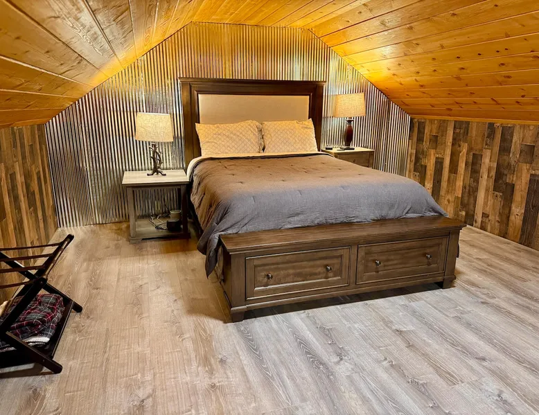 Grafton Getaway Guesthouses are eight family friendly locations and our newest, Towering Pines, has amenities we are known for such as board games, foosball, ping pong, mega chess, fishing pond, full kitchen, firepits, hammocks, arcade games, and the list goes on. We hope to host your next couples, group, or family getaway. This home sleeps 22 and if adding our Studio or Camper to your stay the capacity rises. The Studio rents separately but inquire about adding it to your large group stay. The space This property sits on 3 wooded acres with the next nearest neighbor being 350 yards away. Use of our 1500 square foot Barn event space is included with your stay and please inquire to add our Studio home if a large group stay. Adding the Studio adds a 4th full bathroom and 8th bedroom to your stay. Also please note that in early 2025 the main house will have a half bath added in the basement. For the main house, the barn, and the Studio together the total indoor square footage available to guests is a very spacious 6,500 square feet Other things to note Towering Pines is just 8 minutes from Grafton and we have many excursion brochures all of which are within 15 minutes drive from the home. Lambert STL airport is 38 minutes away. At all locations we utilize staggered pricing so that smaller groups pay less than larger groups. An accurate overnight guest count is imperative and additional guests are $30 per person per night starting with the 4th guest. The app will calculate this for you up to the 16th guest and after that we manually calculate it. For special events we must come to terms prior to your reservation. Please reach out with specifics of your event prior to booking and a site visit prior to booking is always welcome to discuss parking/trash/etc. If this property is booked for your desired stay dates please consider our sister locations which are all within 12 minutes drive from this property. Guests at hotels call the front desk when they need something...so if ever during a stay you feel your satisfaction is not at a 5-star level please call/text us right away, while you are still with us, so we can remedy the situation and make your stay all you hoped it would be.