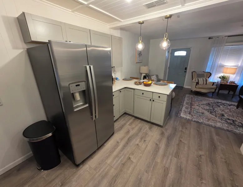 This Newly renovated house in Bainbridge offers a peaceful retreat for guests. With 3 bedrooms including 2 queen beds and 1 full bed, this gorgeous property also has a private courtyard that is perfect for a relaxing getaway. Enjoy the convenience of WiFi, AC, heating, and a washing machine and dryer during your stay. The 2 bathrooms come equipped with a hair dryer, bathtub, and shower for added comfort. We're happy to assist with any questions while you stay at our house. Security Cameras are installed outside the Property for security purposes.