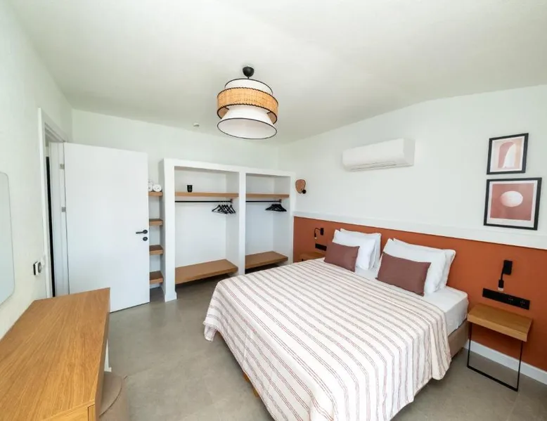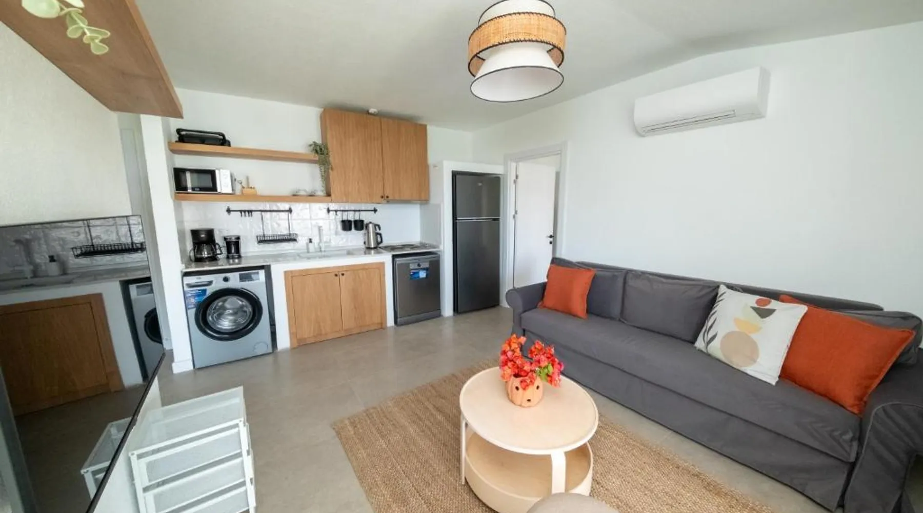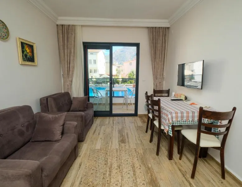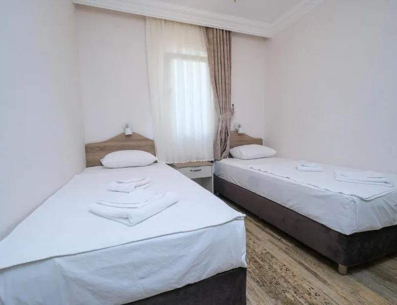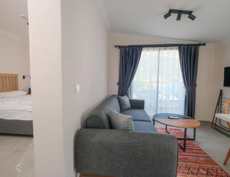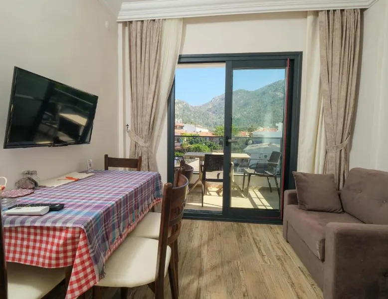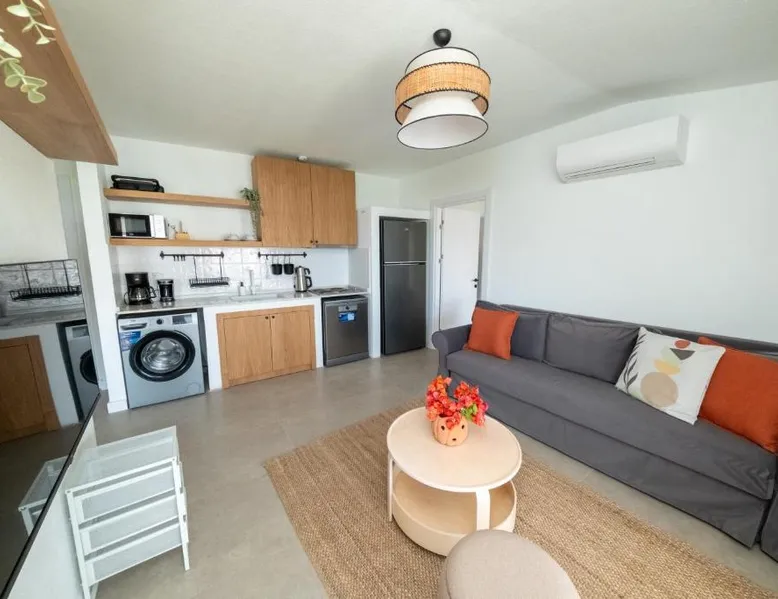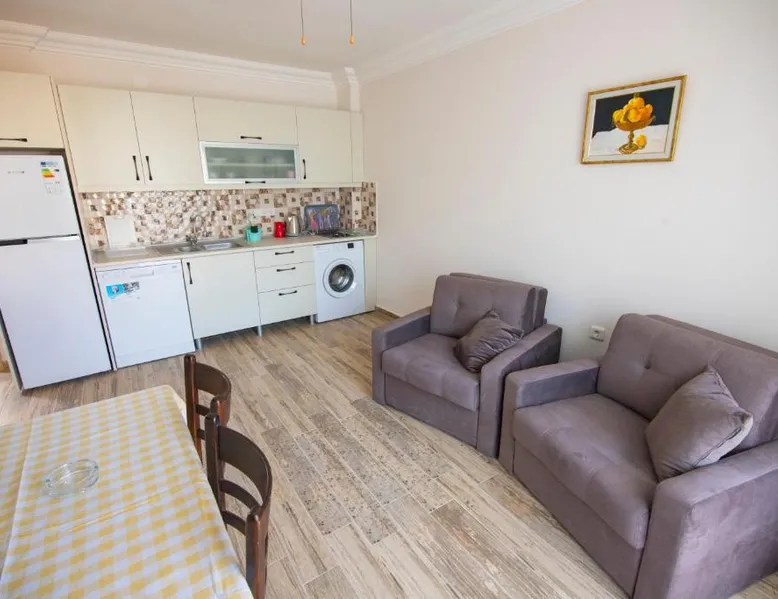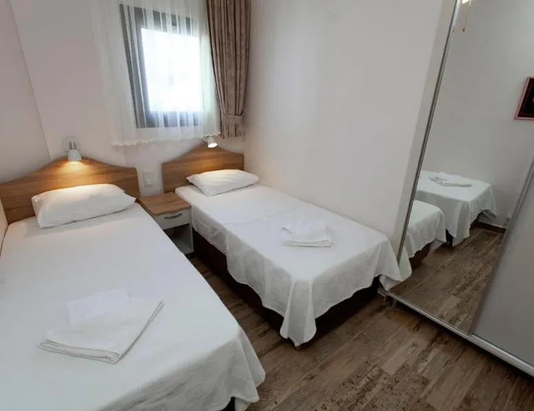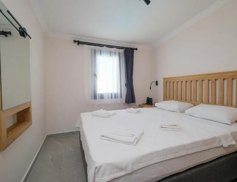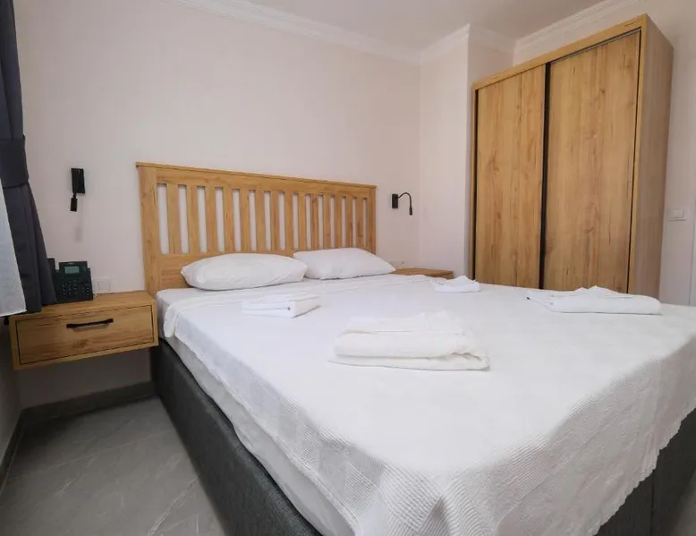 Prime Location: Diplomat Suites in Marmaris offers a private beach area, sun terrace, and a seasonal outdoor swimming pool. Guests enjoy free WiFi, a lush garden, and a modern restaurant. Comfortable Accommodations: The apartment features air-conditioning, a balcony with garden or pool views, and a fully equipped kitchen. Additional amenities include a washing machine, dishwasher, and a work desk. Dining Experience: The family-friendly restaurant serves seafood, steakhouse, Turkish, and international cuisines. Breakfast options include local specialties, fresh pastries, and vegetarian and vegan choices. Local Attractions: Turunç Plajı is just a few steps away, while Marmaris Yacht Marina is 19 mi from the property. Other nearby attractions include Aqua Dream Water Park and Marmaris Castle. This spacious suite is consisted of of 1 living room, 2 separate bedrooms and 1 bathroom with a shower and free toiletries. In the well-equipped kitchen, guests will find a stovetop, a refrigerator, a dishwasher and kitchenware. The air-conditioned suite offers a flat-screen TV with streaming services, a washing machine, a private entrance, soundproof walls as well as sea views. The unit offers 4 beds.