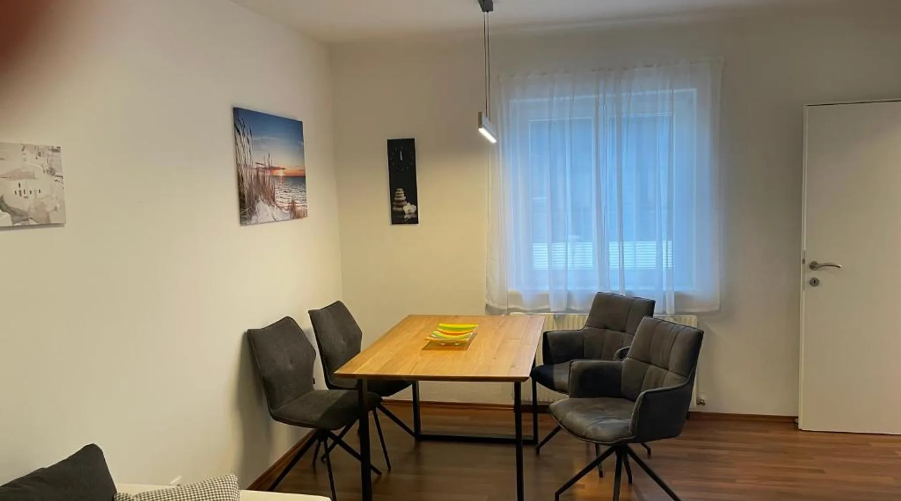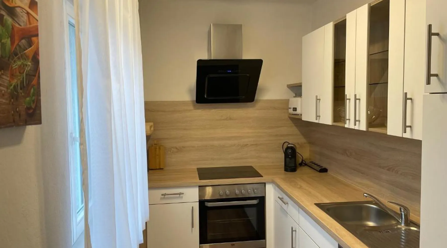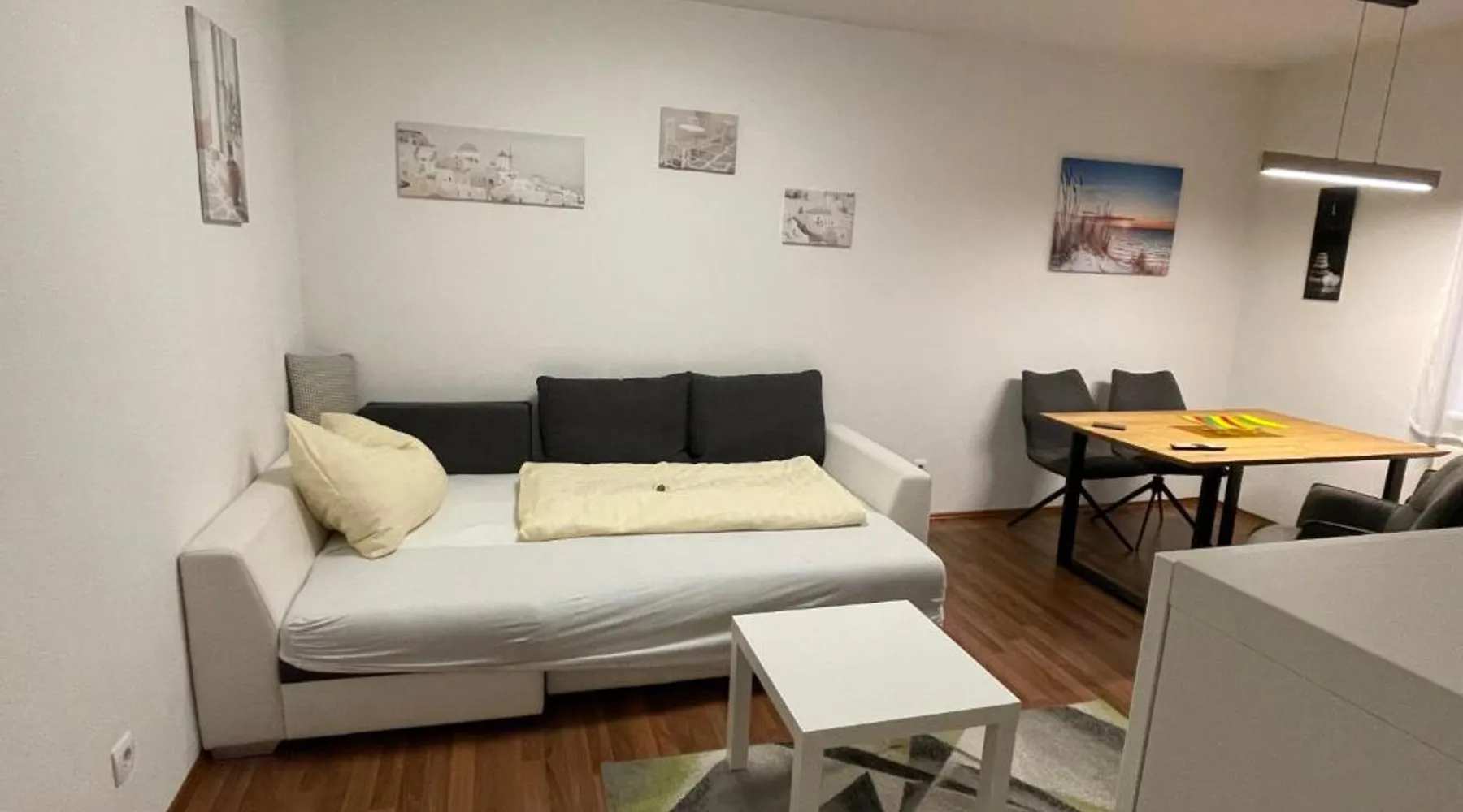 Comfortable Accommodations: Wunderschöne Stadtwohnung in Köflach offers a one-bedroom apartment with a living room. The property features a kitchenette, bathroom, and city views. Dining and Leisure: Guests can enjoy Italian cuisine at the family-friendly restaurant serving lunch, dinner, and high tea. The apartment includes a coffee shop and family rooms. Convenient Location: Located 25 mi from Graz Airport, the apartment is near attractions such as Eggenberg Palace (22 mi) and Graz Town Hall (29 mi). Activities include skiing and cycling. Guest Satisfaction: Highly rated by guests for its excellent facilities and comfortable accommodations. In the fully equipped kitchen, guests will find a stovetop, a refrigerator, a dishwasher and kitchenware. The apartment provides soundproof walls, a coffee machine, a seating area, a flat-screen TV with cable channels, as well as city views. The unit offers 2 beds.