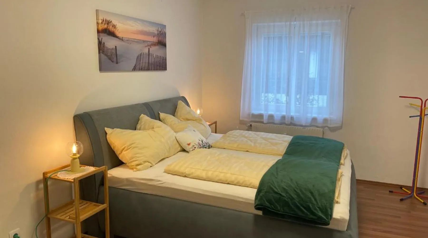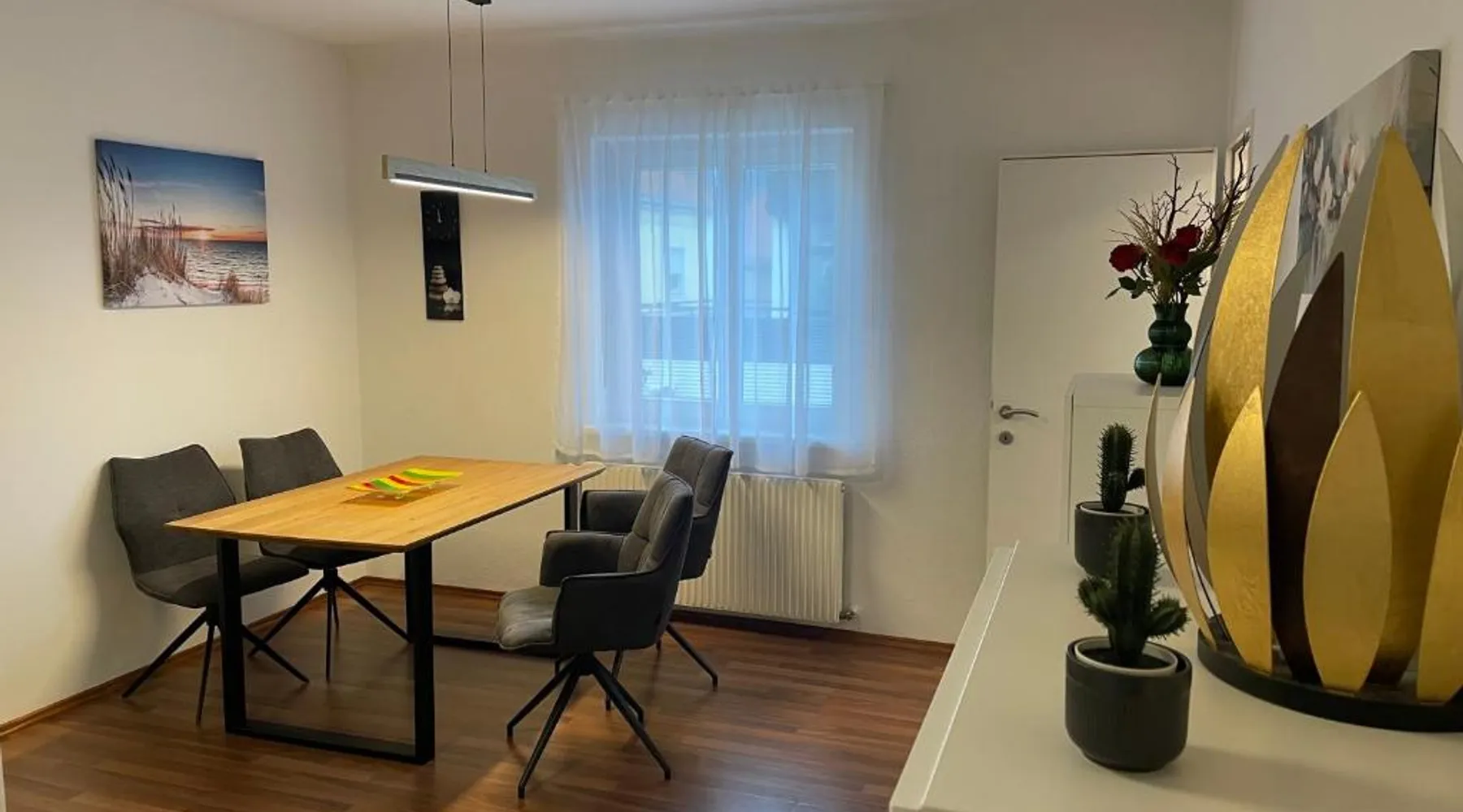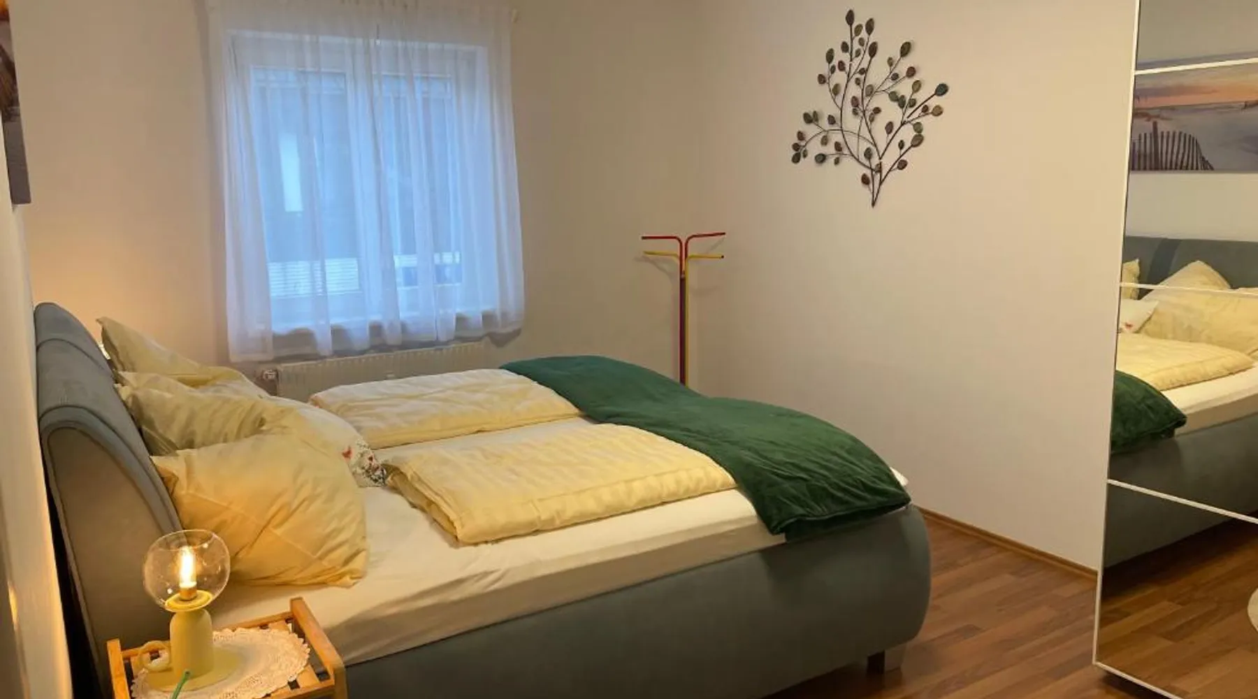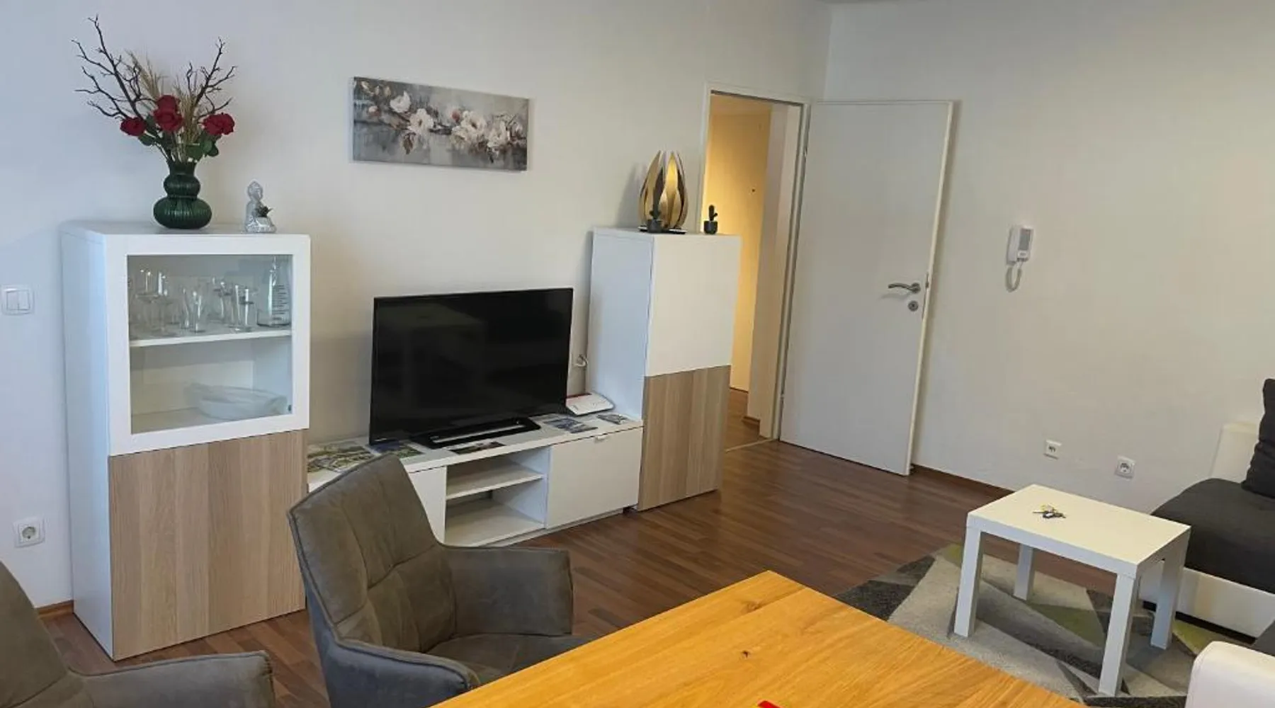 Comfortable Accommodations: Wunderschöne Stadtwohnung in Köflach offers a one-bedroom apartment with a living room. The property features a kitchenette, bathroom, and city views. Dining and Leisure: Guests can enjoy Italian cuisine at the family-friendly restaurant serving lunch, dinner, and high tea. The apartment includes a coffee shop and family rooms. Convenient Location: Located 25 mi from Graz Airport, the apartment is near attractions such as Eggenberg Palace (22 mi) and Graz Town Hall (29 mi). Activities include skiing and cycling. Guest Satisfaction: Highly rated by guests for its excellent facilities and comfortable accommodations. In the fully equipped kitchen, guests will find a stovetop, a refrigerator, a dishwasher and kitchenware. The apartment provides soundproof walls, a coffee machine, a seating area, a flat-screen TV with cable channels, as well as city views. The unit offers 2 beds.