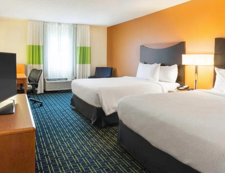 Comfortable Accommodations: Fairfield Inn & Suites Fargo in Fargo offers comfortable rooms with air-conditioning, private bathrooms, tea and coffee makers, hairdryers, work desks, and seating areas. Each room includes a bath or shower, carpeted floors, and a TV. Exceptional Facilities: Guests enjoy a fitness center, free use of bicycles, and complimentary WiFi. Additional amenities include a lounge, hot tub, 24-hour front desk, minimarket, electric vehicle charging station, business area, and express check-in and check-out services. Convenient Location: Located 4.3 mi from Hector International Airport, the hotel is near Roger Maris Museum (less than 0.6 mi), West Acres Shopping Center (11-minute walk), and other attractions such as Red River Zoo (2.2 mi) and Fargo Civic Center (3.7 mi). Guest Satisfaction: Highly rated by guests for its bed comfort, the hotel ensures a pleasant stay with free on-site parking, American breakfast, and multilingual staff. The unit has 2 beds.