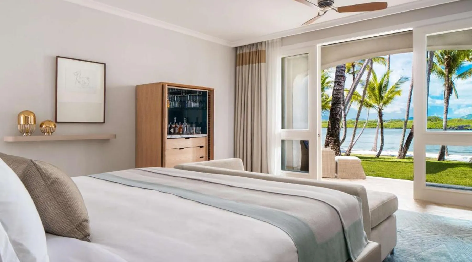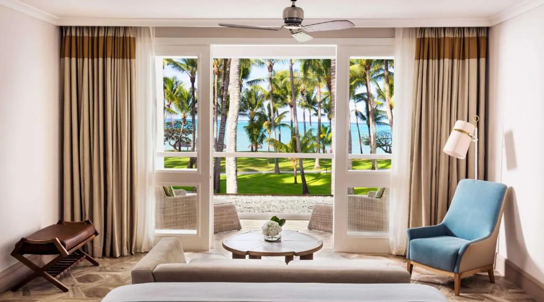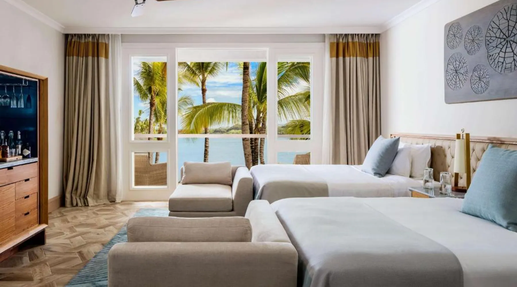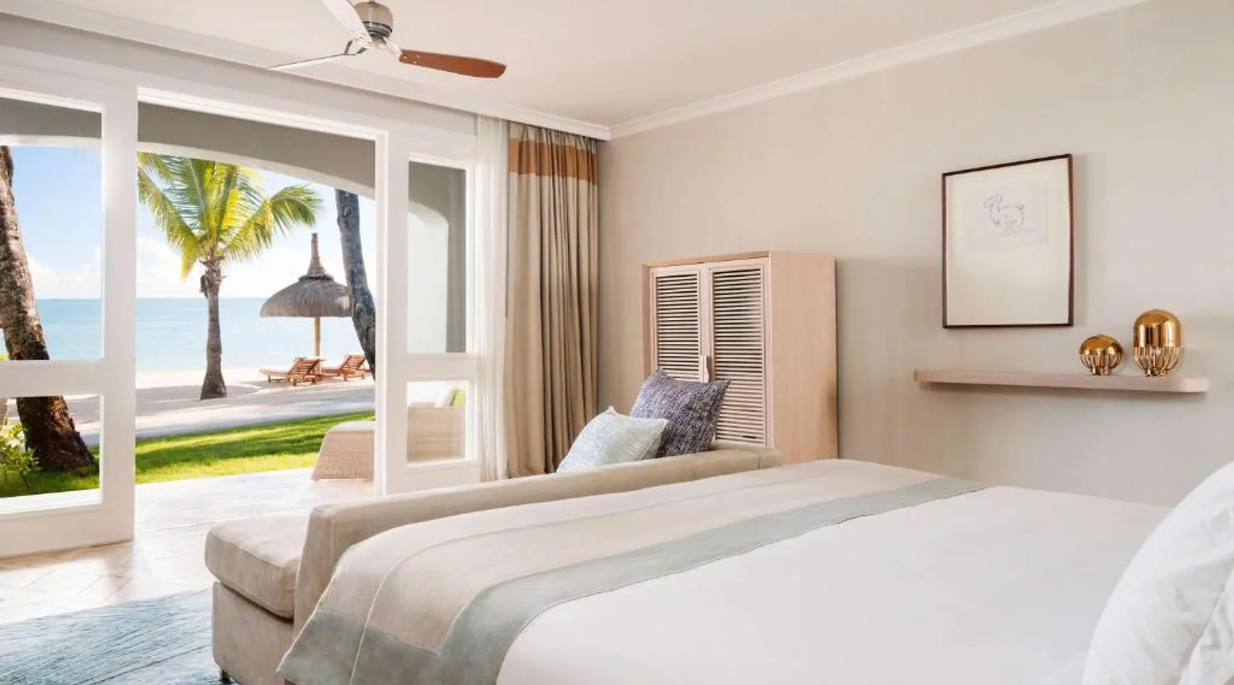 From 27 to 30 April 2026, the One&Only Le Saint Géran resort facilities will be reserved exclusively for private events. During this time, Private Homes guests will enjoy full access to RIVA Pool & Beach Club’s Italian restaurant (open for breakfast, lunch and dinner), pool, bar, and deli stocked with gourmet groceries and home cooking essentials. A full range of à la carte services are also available to enhance your stay, including in-home dining experiences, Guerlain Spa treatments, personal fitness and wellness sessions in the privacy of your residence. Access to the main resort facilities, including Club One, Guerlain Spa, boat house, tennis and padel courts, KidsOnly, One Tribe, and the resort pools, beach and restaurants will not be available to Private Homes guests and Homeowners during these dates. As we understand how important these amenities are to your stay, our dedicated team is on hand to answer any questions and suggest alternative experiences to ensure your time with us remains extraordinary. The spacious air-conditioned suite features a flat-screen TV with satellite channels, a mini-bar, a tea and coffee maker, a wardrobe as well as sea views. The unit has 2 beds.