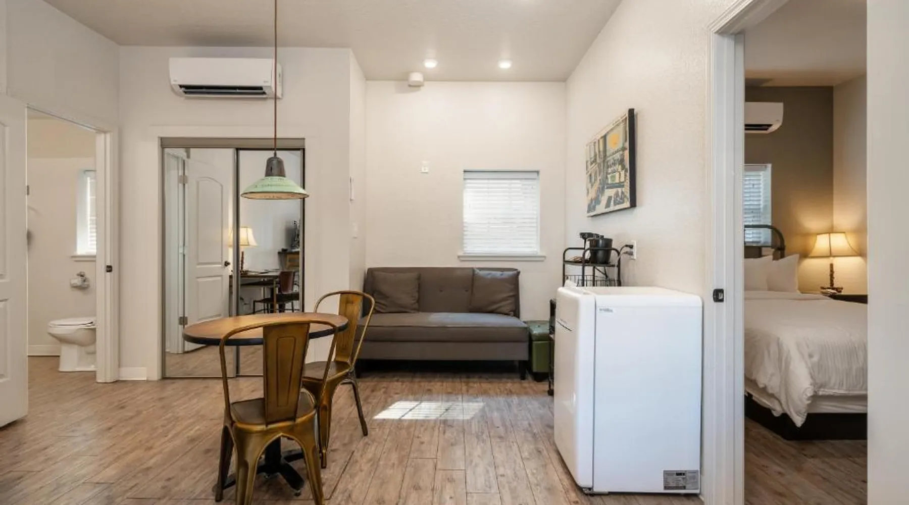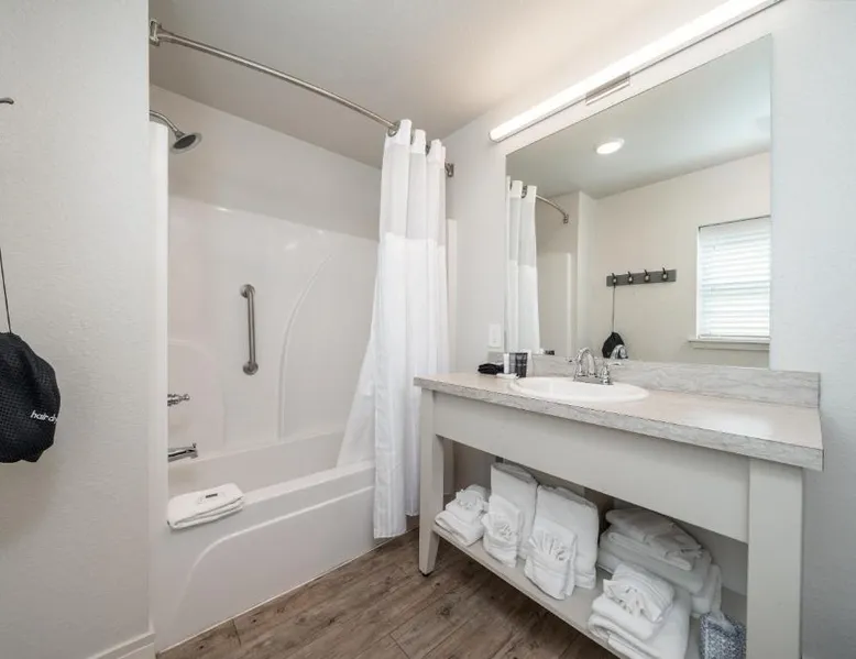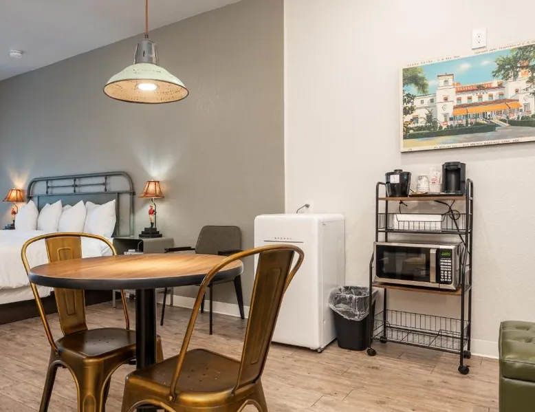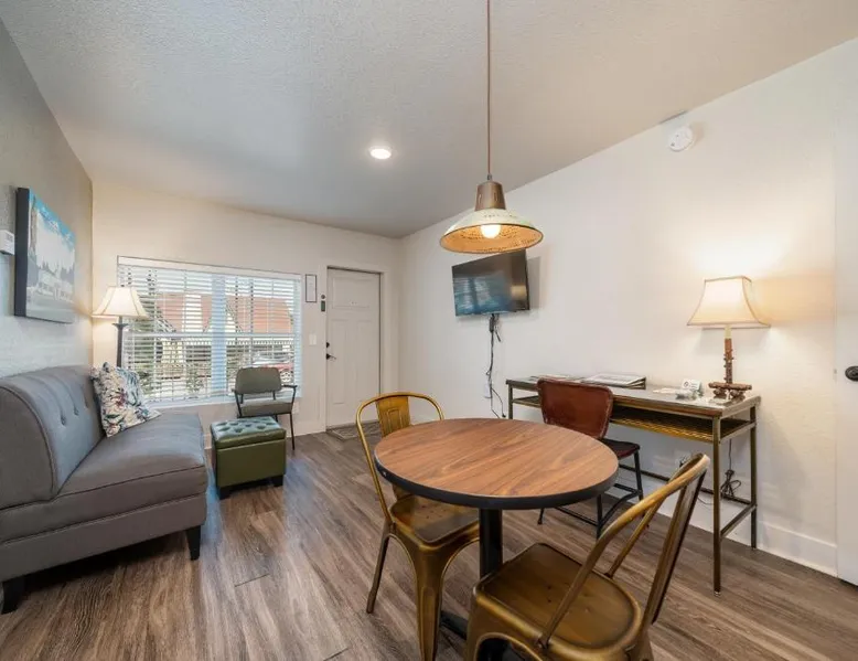 Comfortable Accommodations: Best Court in Hot Springs National Park offers family rooms with private bathrooms, air-conditioning, and parquet floors. Each room includes a seating area, TV, and free toiletries. Dining and Leisure: The inn features a terrace, restaurant, and bar. Guests can enjoy American cuisine for lunch in the outdoor seating area. Free WiFi is available throughout the property. Convenient Location: Located 1.9 mi from Hot Springs Memorial Field Airport and 3.1 mi from Magic Springs Crystal Falls. Nearby attractions include Ponce De Leon Golf Course at 16 mi. Guest Satisfaction: Highly rated for room cleanliness, comfort, and convenient location. Featuring a private entrance, this air-conditioned suite consists of 1 living room, 1 separate bedroom and 1 bathroom with a bath and a shower. In the well-fitted kitchen, guests will find a stovetop, a refrigerator, a dishwasher and kitchenware. The suite features parquet floors, a seating area with a flat-screen TV with streaming services, a coffee machine, a dining area, as well as a wardrobe. The unit offers 1 bed.