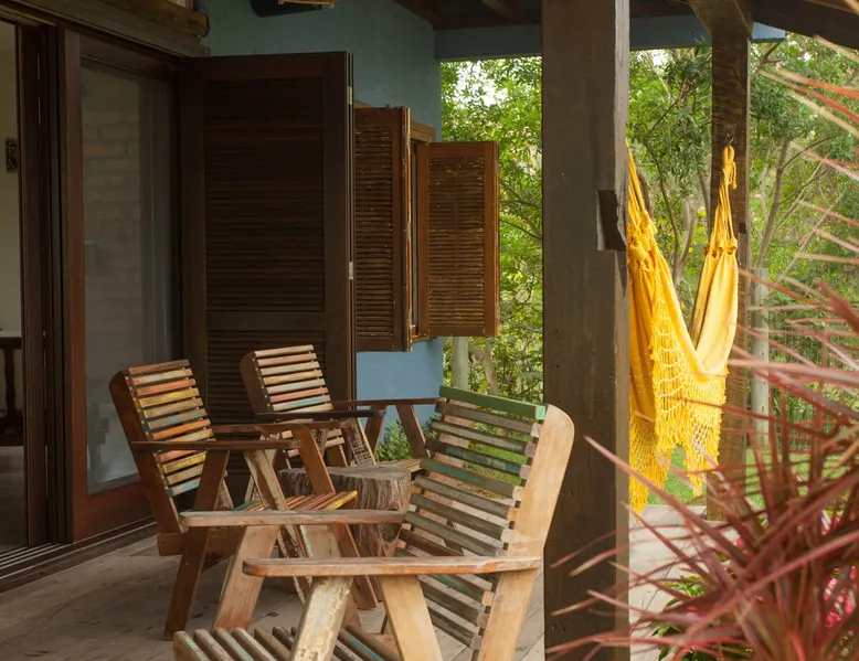 Beautiful house very close to the sea on one of the most beautiful beaches in Garopaba. It offers two en-suites on the upper floor, plus two bedrooms on the ground floor, one with a queen-size bed and the other with a queen-size bed and a bunk bed, plus two other bathrooms. All rooms have split air-conditioning. The living room is spacious and combined with the kitchen, creating a comfortable environment integrated with a charming balcony made of reclaimed wood and featuring a barbecue grill. The space Distinctive and structured house for families. Very close to the sea and the center of Ferrugem. House on a single lot, all fenced, with a lawn and totally private. WE DO NOT RENT TO GROUPS OF SINGLE PEOPLE. WE DO NOT ACCEPT PETS. Guest access The house offers laundry with a washing machine and washing sink, an outdoor shower, 2 hammocks, 6 beach chairs, a smart TV, Wi-Fi, fans, a microwave, a blender, a microprocessor, a coffee maker, a toaster, a water purifier, and skewers. Other things to note An arm of the Garopaba Lagoon reaches the sea and divides the beaches of Ferrugem and Barra. At this point, there is a Sambaqui approximately 7,000 years old, full of historical marks left by the original peoples.