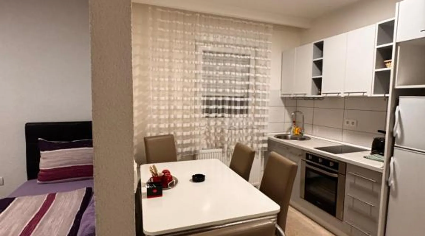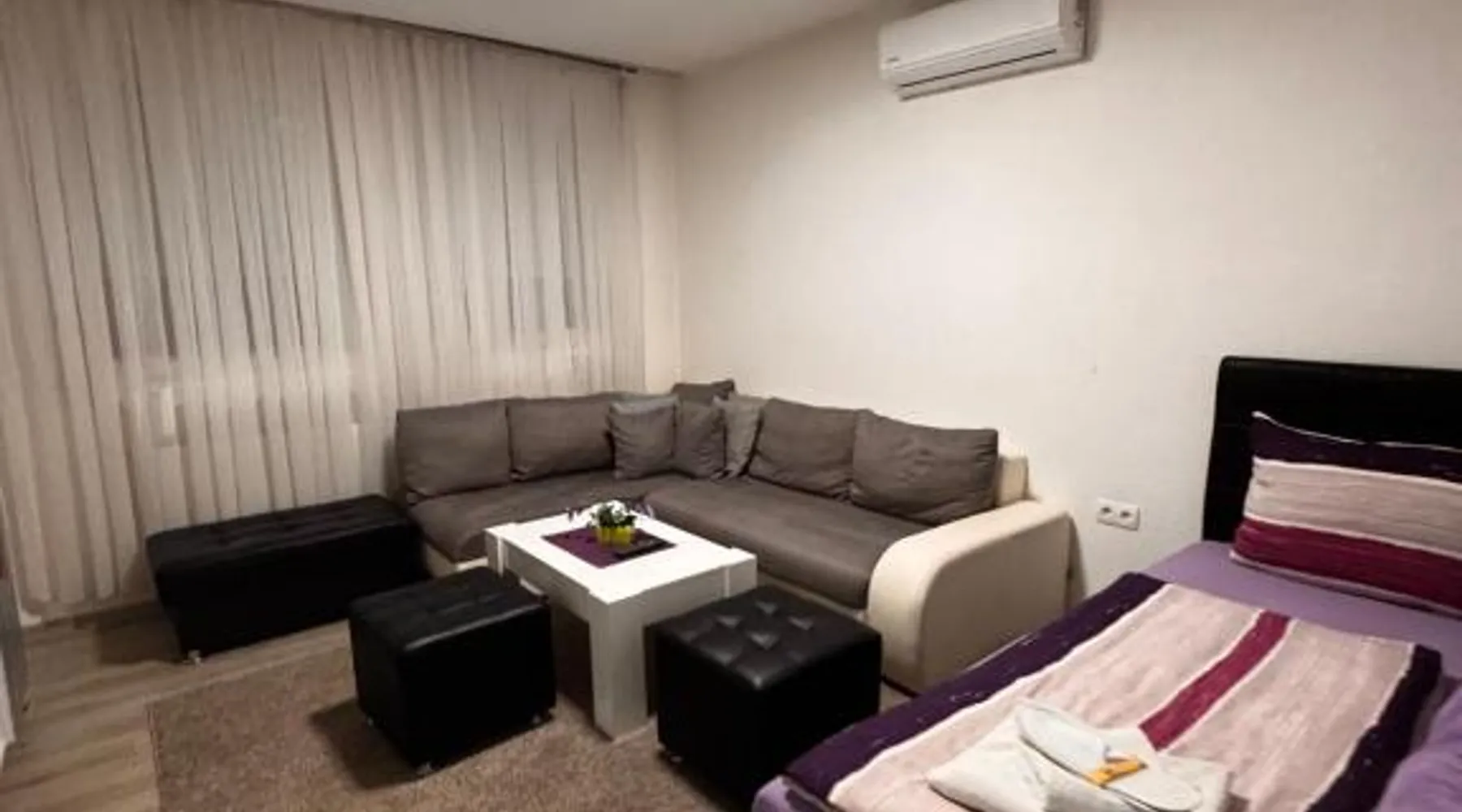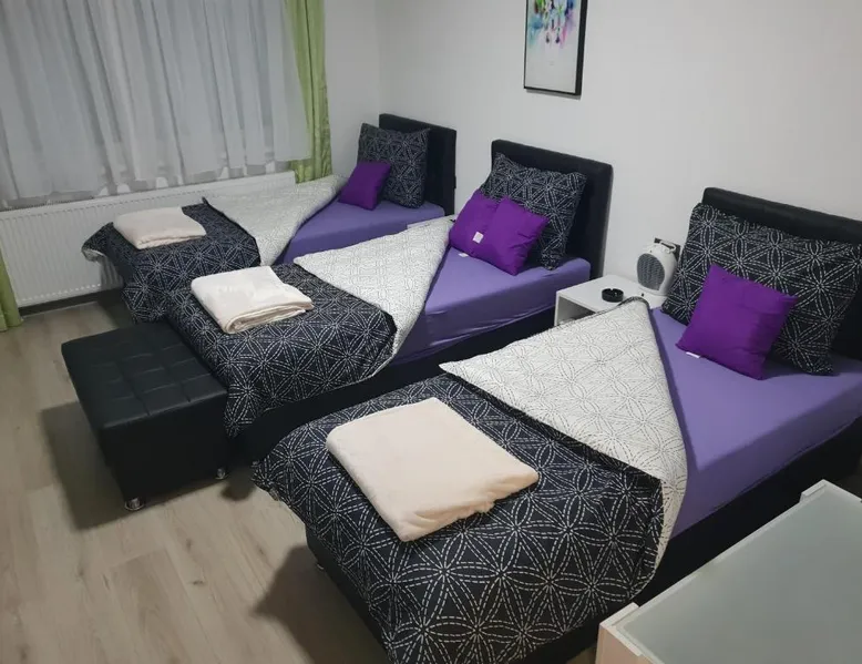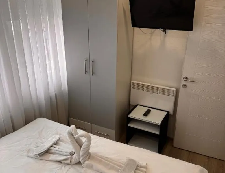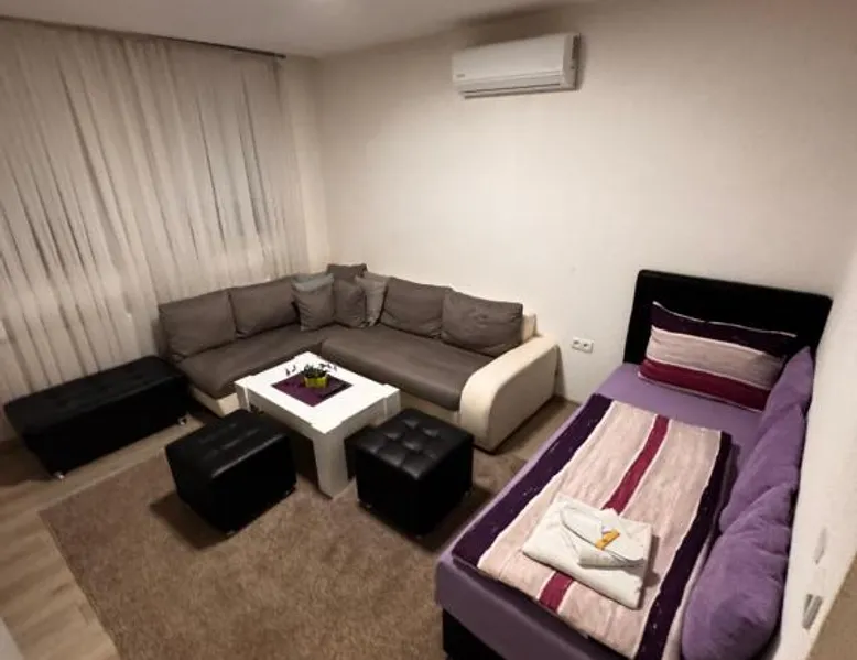 Comfortable Accommodations: Guest House deluxe in Orašje offers a spacious apartment with a private bathroom. The property features air-conditioning, a terrace, balcony, and parquet floors. Modern Amenities: Guests enjoy free WiFi, a shared kitchen, and a 24-hour front desk. Additional amenities include a washing machine, microwave, TV, and soundproofing. Convenient Location: Located on a quiet street, the apartment provides a view of a landmark and city. Free parking is available, and the reception staff speak Bosnian and English. Highly Rated by Guests: Guest House deluxe is highly rated by guests for its comfortable accommodations and excellent service. The unit offers 3 beds.