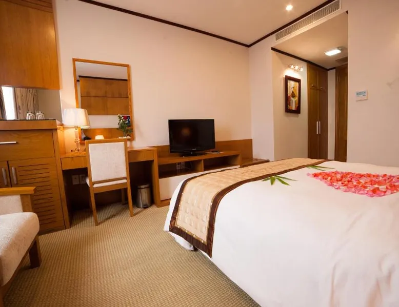 Comfortable Accommodations: Danang Petro Hotel in Da Nang offers family rooms with air-conditioning, private bathrooms, and city views. Each room includes a work desk, mini-bar, and free WiFi. Dining and Services: Guests can enjoy Vietnamese and Asian cuisines at the on-site restaurant, complemented by a child-friendly buffet. The hotel provides massage services, a lounge, and a 24-hour front desk. Prime Location: Located 2.5 mi from Da Nang International Airport, the hotel is near attractions such as Indochina Riverside Mall (less than 0.6 mi) and Cham Museum (1.2 mi). Guests appreciate the convenient location and excellent service. This spacious suite consists of 1 living room, 1 separate bedroom and 1 bathroom with a bath and free toiletries. The air-conditioned suite provides a flat-screen TV with cable channels, soundproof walls, a mini-bar, a seating area as well as city views. The unit offers 2 beds.