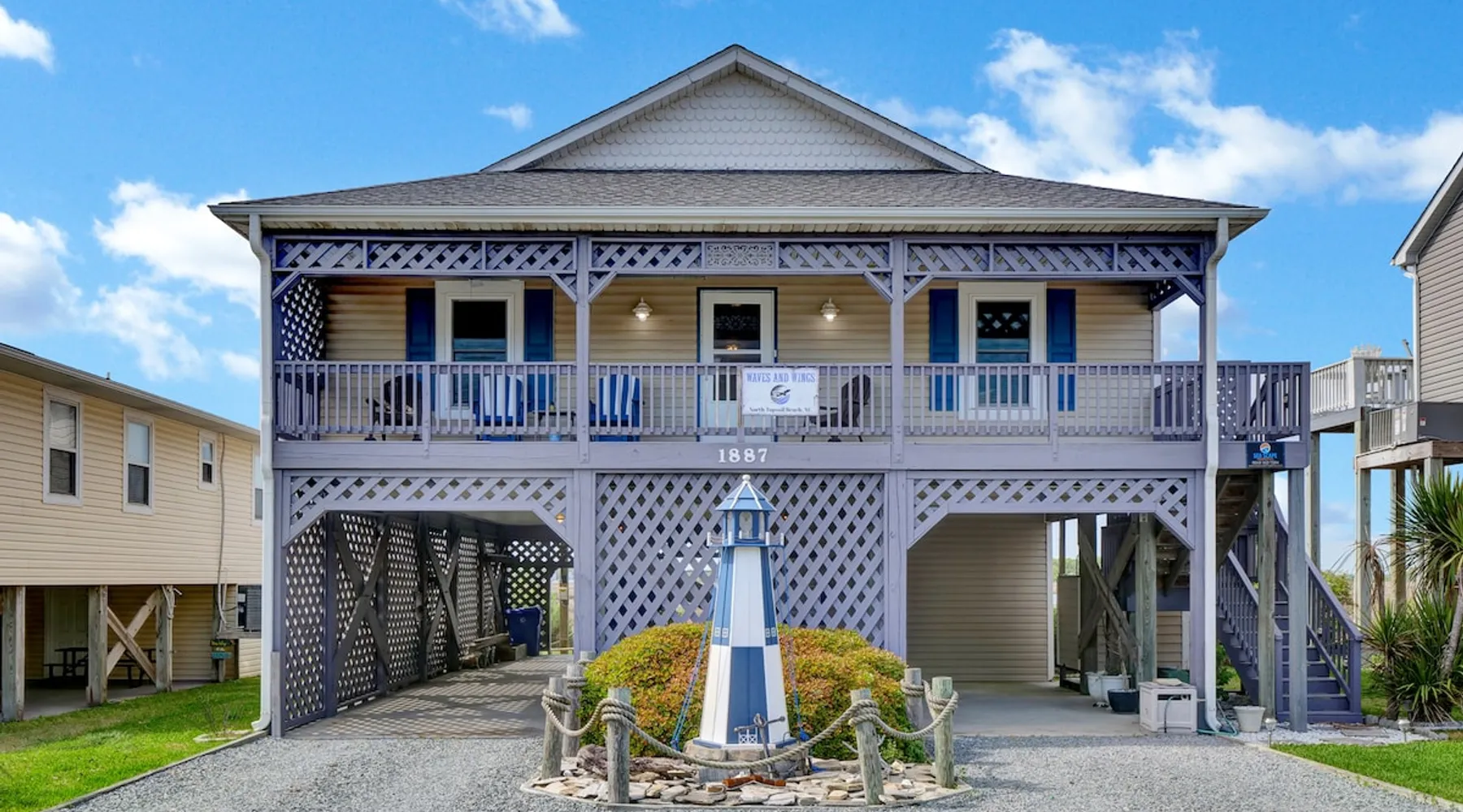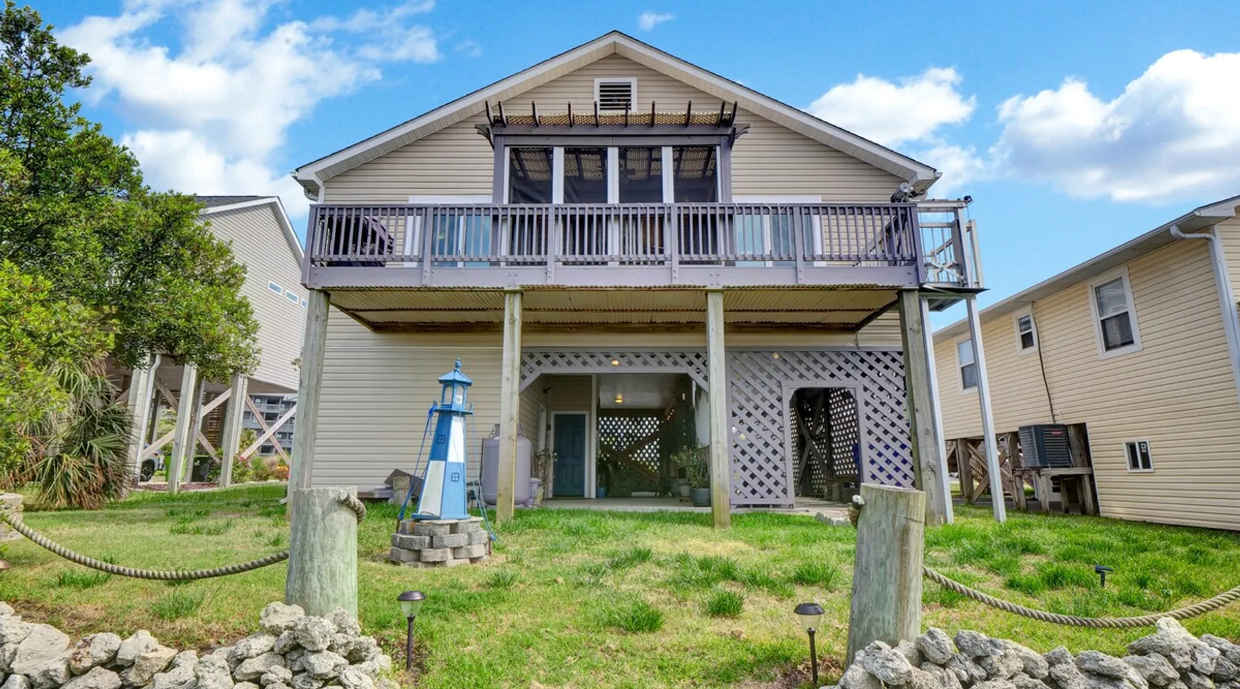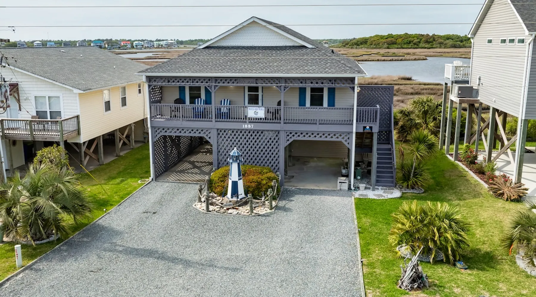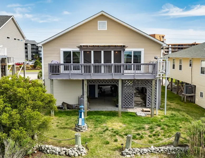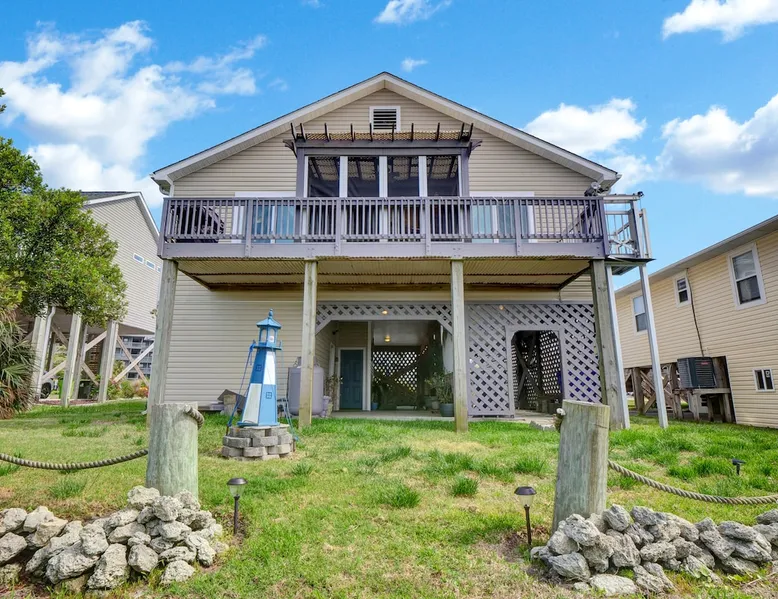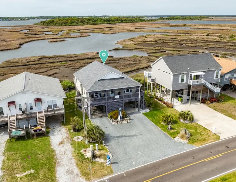 Escape to Waves and Wings, a soundfront beach house in North Topsail Beach that sleeps 6. Enjoy sound access for kayaking and paddleboarding, beach access just steps away, and stunning sound views from the deck. Relax with a grill, outdoor shower, and grocery lift for convenience. Perfect for families and friends seeking a peaceful coastal getaway with water adventures just outside your door. Other things to note Welcome to Waves and Wings, a peaceful soundfront beach house in North Topsail Beach that invites families and friends to slow down, reconnect, and soak in the beauty of the coast. Sleeping up to 6 guests, this relaxing retreat offers the best of both worlds—direct beach access just a short walk away and your very own backyard launch into the tranquil waters of the sound, perfect for kayaking, paddleboarding, or simply watching the tide roll by. Start your days with coffee on the expansive deck as the sun rises over the water, casting golden reflections across the sound. After a day of exploring the beach or paddling through the quiet marshes, rinse off in the outdoor shower and unwind in the shade of the spacious carport. Fire up the grill for a family cookout or enjoy a quiet evening drink as coastal breezes drift through the air. Inside, the single-level layout welcomes you with a breezy, open feel and large windows framing the serene water views. To the right, the primary bedroom offers a cozy escape with a private en-suite bath. To the left, a charming daybed room and additional guest bedroom provide comfortable spaces for kids, couples, or friends. At the back, the living room and kitchen flow together seamlessly—perfect for gathering over meals, board games, or movie nights. The fully equipped kitchen has everything you need to cook up vacation favorites, and the convenient grocery lift makes bringing up supplies a breeze. Downstairs, you’ll find a bonus basement space with an additional fridge and plenty of room to store your beach gear, paddleboards, and more. Whether you're gliding through the sound at sunset, watching herons drift by from the deck, or making memories around the dinner table, Waves and Wings offers a front-row seat to the quiet magic of coastal Carolina. Book your next beach vacation and let Waves and Wings be your home base for adventure, connection, and pure relaxation. Managed by Sea Scape Properties, we ensure your vacation is stress-free and filled with comfort and luxury. From seamless booking to exceptional service, our team is dedicated to making your stay unforgettable. With handpicked properties and a focus on providing the ultimate coastal experience, Sea Scape guarantees a getaway you’ll want to repeat. Reserve your stay today and discover the Sea Scape difference! INCLUDED: WIFI, fully stocked kitchen, paper goods, and ALL linens, including all bedding + bath + beach towels to save you the hassle/cost of renting them separately ($200-300+ value)! When you arrive, beds will be made with crisp, fresh linens and complete sets of fluffy towels will be available. The cargo lift is for items only. If damages occur due to misuse the guest is liable for repair fees** **Grocery lift is currently under repair** You must be 25 years or older to rent this property. All reservations are required to have a signed rental agreement on file that will be emailed to you after booking. Once you've booked your stay, you will have 48 hrs. to complete the rental agreement to confirm your stay. We reserve the right to cancel your booking if the rental agreement is not completed within 48hrs. Booking a vacation rental can be stressful! Our goal is to make the process as easy as possible for our guests and to provide excellent customer service every time. Please contact us with specific requests, and we'll do our best to help!