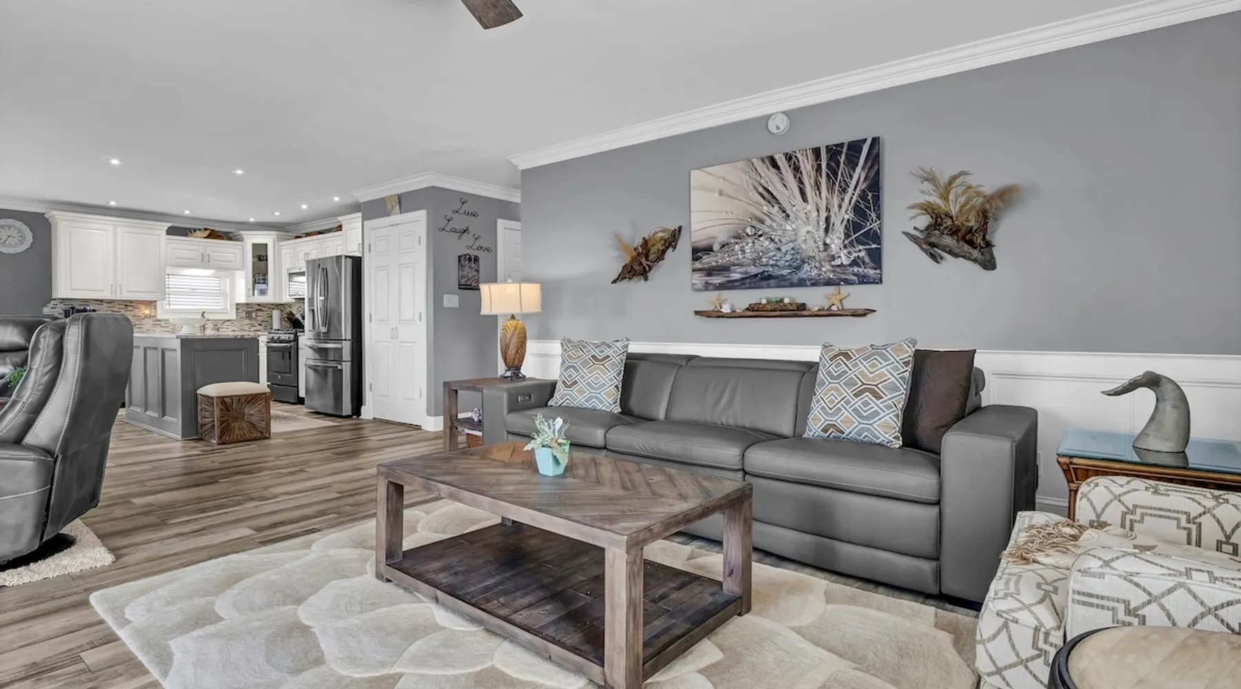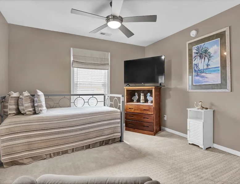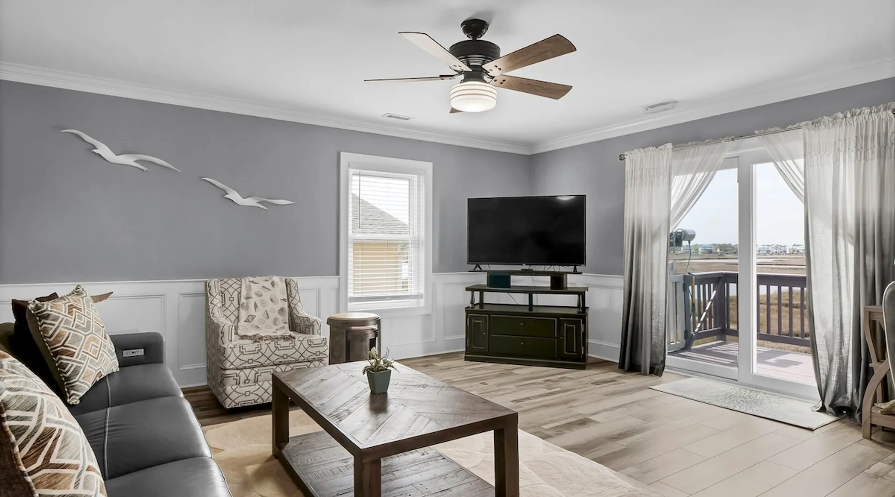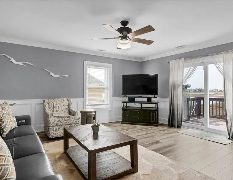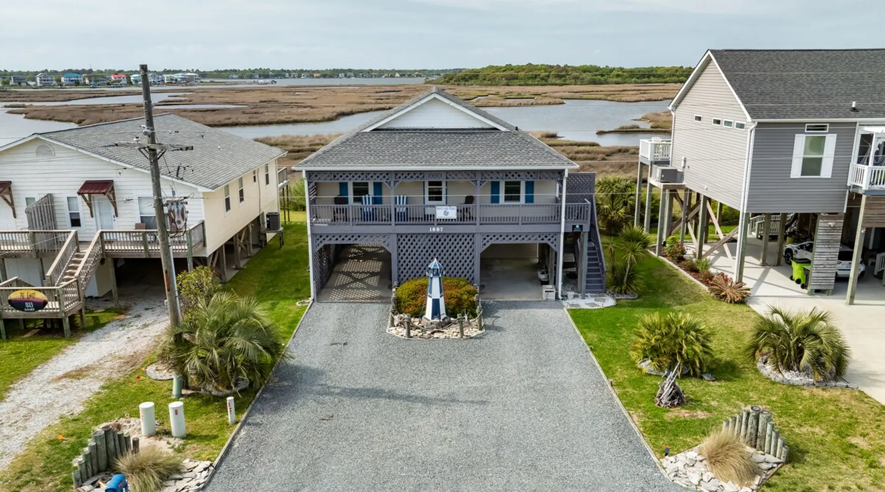 Escape to Waves and Wings, a soundfront beach house in North Topsail Beach that sleeps 6. Enjoy sound access for kayaking and paddleboarding, beach access just steps away, and stunning sound views from the deck. Relax with a grill, outdoor shower, and grocery lift for convenience. Perfect for families and friends seeking a peaceful coastal getaway with water adventures just outside your door. Other things to note Welcome to Waves and Wings, a peaceful soundfront beach house in North Topsail Beach that invites families and friends to slow down, reconnect, and soak in the beauty of the coast. Sleeping up to 6 guests, this relaxing retreat offers the best of both worlds—direct beach access just a short walk away and your very own backyard launch into the tranquil waters of the sound, perfect for kayaking, paddleboarding, or simply watching the tide roll by. Start your days with coffee on the expansive deck as the sun rises over the water, casting golden reflections across the sound. After a day of exploring the beach or paddling through the quiet marshes, rinse off in the outdoor shower and unwind in the shade of the spacious carport. Fire up the grill for a family cookout or enjoy a quiet evening drink as coastal breezes drift through the air. Inside, the single-level layout welcomes you with a breezy, open feel and large windows framing the serene water views. To the right, the primary bedroom offers a cozy escape with a private en-suite bath. To the left, a charming daybed room and additional guest bedroom provide comfortable spaces for kids, couples, or friends. At the back, the living room and kitchen flow together seamlessly—perfect for gathering over meals, board games, or movie nights. The fully equipped kitchen has everything you need to cook up vacation favorites, and the convenient grocery lift makes bringing up supplies a breeze. Downstairs, you’ll find a bonus basement space with an additional fridge and plenty of room to store your beach gear, paddleboards, and more. Whether you're gliding through the sound at sunset, watching herons drift by from the deck, or making memories around the dinner table, Waves and Wings offers a front-row seat to the quiet magic of coastal Carolina. Book your next beach vacation and let Waves and Wings be your home base for adventure, connection, and pure relaxation. Managed by Sea Scape Properties, we ensure your vacation is stress-free and filled with comfort and luxury. From seamless booking to exceptional service, our team is dedicated to making your stay unforgettable. With handpicked properties and a focus on providing the ultimate coastal experience, Sea Scape guarantees a getaway you’ll want to repeat. Reserve your stay today and discover the Sea Scape difference! INCLUDED: WIFI, fully stocked kitchen, paper goods, and ALL linens, including all bedding + bath + beach towels to save you the hassle/cost of renting them separately ($200-300+ value)! When you arrive, beds will be made with crisp, fresh linens and complete sets of fluffy towels will be available. The cargo lift is for items only. If damages occur due to misuse the guest is liable for repair fees** **Grocery lift is currently under repair** You must be 25 years or older to rent this property. All reservations are required to have a signed rental agreement on file that will be emailed to you after booking. Once you've booked your stay, you will have 48 hrs. to complete the rental agreement to confirm your stay. We reserve the right to cancel your booking if the rental agreement is not completed within 48hrs. Booking a vacation rental can be stressful! Our goal is to make the process as easy as possible for our guests and to provide excellent customer service every time. Please contact us with specific requests, and we'll do our best to help!