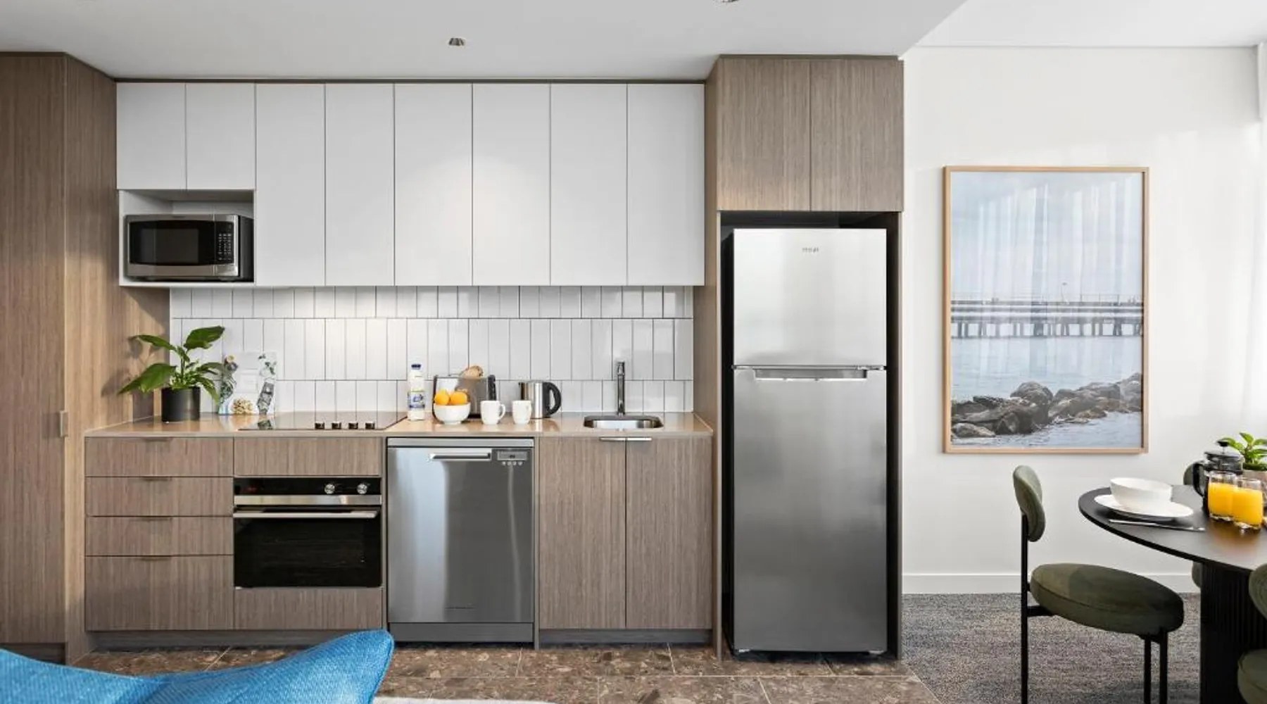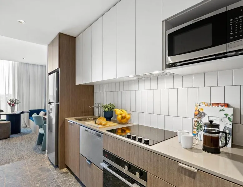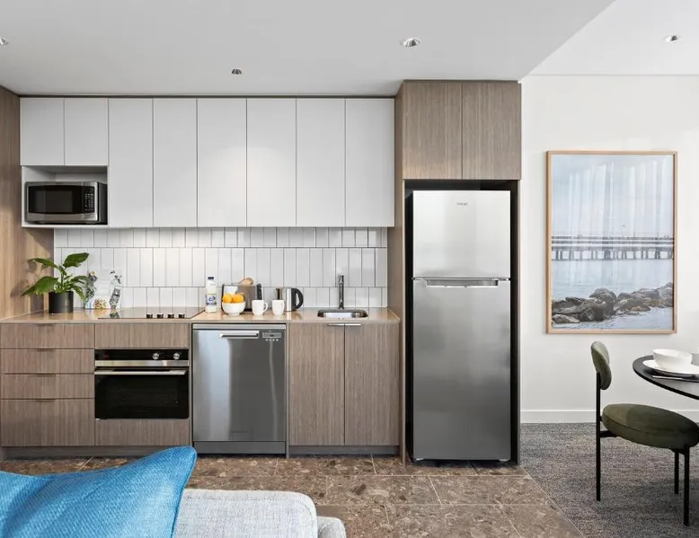 Elegant Accommodations: Quest Woolooware Bay in Woolooware offers a 5-star hotel experience with a sun terrace, lush garden, and free WiFi. Guests enjoy private check-in and check-out, a lounge, and a minimarket. Comfortable Amenities: Rooms feature air-conditioning, private bathrooms, tea and coffee makers, and work desks. Additional amenities include a hairdresser, laundry service, and bike hire. Prime Location: Located 12 mi from Sydney Kingsford Smith Airport, the hotel is near Elouera Beach (1.9 mi) and Royal National Park (14 mi). Nearby attractions include Central Station Sydney and the Australian National Maritime Museum. Exceptional Service: Highly rated for its attentive staff and excellent service support, the hotel provides a convenient location with nearby shops. This spacious apartment comes with 1 living room, 2 separate bedrooms and 2 bathrooms with a walk-in shower and free toiletries. In the well-equipped kitchen, guests will find a stovetop, a refrigerator, a dishwasher and kitchenware. The air-conditioned apartment features a flat-screen TV with streaming services, a washing machine, soundproof walls and a tea and coffee maker. The unit has 2 beds.