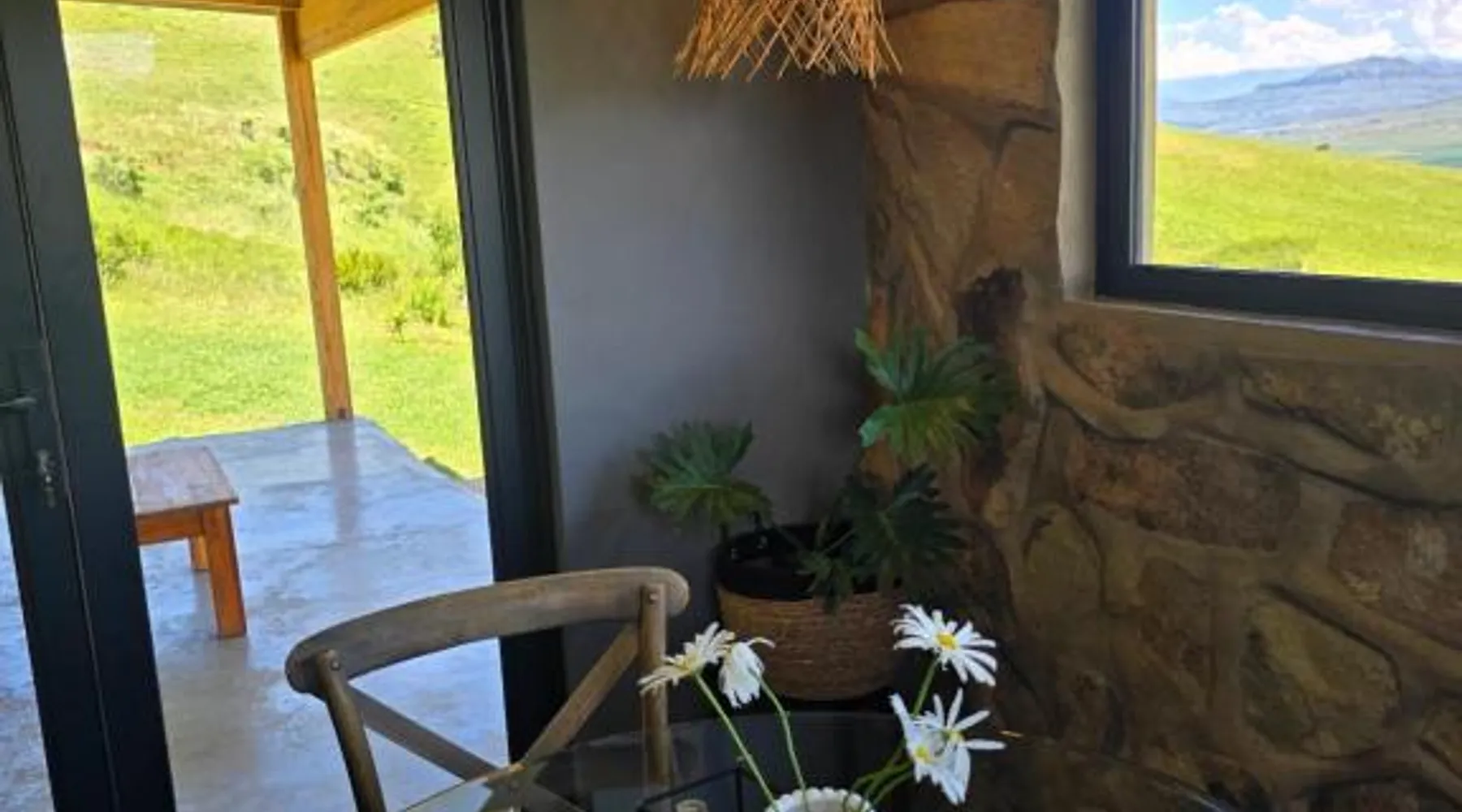 Berghouse and Cottages is located in a rural setting, high up in the Northern Drakensberg Hills, 19 mi from Bergville. Free WiFi is available in each cottage. The cottages offer views of the Drakensberg mountains, a decor style of their own, a patio with a garden, tea-and-coffee-making facilities, and a log fireplace. Booked meals are a set menu. The Royal Natal Park in approx. 9.9 mi from us and has many lovely hiking trails. On-site, we offer hiking, biking trails, horseriding, birding, fishing, and an infinity swimming pool. This chalet's special feature is the fireplace. Featuring a private entrance, this chalet consists of 1 living room, 1 separate bedroom and 1 bathroom with a bath and a shower. Guests will find a stovetop, a refrigerator, kitchenware and a microwave in the fully equipped kitchen. The chalet also offers a barbecue. The chalet features a tea and coffee maker, a seating area, a dining area as well as a terrace with garden views. The unit offers 1 bed.