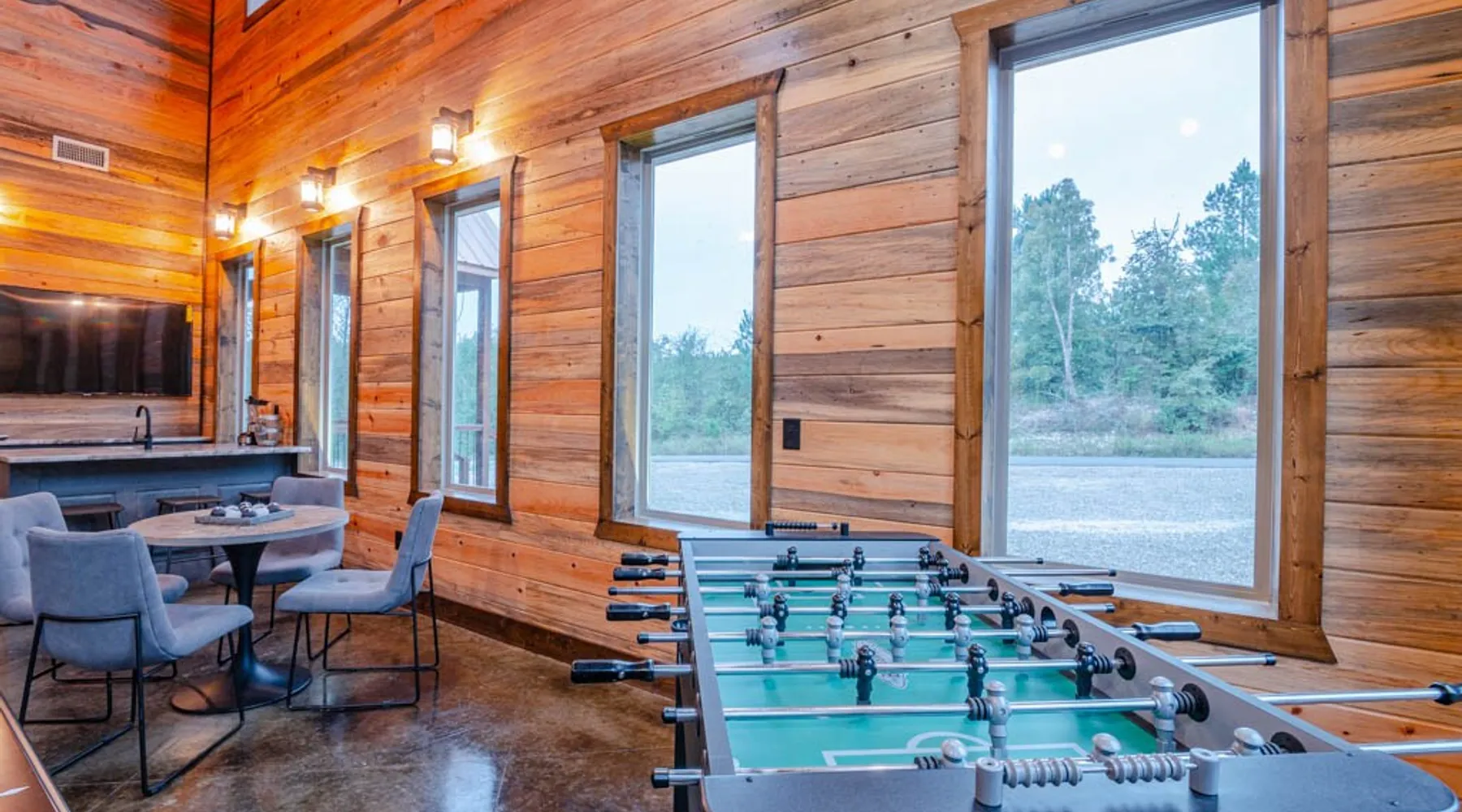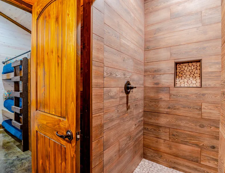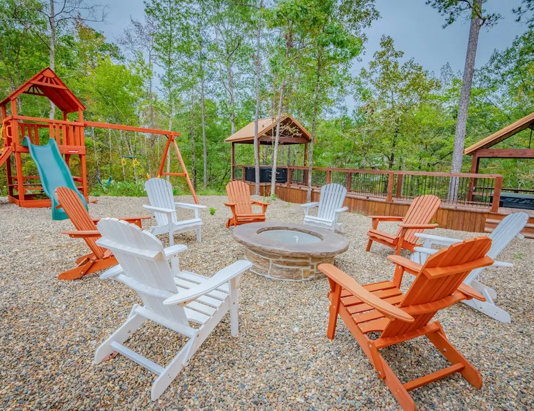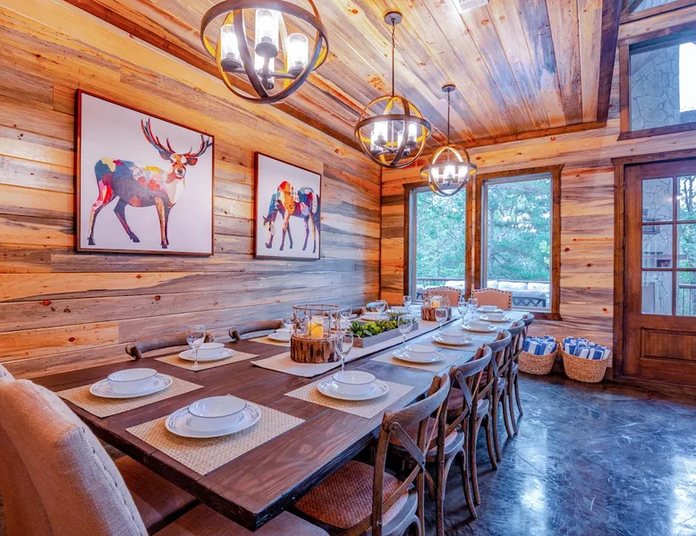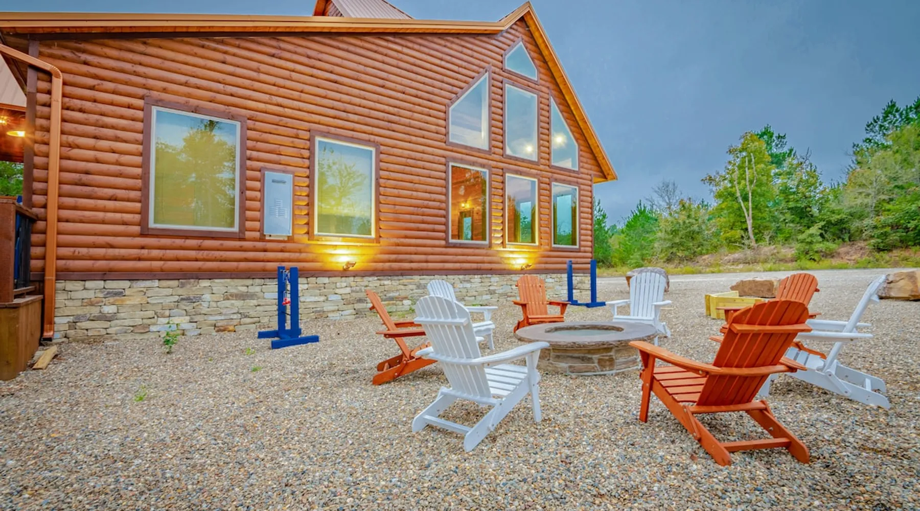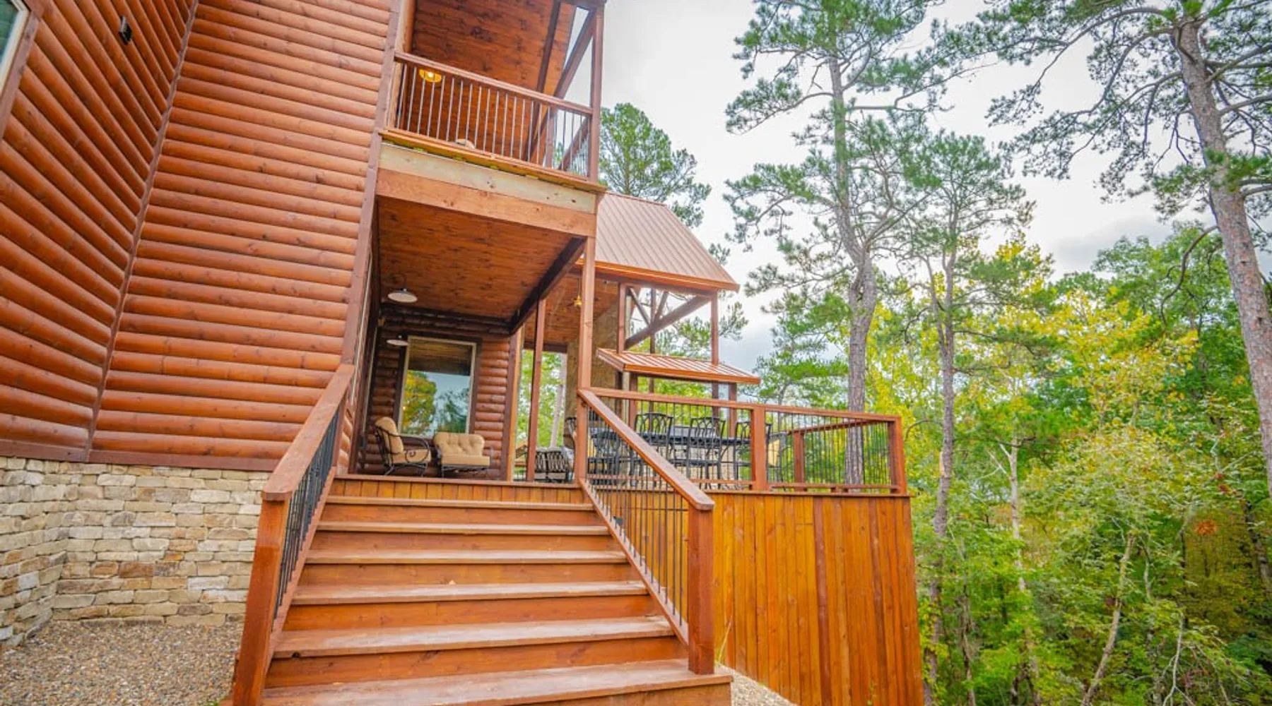 Welcome to Over the Top, a luxurious 6-bedroom, 8-bathroom cabin that sleeps up to 28 guests. Perfect for large families or group getaways, this spacious retreat features a fully stocked chef’s kitchen, a game room with pool and poker tables, two hot tubs, multiple master suites, and a circular drive. Enjoy outdoor dining, a built-in grill, fire pit, playset, and a cozy patio with fireplace and TV. Every detail is designed for comfort, fun, and unforgettable memories in the heart of Hochatown. The space **PET FRIENDLY** - 2 dogs under 50lbs each - $125 per pet - The fee will be bundled into the nightly total Main Living Area Step into a warm and inviting open-concept living room with plush seating for 10, a cozy recliner, a gas fireplace, and a large-screen TV—perfect for movie nights or morning coffee chats. The adjacent dining area comfortably seats 12, while the fully stocked chef’s kitchen boasts everything you need, including a double oven and an industrial-sized refrigerator to keep everyone fed and happy. Bedrooms & Bathrooms Main Level: • Master Suite 1: King bed + twin trundle, patio access, ensuite with double vanity, a spacious walk-in shower, and a deep soaking tub. • Master Suite 2: King bed, suitcase stand, ensuite with double vanity and large walk-in shower. • Bunk/Game Suite: King bed + stacked twin bunks + twin trundle, couch, TV, and ensuite with single vanity and walk-in shower. Upstairs: • Master Suite 3: King bed, ensuite with double vanity and walk-in shower. • Master Suite 4: King bed + twin trundle, ensuite with single vanity and a shower/tub combo. • Master Suite 5: King bed + twin trundle, private patio access, ensuite with double vanity and walk-in shower. All bedrooms come with fresh linens, and every bathroom includes shampoo, conditioner, and body wash. Entertainment Central The game room is an entertainer’s dream: • A wet bar • Ice maker • Pool table • Poker table • Foosball table • Half bathroom for added convenience Perfect for unwinding after a day of outdoor adventure. Outdoor Oasis Step onto the spacious back patio and enjoy: • Three separate dining tables (seating for 6–8 each) • Lounge area with fireplace and TV (seating for 4) • Built-in grill and mini-fridge, hard-lined to the house’s main propane tank • Two hot tubs for ultimate relaxation • A playset for the kiddos • A cozy fire pit with seating for 8—ideal for late-night s’mores under the stars Whether you’re planning a family reunion, friends' getaway, or a corporate retreat, Over the Top lives up to its name—offering over-the-top luxury and fun for everyone. Ready to book your unforgettable stay? Reach out to Bravo Cabin Rentals today! **Firewood Provided** **PET FRIENDLY** - 2 dogs under 50lbs each - $125 per pet General Information – A full-size washer and dryer are available in the laundry closet. Gas fireplaces are seasonally available (October – May 15th). Wi-Fi can be spotty if you are in a rural area. Maximum occupancy for this cabin is 28 guests, with NO EXCEPTIONS. Guest access Entire Cabin Other things to note It is located near all the best restaurants, activities, and park amenities. It is just a short drive to Broken Bow Lake, Beavers Bend State Park, popular hiking trails, restaurants, breweries, wineries, and downtown Hochatown, and access to all the outdoors activities you want – boating, hiking, fly-fishing, kayaking, zip-lining, ATV trails, horseback riding, Cedar Creek Golf Course, Choctaw Landing Casino, mini-golf, helicopter rides, mining for gold, train rides, go-carts, and a great petting zoo. Don’t forget these items when you come to visit: • Rain gear and light jackets (Our average rainfall is 55″-60″ each year). • We have beautiful scenic trails; good hiking boots are a must. • Water shoes for our vast shorelines and streams. • Insect repellent, sunblock, and other first-aid supplies. • Coffee and filters – enjoy this while sitting on the deck in the early morning. • Condiments - A starter supply of coffee/filters, paper towels, toilet paper, bath soap, dish soap, dishwasher tablets, trash bags, and laundry soap is provided. Still, guests may need to bring additional supplies. For your convenience, we can help you arrange: • Special requests (i.e., flowers, wine, etc.) • In-cabin chef recommendations • In-cabin massages recommendations If we are missing something or you have a question we haven't answered, please feel free to reach out to us directly at Bravo Cabin Rentals and we will personally respond as soon as possible. We look forward to making your next vacation in Broken Bow/Hochatown one you won’t forget!