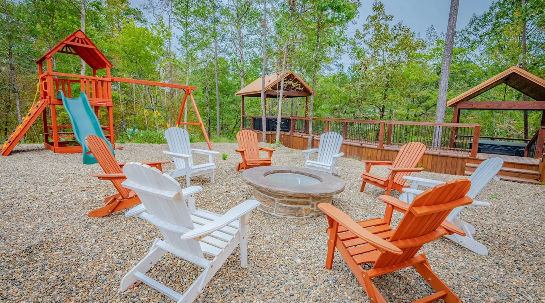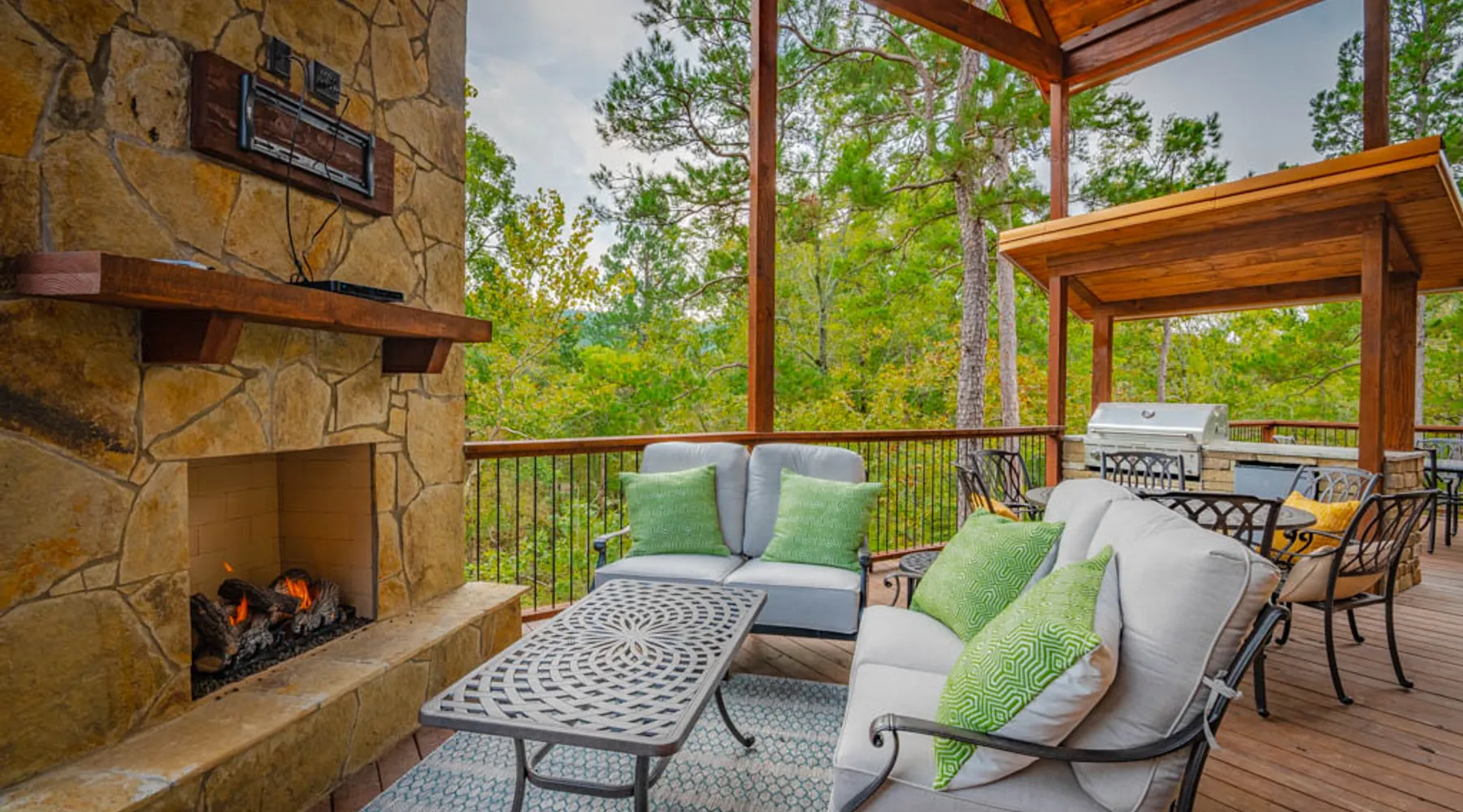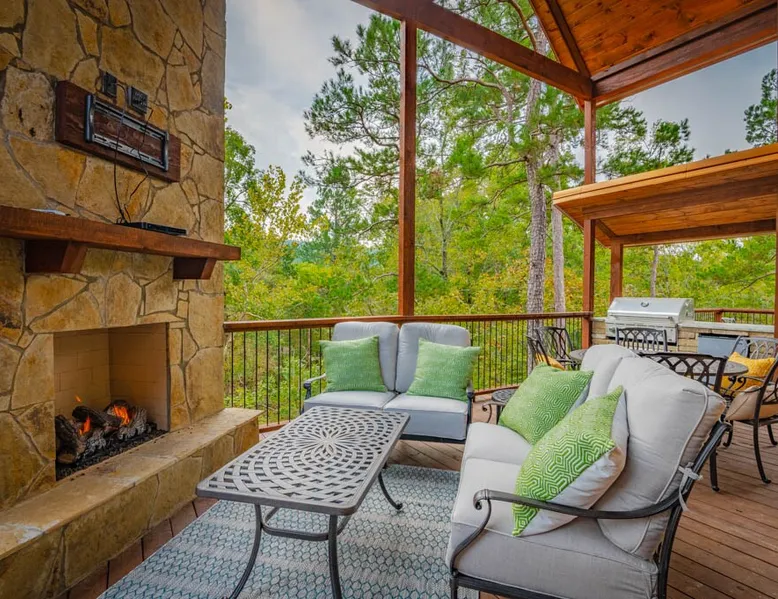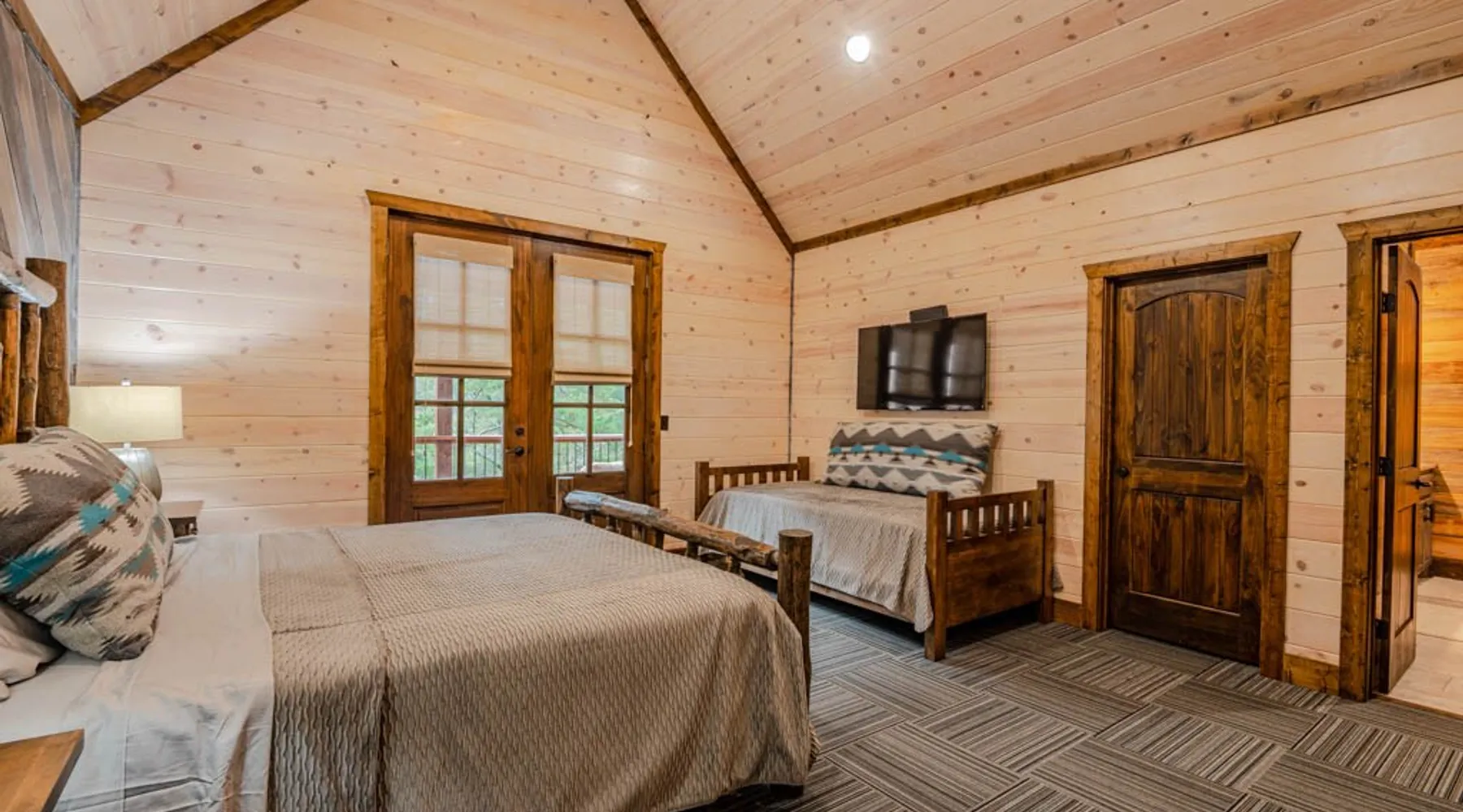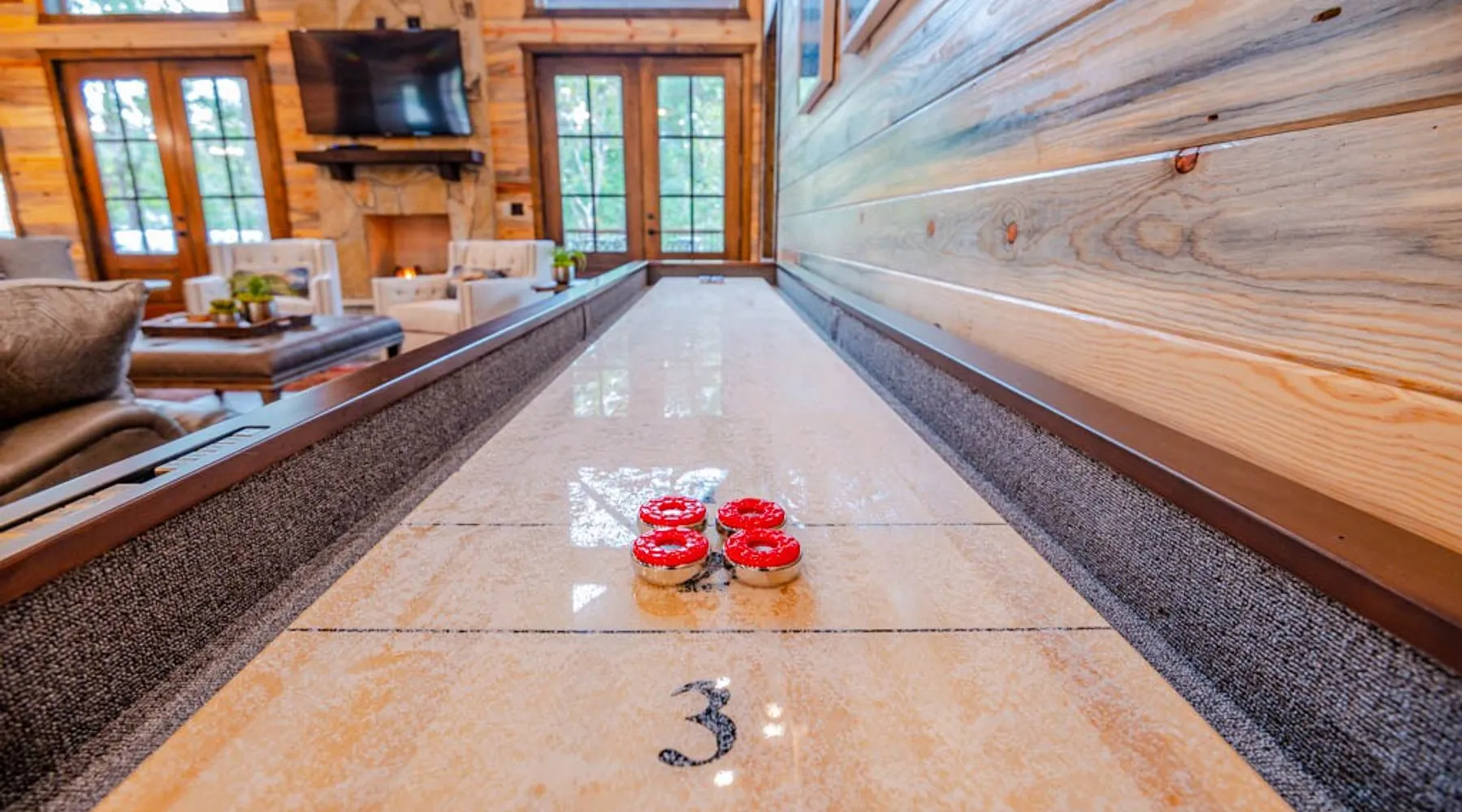 Welcome to Over the Top, a luxurious 6-bedroom, 8-bathroom cabin that sleeps up to 28 guests. Perfect for large families or group getaways, this spacious retreat features a fully stocked chef’s kitchen, a game room with pool and poker tables, two hot tubs, multiple master suites, and a circular drive. Enjoy outdoor dining, a built-in grill, fire pit, playset, and a cozy patio with fireplace and TV. Every detail is designed for comfort, fun, and unforgettable memories in the heart of Hochatown. The space **PET FRIENDLY** - 2 dogs under 50lbs each - $125 per pet - The fee will be bundled into the nightly total Main Living Area Step into a warm and inviting open-concept living room with plush seating for 10, a cozy recliner, a gas fireplace, and a large-screen TV—perfect for movie nights or morning coffee chats. The adjacent dining area comfortably seats 12, while the fully stocked chef’s kitchen boasts everything you need, including a double oven and an industrial-sized refrigerator to keep everyone fed and happy. Bedrooms & Bathrooms Main Level: • Master Suite 1: King bed + twin trundle, patio access, ensuite with double vanity, a spacious walk-in shower, and a deep soaking tub. • Master Suite 2: King bed, suitcase stand, ensuite with double vanity and large walk-in shower. • Bunk/Game Suite: King bed + stacked twin bunks + twin trundle, couch, TV, and ensuite with single vanity and walk-in shower. Upstairs: • Master Suite 3: King bed, ensuite with double vanity and walk-in shower. • Master Suite 4: King bed + twin trundle, ensuite with single vanity and a shower/tub combo. • Master Suite 5: King bed + twin trundle, private patio access, ensuite with double vanity and walk-in shower. All bedrooms come with fresh linens, and every bathroom includes shampoo, conditioner, and body wash. Entertainment Central The game room is an entertainer’s dream: • A wet bar • Ice maker • Pool table • Poker table • Foosball table • Half bathroom for added convenience Perfect for unwinding after a day of outdoor adventure. Outdoor Oasis Step onto the spacious back patio and enjoy: • Three separate dining tables (seating for 6–8 each) • Lounge area with fireplace and TV (seating for 4) • Built-in grill and mini-fridge, hard-lined to the house’s main propane tank • Two hot tubs for ultimate relaxation • A playset for the kiddos • A cozy fire pit with seating for 8—ideal for late-night s’mores under the stars Whether you’re planning a family reunion, friends' getaway, or a corporate retreat, Over the Top lives up to its name—offering over-the-top luxury and fun for everyone. Ready to book your unforgettable stay? Reach out to Bravo Cabin Rentals today! **Firewood Provided** **PET FRIENDLY** - 2 dogs under 50lbs each - $125 per pet General Information – A full-size washer and dryer are available in the laundry closet. Gas fireplaces are seasonally available (October – May 15th). Wi-Fi can be spotty if you are in a rural area. Maximum occupancy for this cabin is 28 guests, with NO EXCEPTIONS. Guest access Entire Cabin Other things to note It is located near all the best restaurants, activities, and park amenities. It is just a short drive to Broken Bow Lake, Beavers Bend State Park, popular hiking trails, restaurants, breweries, wineries, and downtown Hochatown, and access to all the outdoors activities you want – boating, hiking, fly-fishing, kayaking, zip-lining, ATV trails, horseback riding, Cedar Creek Golf Course, Choctaw Landing Casino, mini-golf, helicopter rides, mining for gold, train rides, go-carts, and a great petting zoo. Don’t forget these items when you come to visit: • Rain gear and light jackets (Our average rainfall is 55″-60″ each year). • We have beautiful scenic trails; good hiking boots are a must. • Water shoes for our vast shorelines and streams. • Insect repellent, sunblock, and other first-aid supplies. • Coffee and filters – enjoy this while sitting on the deck in the early morning. • Condiments - A starter supply of coffee/filters, paper towels, toilet paper, bath soap, dish soap, dishwasher tablets, trash bags, and laundry soap is provided. Still, guests may need to bring additional supplies. For your convenience, we can help you arrange: • Special requests (i.e., flowers, wine, etc.) • In-cabin chef recommendations • In-cabin massages recommendations If we are missing something or you have a question we haven't answered, please feel free to reach out to us directly at Bravo Cabin Rentals and we will personally respond as soon as possible. We look forward to making your next vacation in Broken Bow/Hochatown one you won’t forget!