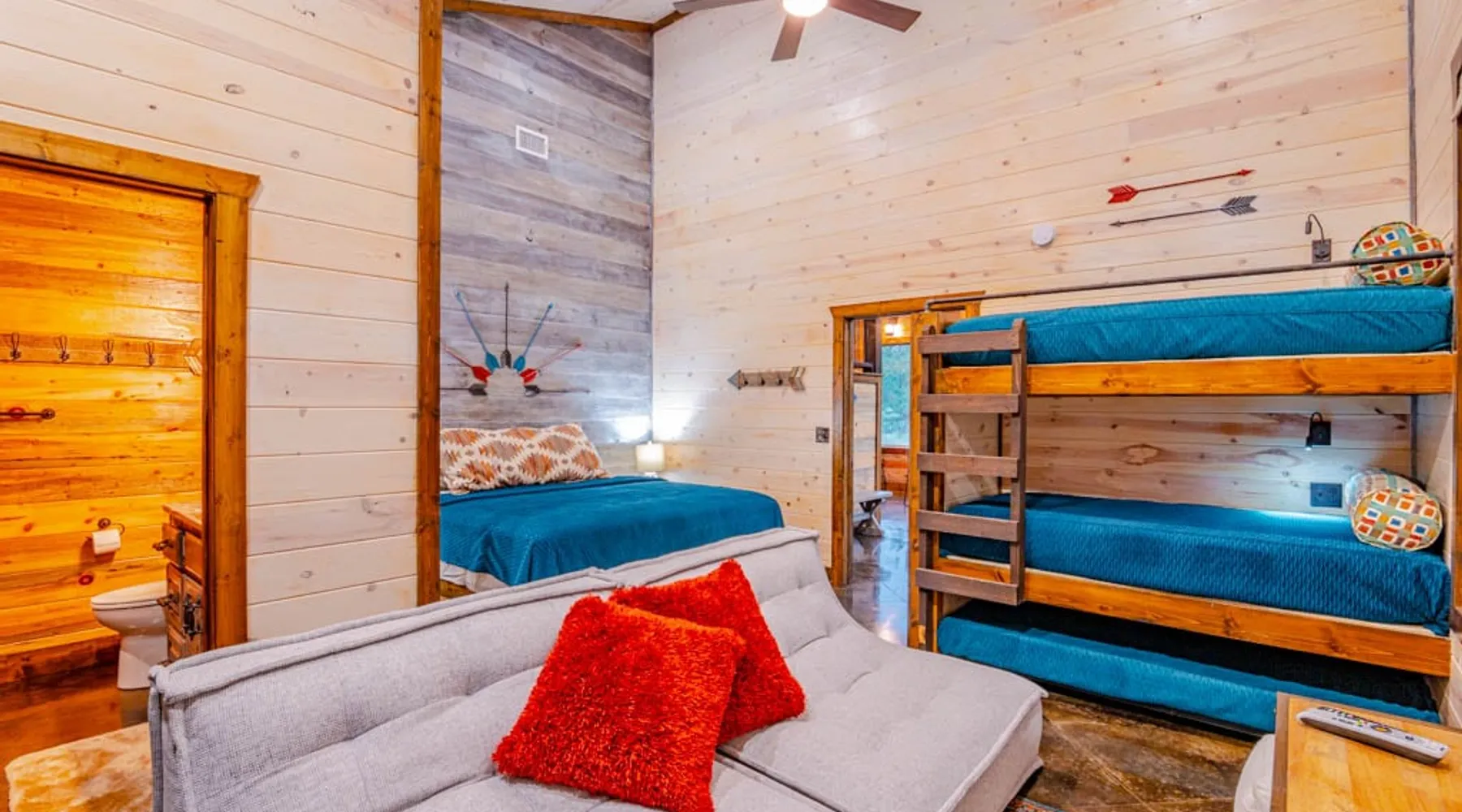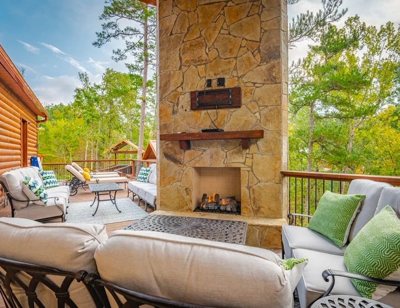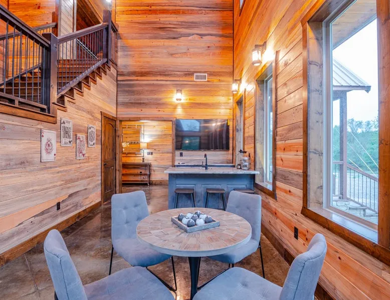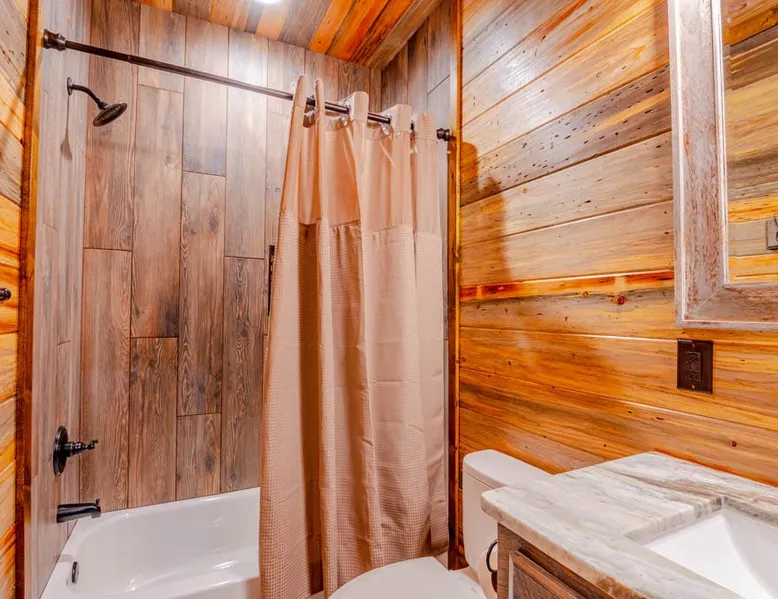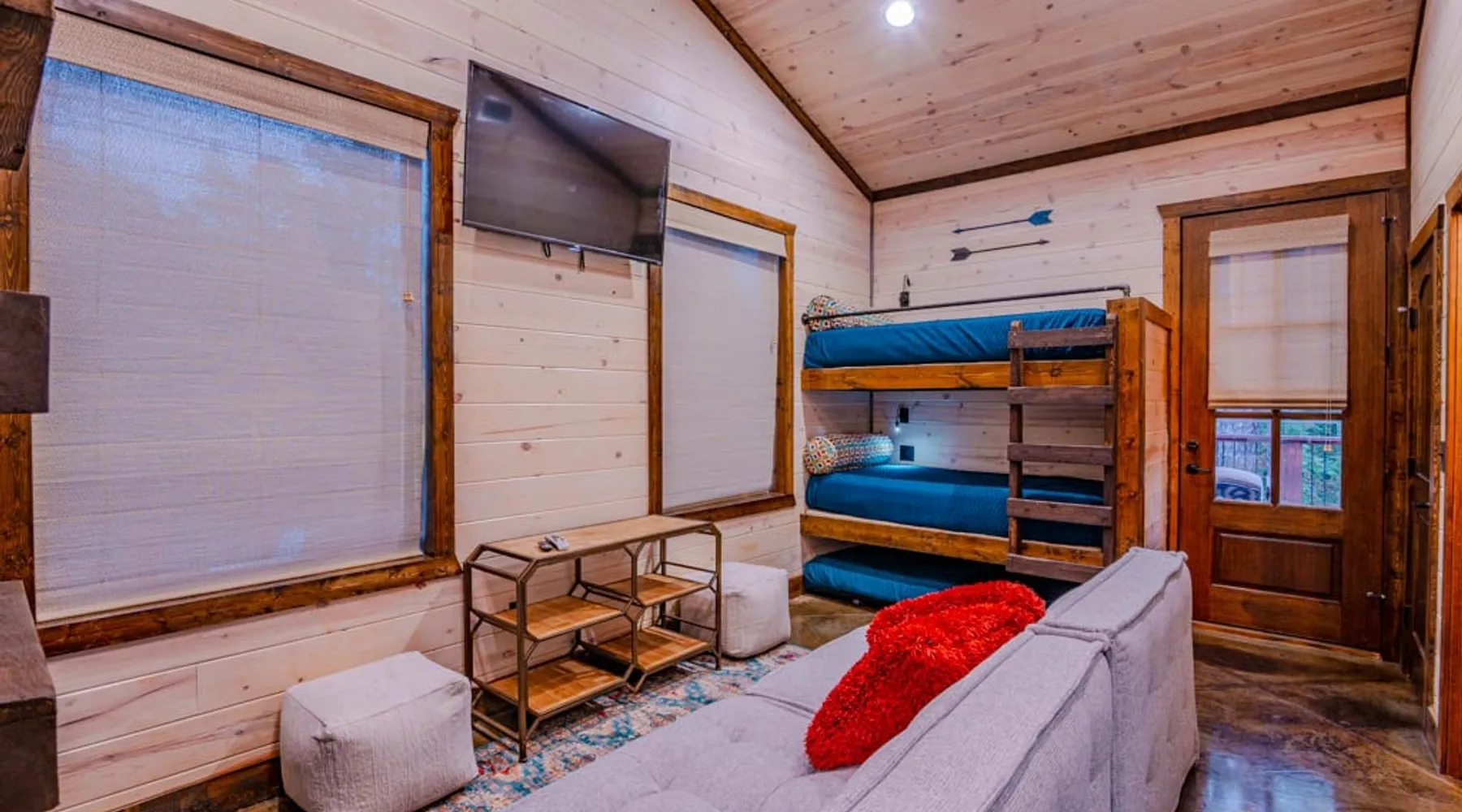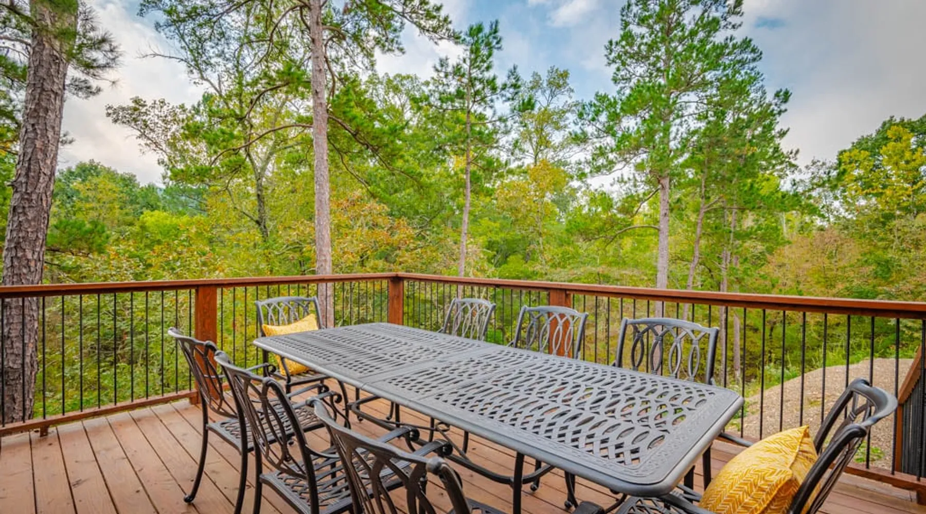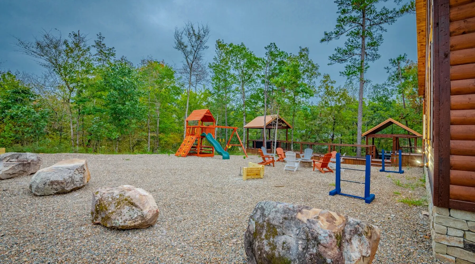 Welcome to Over the Top, a luxurious 6-bedroom, 8-bathroom cabin that sleeps up to 28 guests. Perfect for large families or group getaways, this spacious retreat features a fully stocked chef’s kitchen, a game room with pool and poker tables, two hot tubs, multiple master suites, and a circular drive. Enjoy outdoor dining, a built-in grill, fire pit, playset, and a cozy patio with fireplace and TV. Every detail is designed for comfort, fun, and unforgettable memories in the heart of Hochatown. The space **PET FRIENDLY** - 2 dogs under 50lbs each - $125 per pet - The fee will be bundled into the nightly total Main Living Area Step into a warm and inviting open-concept living room with plush seating for 10, a cozy recliner, a gas fireplace, and a large-screen TV—perfect for movie nights or morning coffee chats. The adjacent dining area comfortably seats 12, while the fully stocked chef’s kitchen boasts everything you need, including a double oven and an industrial-sized refrigerator to keep everyone fed and happy. Bedrooms & Bathrooms Main Level: • Master Suite 1: King bed + twin trundle, patio access, ensuite with double vanity, a spacious walk-in shower, and a deep soaking tub. • Master Suite 2: King bed, suitcase stand, ensuite with double vanity and large walk-in shower. • Bunk/Game Suite: King bed + stacked twin bunks + twin trundle, couch, TV, and ensuite with single vanity and walk-in shower. Upstairs: • Master Suite 3: King bed, ensuite with double vanity and walk-in shower. • Master Suite 4: King bed + twin trundle, ensuite with single vanity and a shower/tub combo. • Master Suite 5: King bed + twin trundle, private patio access, ensuite with double vanity and walk-in shower. All bedrooms come with fresh linens, and every bathroom includes shampoo, conditioner, and body wash. Entertainment Central The game room is an entertainer’s dream: • A wet bar • Ice maker • Pool table • Poker table • Foosball table • Half bathroom for added convenience Perfect for unwinding after a day of outdoor adventure. Outdoor Oasis Step onto the spacious back patio and enjoy: • Three separate dining tables (seating for 6–8 each) • Lounge area with fireplace and TV (seating for 4) • Built-in grill and mini-fridge, hard-lined to the house’s main propane tank • Two hot tubs for ultimate relaxation • A playset for the kiddos • A cozy fire pit with seating for 8—ideal for late-night s’mores under the stars Whether you’re planning a family reunion, friends' getaway, or a corporate retreat, Over the Top lives up to its name—offering over-the-top luxury and fun for everyone. Ready to book your unforgettable stay? Reach out to Bravo Cabin Rentals today! **Firewood Provided** **PET FRIENDLY** - 2 dogs under 50lbs each - $125 per pet General Information – A full-size washer and dryer are available in the laundry closet. Gas fireplaces are seasonally available (October – May 15th). Wi-Fi can be spotty if you are in a rural area. Maximum occupancy for this cabin is 28 guests, with NO EXCEPTIONS. Guest access Entire Cabin Other things to note It is located near all the best restaurants, activities, and park amenities. It is just a short drive to Broken Bow Lake, Beavers Bend State Park, popular hiking trails, restaurants, breweries, wineries, and downtown Hochatown, and access to all the outdoors activities you want – boating, hiking, fly-fishing, kayaking, zip-lining, ATV trails, horseback riding, Cedar Creek Golf Course, Choctaw Landing Casino, mini-golf, helicopter rides, mining for gold, train rides, go-carts, and a great petting zoo. Don’t forget these items when you come to visit: • Rain gear and light jackets (Our average rainfall is 55″-60″ each year). • We have beautiful scenic trails; good hiking boots are a must. • Water shoes for our vast shorelines and streams. • Insect repellent, sunblock, and other first-aid supplies. • Coffee and filters – enjoy this while sitting on the deck in the early morning. • Condiments - A starter supply of coffee/filters, paper towels, toilet paper, bath soap, dish soap, dishwasher tablets, trash bags, and laundry soap is provided. Still, guests may need to bring additional supplies. For your convenience, we can help you arrange: • Special requests (i.e., flowers, wine, etc.) • In-cabin chef recommendations • In-cabin massages recommendations If we are missing something or you have a question we haven't answered, please feel free to reach out to us directly at Bravo Cabin Rentals and we will personally respond as soon as possible. We look forward to making your next vacation in Broken Bow/Hochatown one you won’t forget!