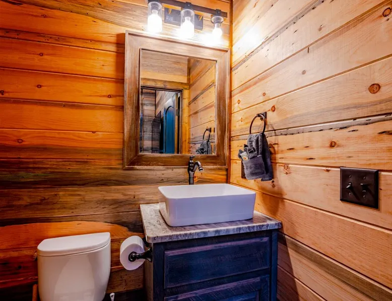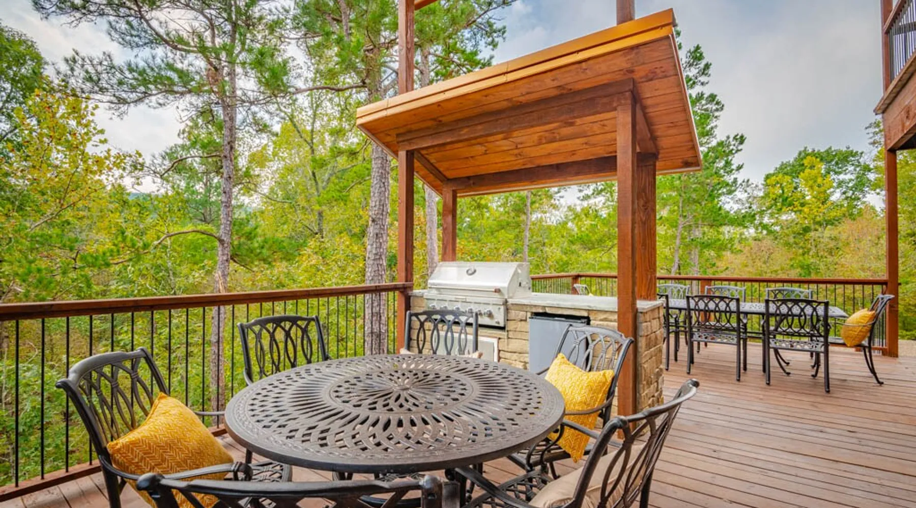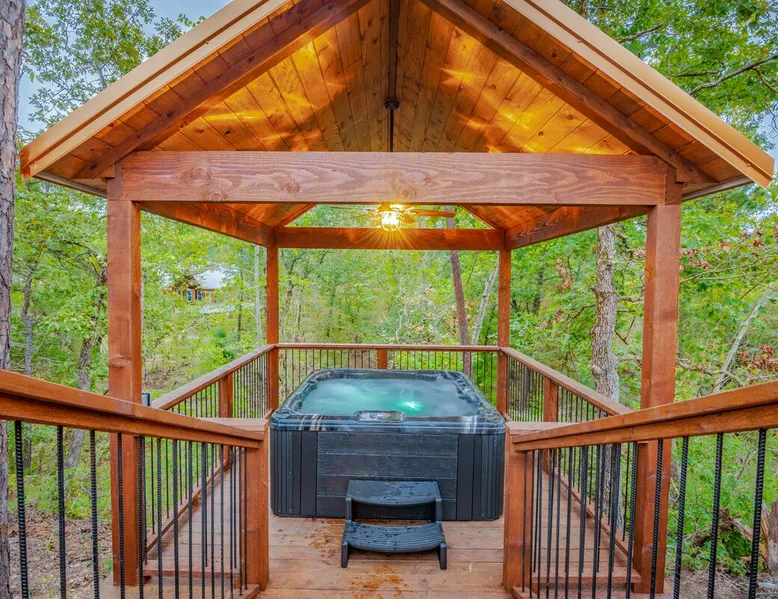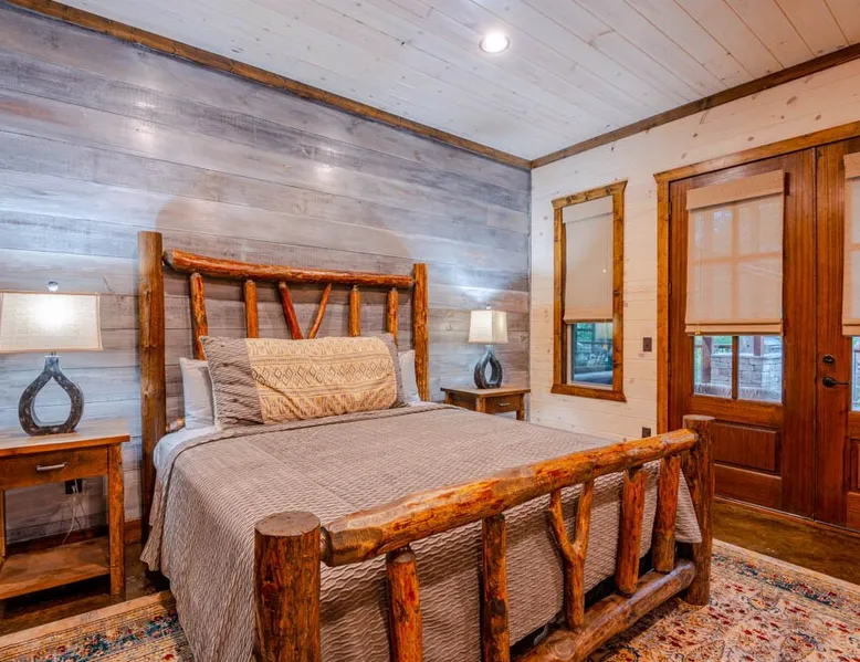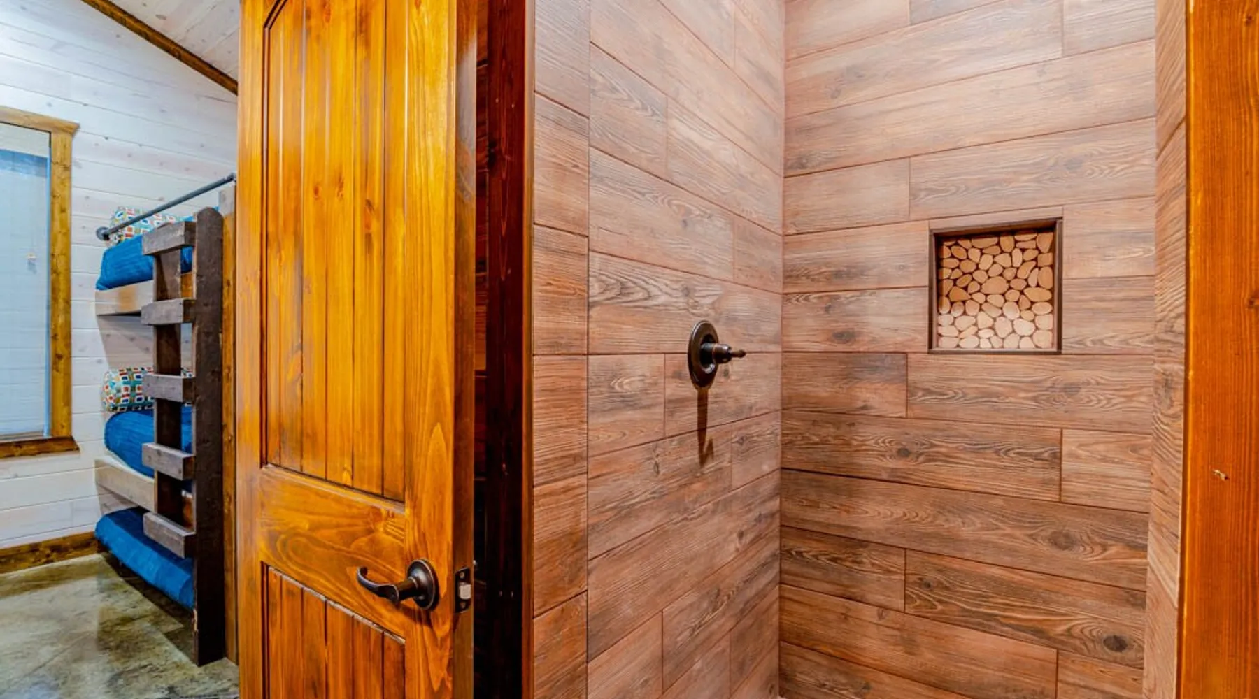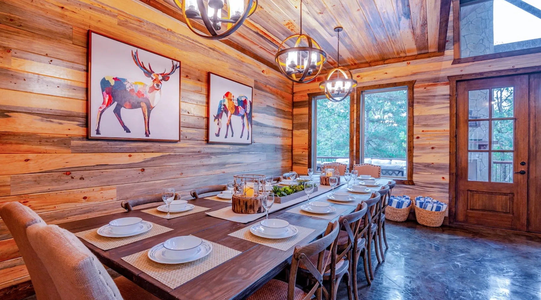 Welcome to Over the Top, a luxurious 6-bedroom, 8-bathroom cabin that sleeps up to 28 guests. Perfect for large families or group getaways, this spacious retreat features a fully stocked chef’s kitchen, a game room with pool and poker tables, two hot tubs, multiple master suites, and a circular drive. Enjoy outdoor dining, a built-in grill, fire pit, playset, and a cozy patio with fireplace and TV. Every detail is designed for comfort, fun, and unforgettable memories in the heart of Hochatown. The space **PET FRIENDLY** - 2 dogs under 50lbs each - $125 per pet - The fee will be bundled into the nightly total Main Living Area Step into a warm and inviting open-concept living room with plush seating for 10, a cozy recliner, a gas fireplace, and a large-screen TV—perfect for movie nights or morning coffee chats. The adjacent dining area comfortably seats 12, while the fully stocked chef’s kitchen boasts everything you need, including a double oven and an industrial-sized refrigerator to keep everyone fed and happy. Bedrooms & Bathrooms Main Level: • Master Suite 1: King bed + twin trundle, patio access, ensuite with double vanity, a spacious walk-in shower, and a deep soaking tub. • Master Suite 2: King bed, suitcase stand, ensuite with double vanity and large walk-in shower. • Bunk/Game Suite: King bed + stacked twin bunks + twin trundle, couch, TV, and ensuite with single vanity and walk-in shower. Upstairs: • Master Suite 3: King bed, ensuite with double vanity and walk-in shower. • Master Suite 4: King bed + twin trundle, ensuite with single vanity and a shower/tub combo. • Master Suite 5: King bed + twin trundle, private patio access, ensuite with double vanity and walk-in shower. All bedrooms come with fresh linens, and every bathroom includes shampoo, conditioner, and body wash. Entertainment Central The game room is an entertainer’s dream: • A wet bar • Ice maker • Pool table • Poker table • Foosball table • Half bathroom for added convenience Perfect for unwinding after a day of outdoor adventure. Outdoor Oasis Step onto the spacious back patio and enjoy: • Three separate dining tables (seating for 6–8 each) • Lounge area with fireplace and TV (seating for 4) • Built-in grill and mini-fridge, hard-lined to the house’s main propane tank • Two hot tubs for ultimate relaxation • A playset for the kiddos • A cozy fire pit with seating for 8—ideal for late-night s’mores under the stars Whether you’re planning a family reunion, friends' getaway, or a corporate retreat, Over the Top lives up to its name—offering over-the-top luxury and fun for everyone. Ready to book your unforgettable stay? Reach out to Bravo Cabin Rentals today! **Firewood Provided** **PET FRIENDLY** - 2 dogs under 50lbs each - $125 per pet General Information – A full-size washer and dryer are available in the laundry closet. Gas fireplaces are seasonally available (October – May 15th). Wi-Fi can be spotty if you are in a rural area. Maximum occupancy for this cabin is 28 guests, with NO EXCEPTIONS. Guest access Entire Cabin Other things to note It is located near all the best restaurants, activities, and park amenities. It is just a short drive to Broken Bow Lake, Beavers Bend State Park, popular hiking trails, restaurants, breweries, wineries, and downtown Hochatown, and access to all the outdoors activities you want – boating, hiking, fly-fishing, kayaking, zip-lining, ATV trails, horseback riding, Cedar Creek Golf Course, Choctaw Landing Casino, mini-golf, helicopter rides, mining for gold, train rides, go-carts, and a great petting zoo. Don’t forget these items when you come to visit: • Rain gear and light jackets (Our average rainfall is 55″-60″ each year). • We have beautiful scenic trails; good hiking boots are a must. • Water shoes for our vast shorelines and streams. • Insect repellent, sunblock, and other first-aid supplies. • Coffee and filters – enjoy this while sitting on the deck in the early morning. • Condiments - A starter supply of coffee/filters, paper towels, toilet paper, bath soap, dish soap, dishwasher tablets, trash bags, and laundry soap is provided. Still, guests may need to bring additional supplies. For your convenience, we can help you arrange: • Special requests (i.e., flowers, wine, etc.) • In-cabin chef recommendations • In-cabin massages recommendations If we are missing something or you have a question we haven't answered, please feel free to reach out to us directly at Bravo Cabin Rentals and we will personally respond as soon as possible. We look forward to making your next vacation in Broken Bow/Hochatown one you won’t forget!