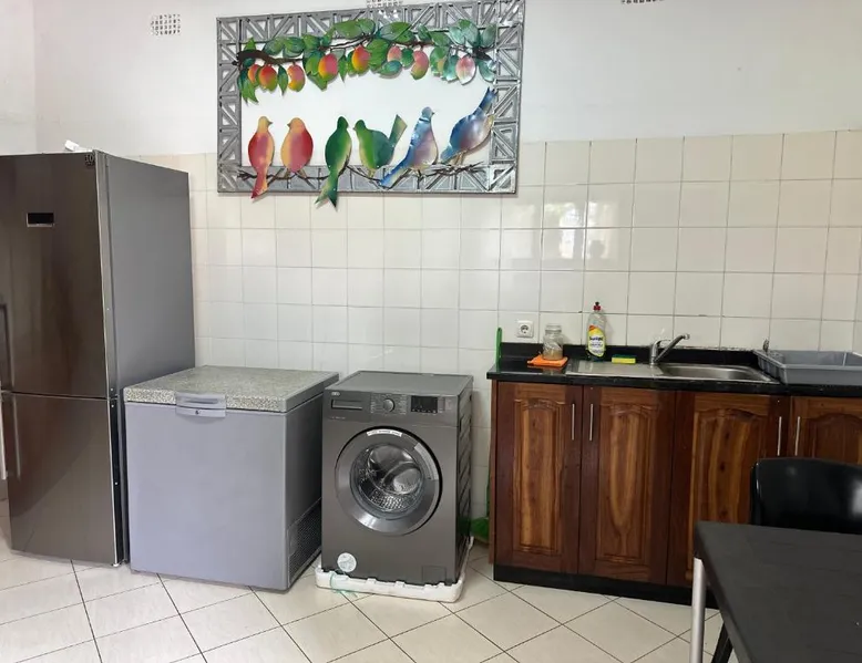 Elegant Accommodations: KVS Ponta do Ouro Moçambique in Ponta do Ouro offers a holiday home with four bedrooms and four bathrooms. The property features a private garden and a year-round outdoor swimming pool. Comfortable Amenities: Guests enjoy air-conditioning, a fully equipped kitchen, balcony with garden views, and a washing machine. Additional facilities include a lounge, outdoor fireplace, pool bar, and free on-site private parking. Prime Location: Located less than 0.6 mi from Ponta do Ouro Beach and 76 mi from Maputo International Airport, the property is near Kosi Bay Nature Reserve (21 mi) and Ponta do Ouro Beach. Highly rated by guests. The private pool is the standout feature of this holiday home. The fully equipped kitchen has a refrigerator, an oven and a microwave. The air-conditioned holiday home features a flat-screen TV, a washing machine, a seating area, a barbecue as well as garden views. The unit has 6 beds.