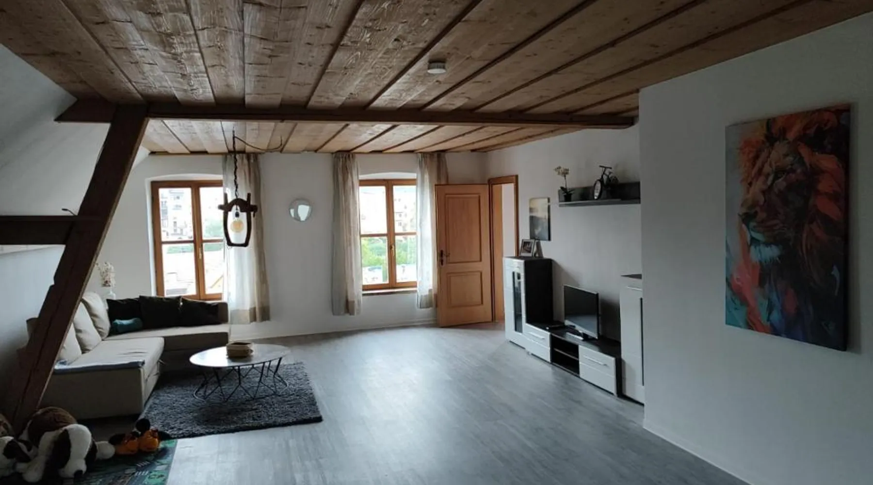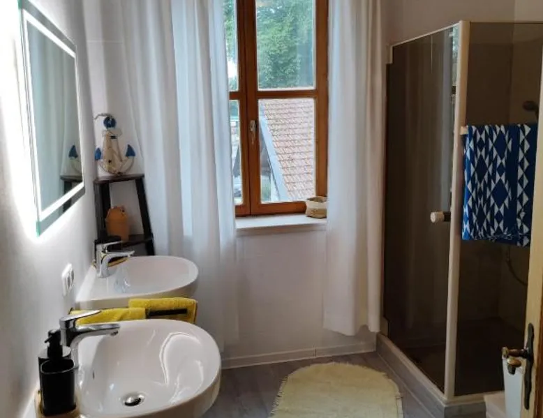 Spacious Accommodations: Ferienwohnung Bruckmühle in Wasserburg am Inn offers a spacious apartment with three bedrooms and a living room. The property includes a fully equipped kitchen, washing machine, and free WiFi. Modern Amenities: Guests enjoy a elevator, family rooms, and free on-site private parking. The apartment features a dining table, sofa bed, TV, and a view of a landmark. Additional amenities include a coffee machine, dishwasher, and wardrobe. Convenient Location: Located 37 mi from Munich Airport and 19 mi from Herrenchiemsee, the apartment provides easy access to local attractions. Reception staff speak German and English. Highly rated by guests. This spacious apartment consists of 1 living room, 3 separate bedrooms and 1 bathroom with a bath and a shower. Meals can be prepared in the kitchen, which comes with a stovetop, a refrigerator, a dishwasher and an oven. The apartment provides a washing machine, a coffee machine, a wardrobe, a game console, as well as a flat-screen TV. The unit offers 4 beds.