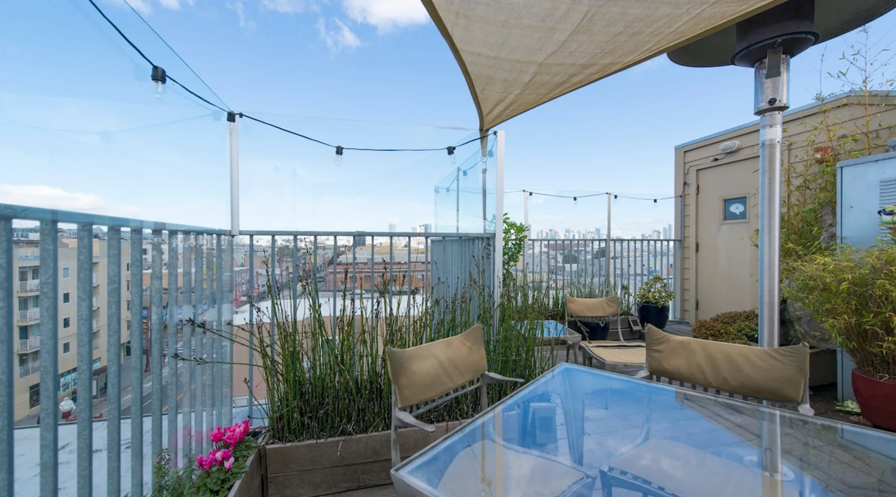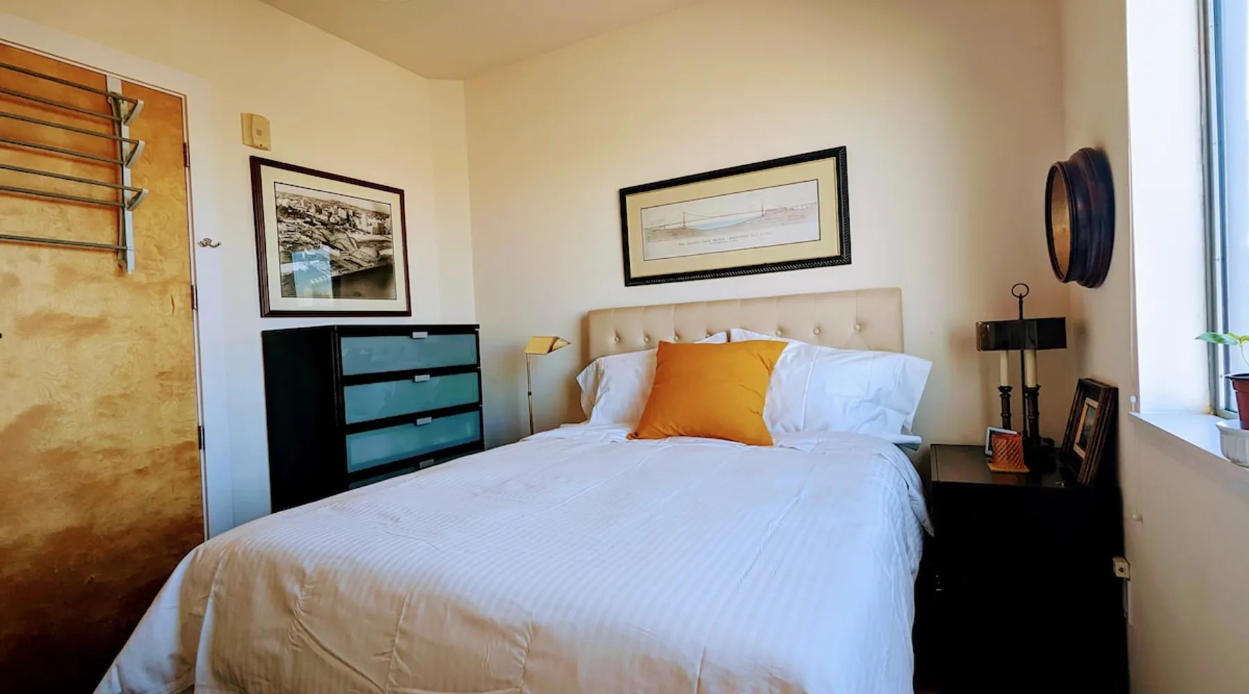 100 sq ft bedroom with very comfortable FULL size bed(134.5cmX190.5cm), separate large closet, large window city view from the room, and a shared with host full bathroom. Get anywhere in the city in minutes by under-ground BART, car, bus, and bicycle. I have bicycle storage on site should you have your own bike. The space LGTBQIA2S+BT and World friendly. Non smoking property. Beautiful new Modern style penthouse, 3 bedrooms with 2 full bathrooms, flat in the heart of San Francisco's Mission District, the sunniest part of San Francisco. Fourth floor walk up with panoramic views in all directions. Private roof garden/terrace. Self serve Continental Breakfast of your liking offered each morning. Restaurants everywhere; Across the street is Mission Chinese, Ramenwell, Prebachu, Yamo and Taqueria Cancun, all on our same block. Tartine Bakery 2 blocks away. 97% Walk-ability! Delores Park 3 blocks. Bicycle rentals around the corner. Buses at the corner 25 yards away. Travel here from Airport on the BART train and walk 2 blocks. Arguably the best located flat in the Mission with the best views. Guest access All common areas of the house, living, dining, terrace and kitchen. During your stay As much as feels right but mostly much. Other things to note I also offer a "master bedroom with in-room bath" available as well to qualified Airbnb guests. airbnb.com/h/book-here Registration Details STR-0000277
