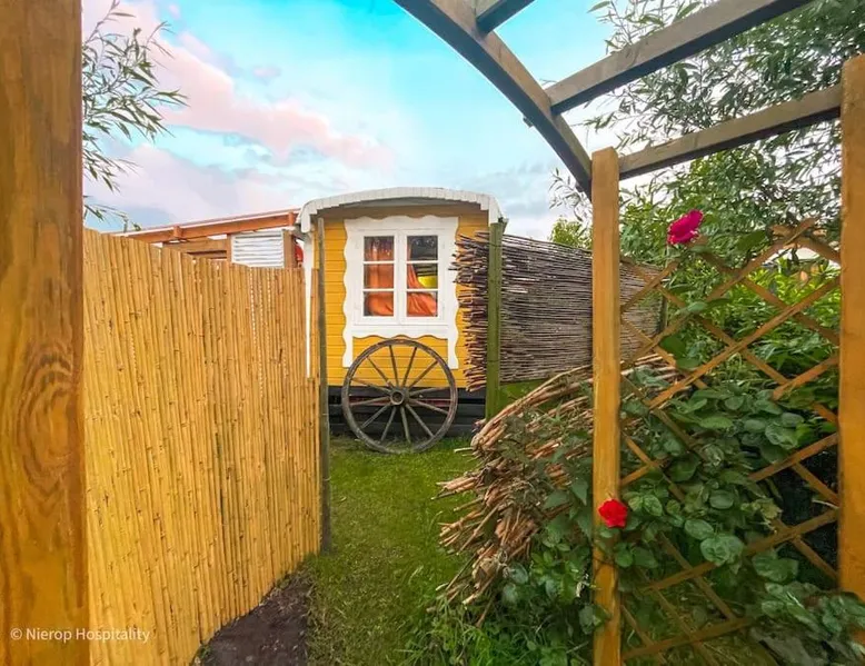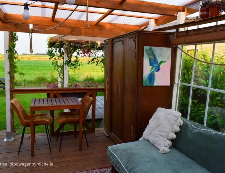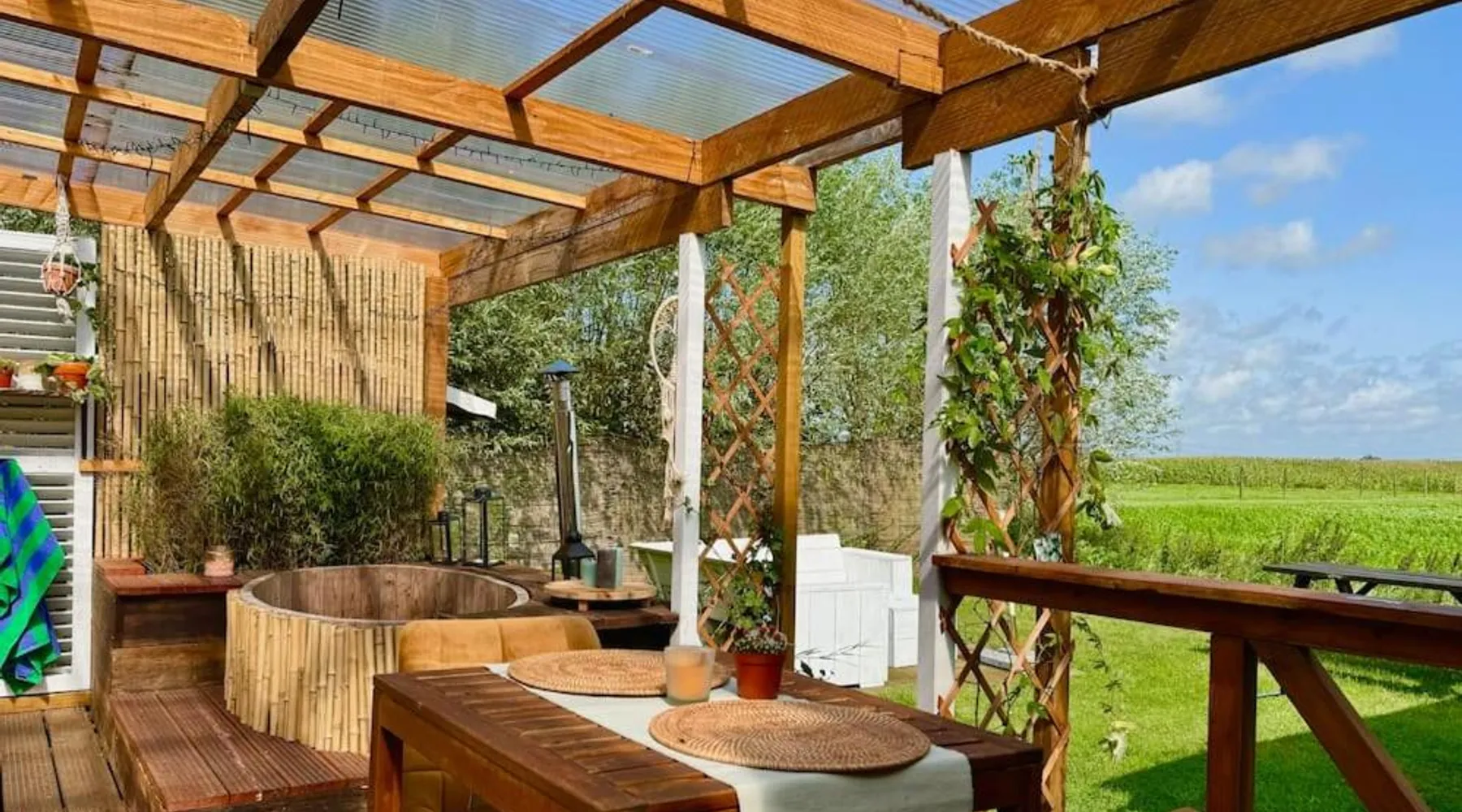 Winterharde pipowagen met hottub, bbq & uitzicht