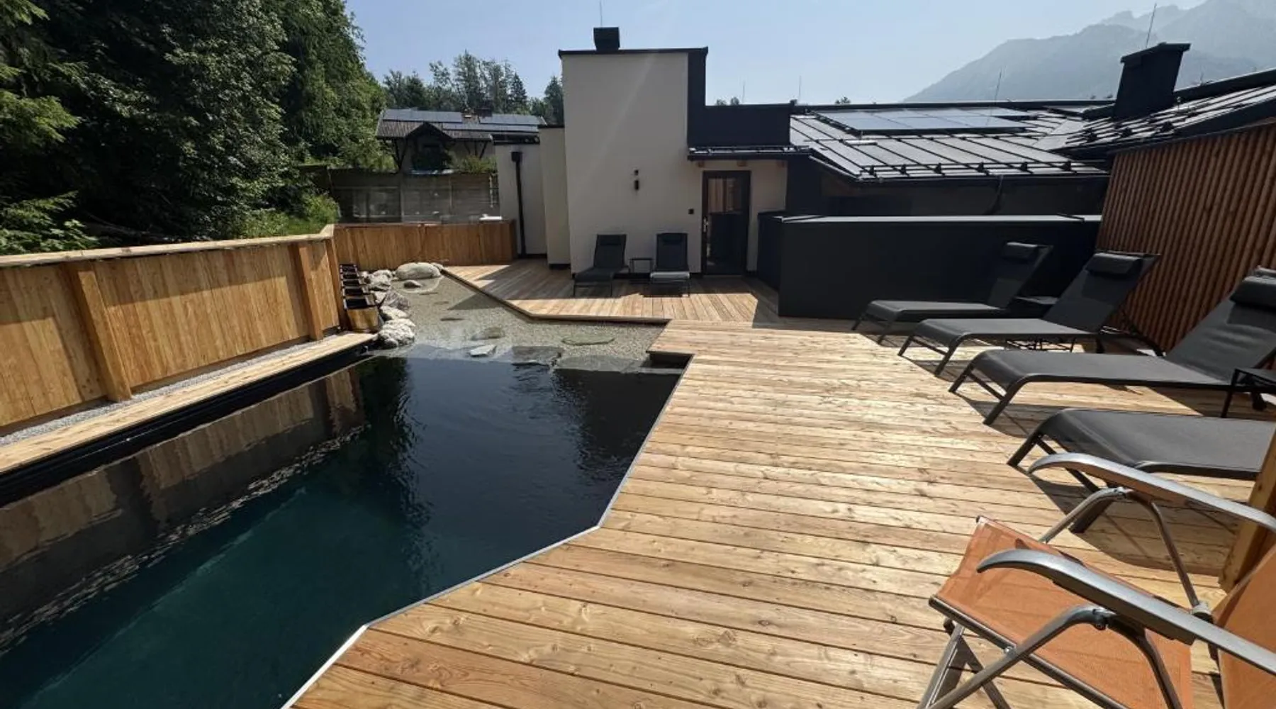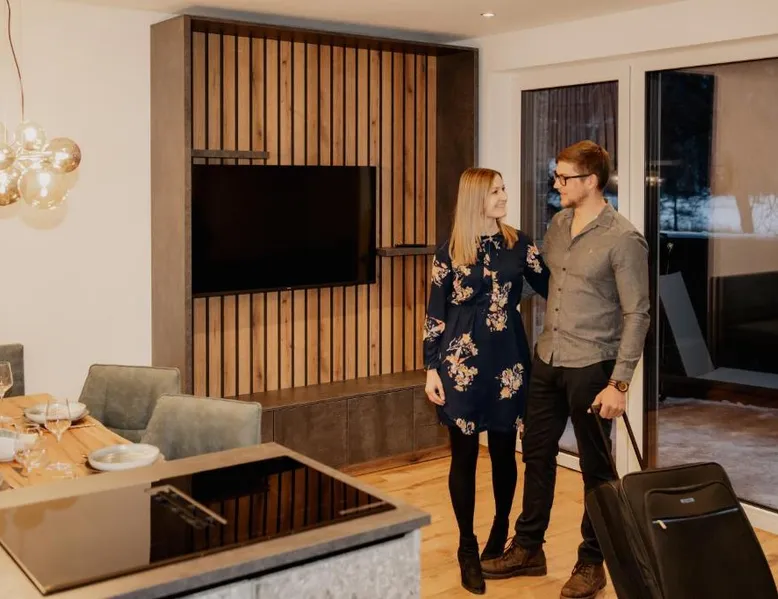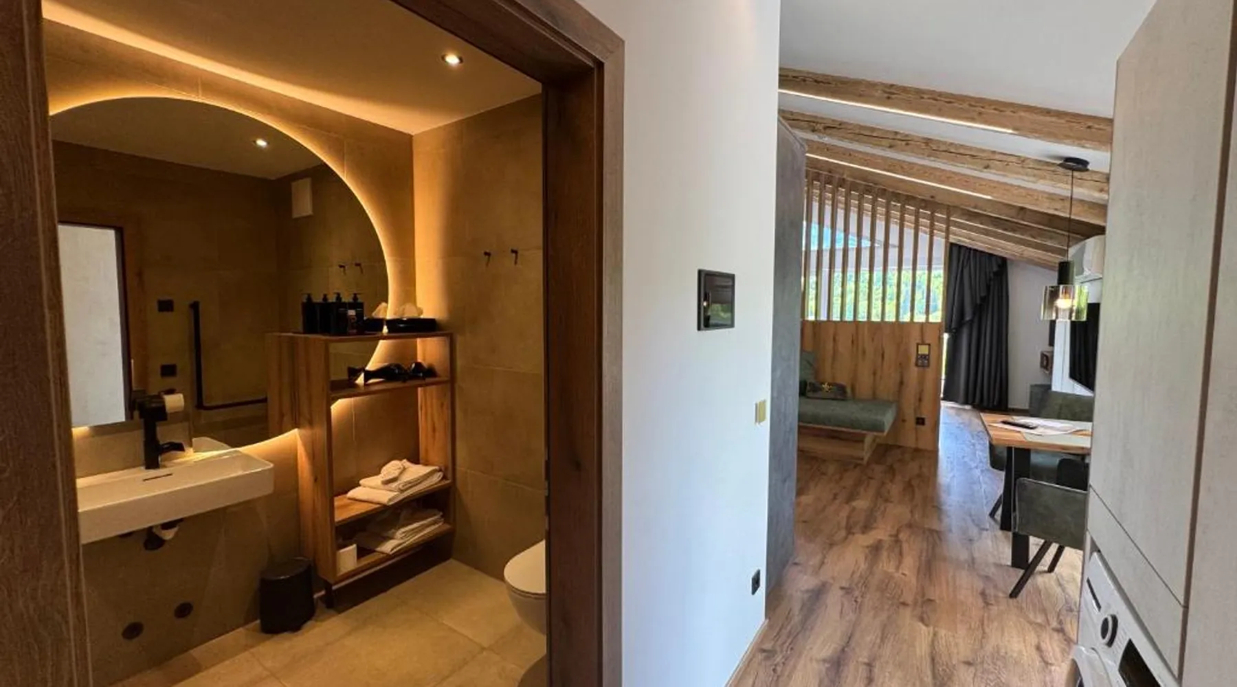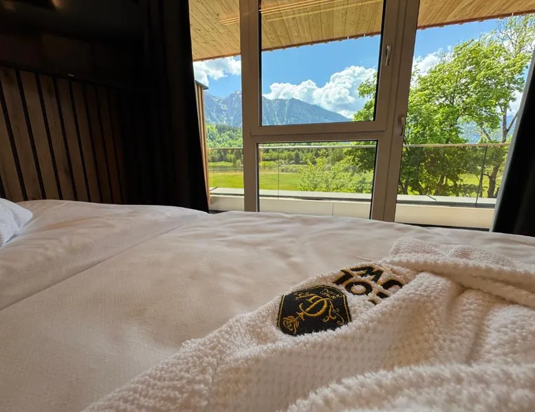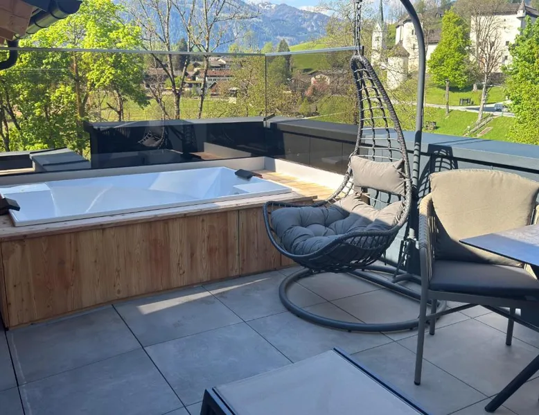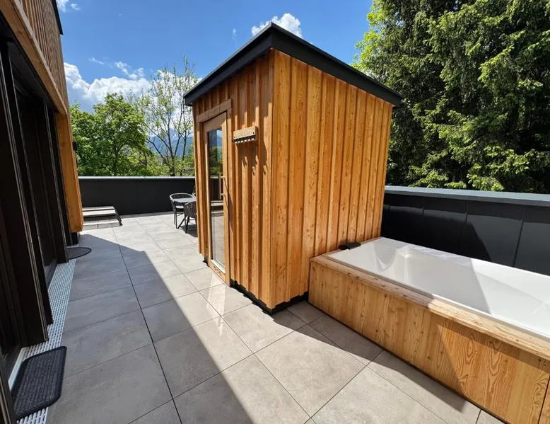 Modern Accommodations: Das Goldjuwel in Goldegg offers recently renovated aparthotel units with private spa and wellness centers. Each apartment features a kitchenette, balcony, and private bathroom. Spa and Wellness: Guests can relax in the sauna, open-air bath, or sun terrace. The spa and wellness center includes beauty services, yoga classes, and fitness facilities. Dining Experience: The family-friendly restaurant serves Austrian cuisine with vegetarian, vegan, and gluten-free options. Breakfast includes local specialties, fresh pastries, and mountain views. Activities and Surroundings: Located 43 mi from Salzburg Airport, Das Goldjuwel is near winter sports and attractions such as Eisriesenwelt Werfen (20 mi) and GC Goldegg (2.9 mi). Guests enjoy hiking, skiing, and cycling. Guests will have a special experience as this apartment offers a pool with a view and a sauna. This spacious apartment consists of 1 living room, 2 separate bedrooms and 2 bathrooms with a walk-in shower and free toiletries. Guests will find a stovetop, a refrigerator, a dishwasher and kitchenware in the well-equipped kitchen. The apartment also offers a barbecue. The air-conditioned apartment provides a flat-screen TV with cable channels, a washing machine, soundproof walls, a mini-bar as well as mountain views. The unit offers 2 beds.