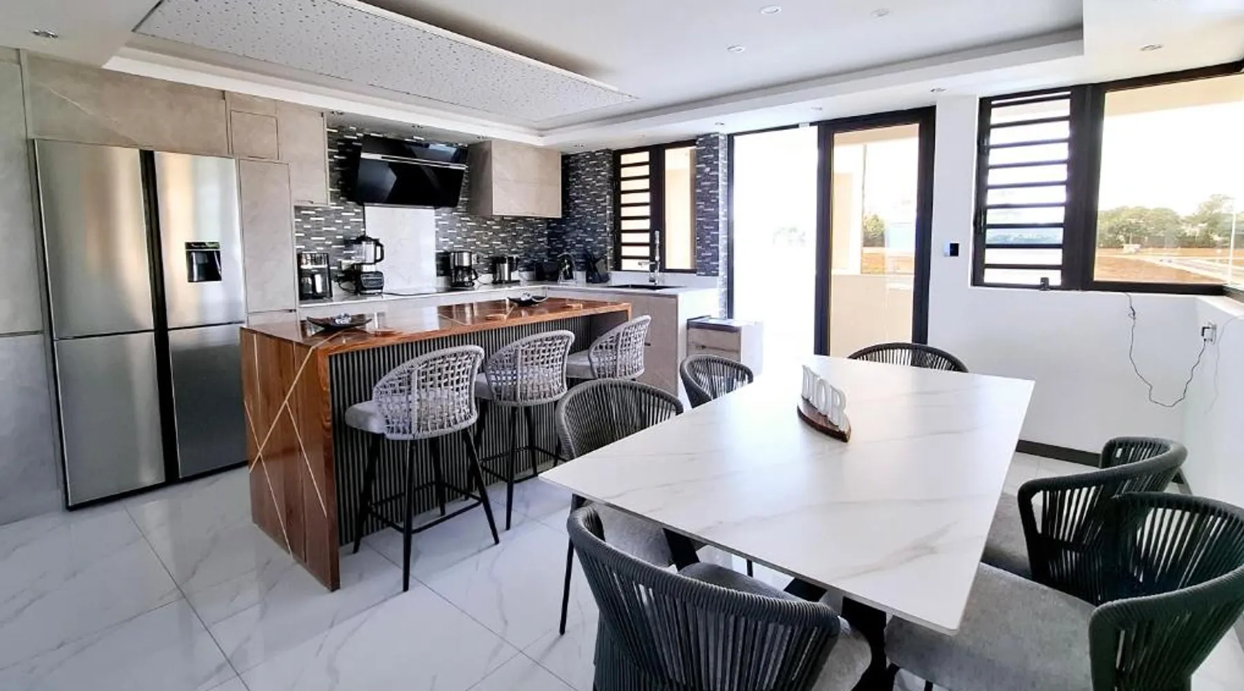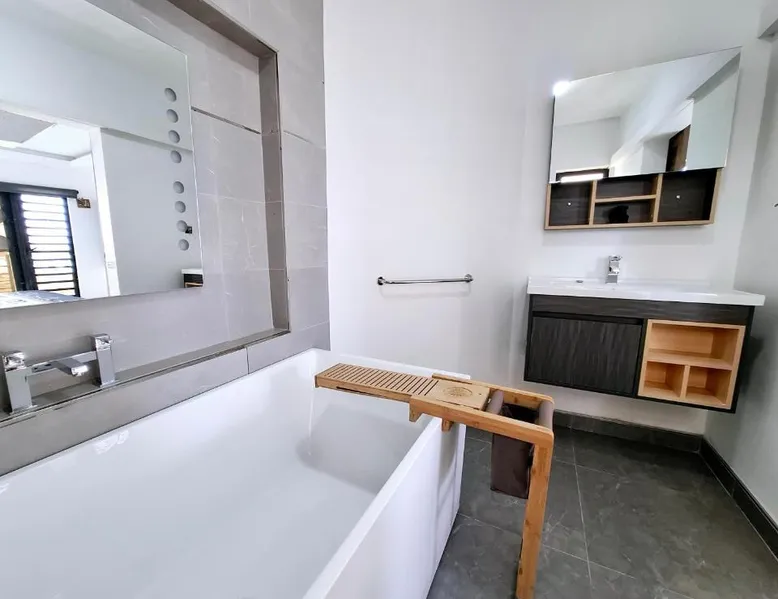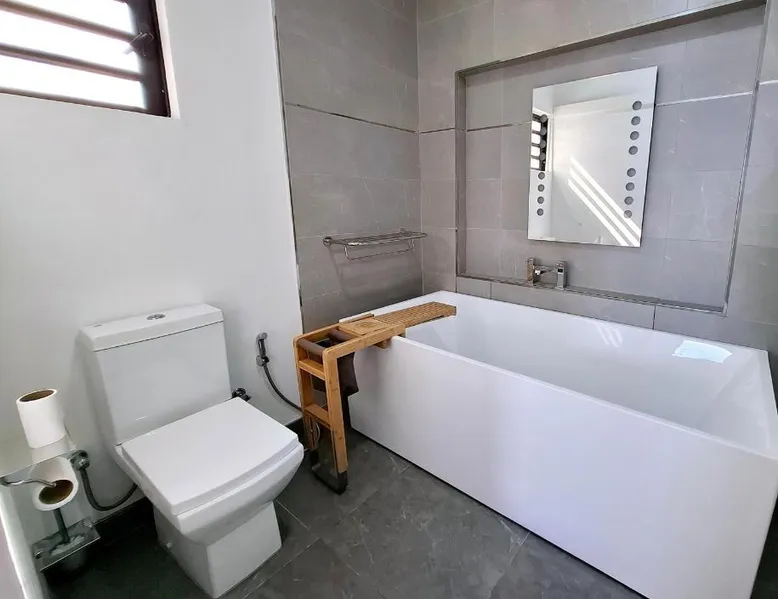 Offering an outdoor swimming pool, Peaceful Apartments with Pool - West Villa offers accommodations in Mon Goût. Both free Wifi and parking on-site are accessible at the apartment free of charge. Rooms come with a terrace. At the apartment complex, units come with air conditioning, a seating area, a flat-screen TV with streaming services, a kitchen, a dining area, and a private bathroom with a hair dryer and a bath. A dishwasher, an oven, and microwave are also offered, as well as a coffee machine and a kettle. In some units there's a dressing room for guests to change in. Sir Seewoosagur Ramgoolam Botanical Garden is 1.4 miles from Peaceful Apartments with Pool - West Villa, while Pamplemousses Garden is 1.5 miles away. Sir Seewoosagur Ramgoolam Airport is 35 miles from the property, and the property offers a paid airport shuttle service. Boasting 3 bedrooms, this spacious apartment has 1 bathroom with a bath, a seating area and terrace where you can relax. Meals can be prepared in the kitchen, which has a stovetop, a refrigerator, a dishwasher and kitchenware. This air-conditioned apartment includes a dining area, a flat-screen TV with streaming services a washing machine and an outdoor dining area. The unit offers 3 beds.