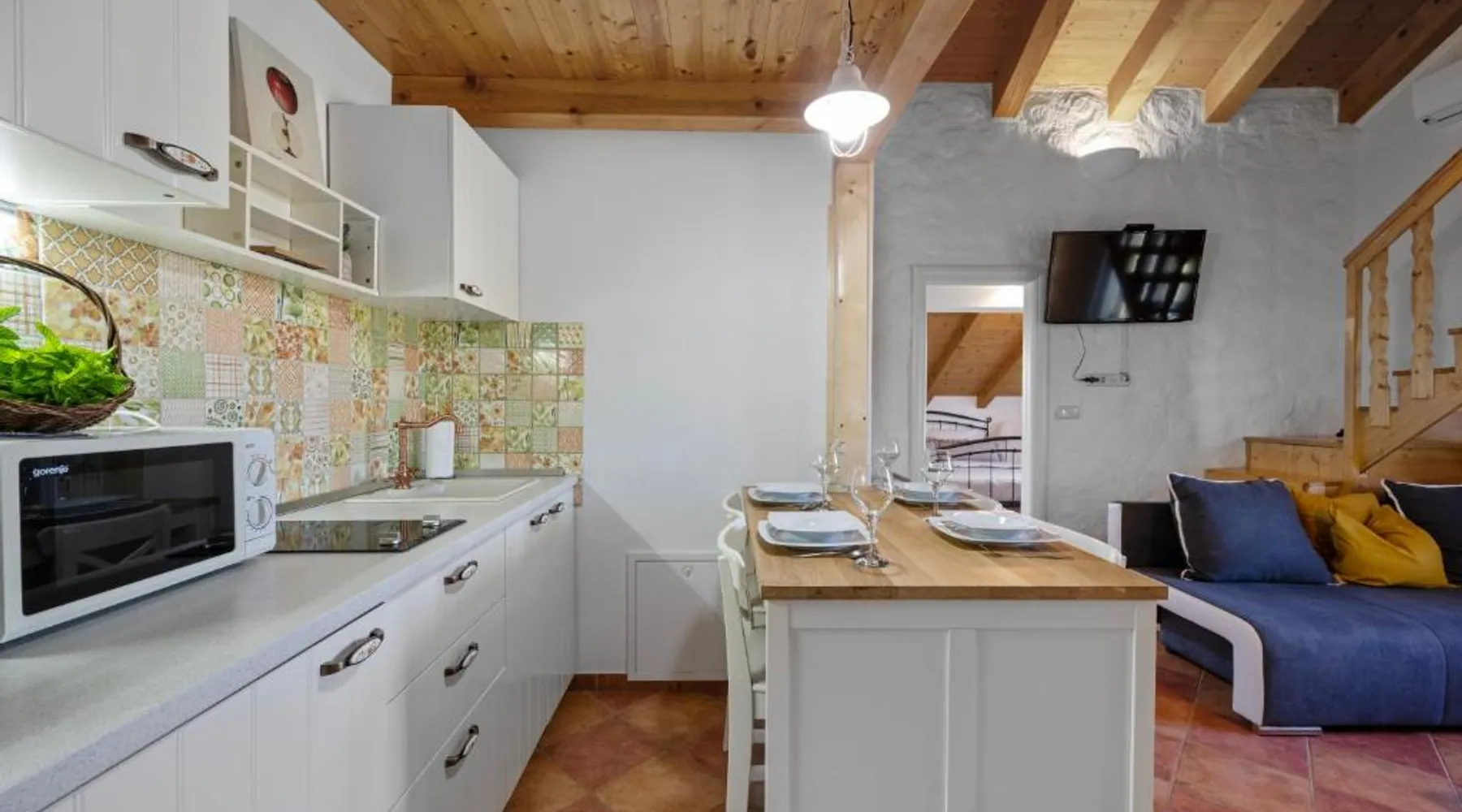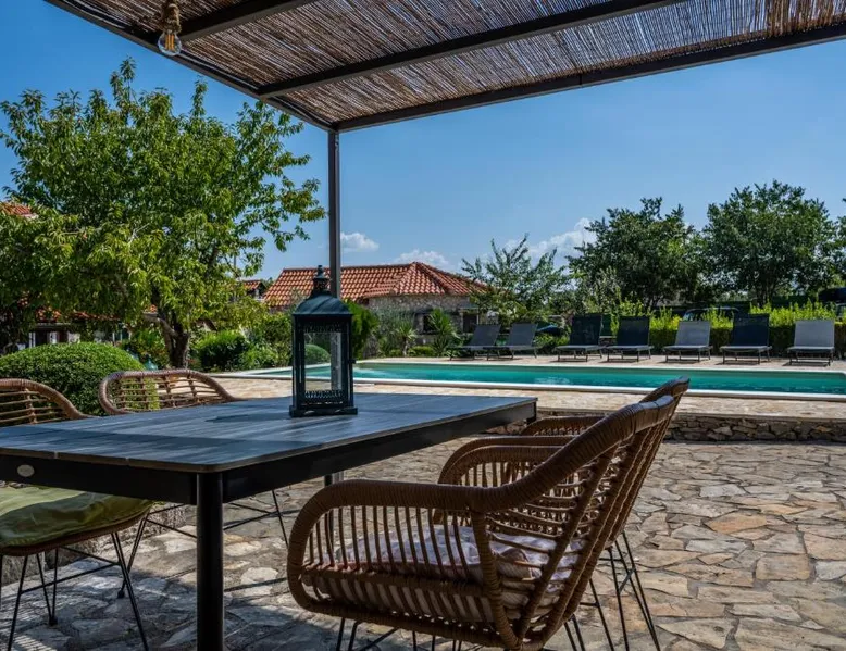 Kalpic Suites & Villa is located near the Krka National Park is unique place you can find in Šibenik area, in the middle of nowhere at the green oasis, only 11 mi from the city of Šibenik. It consists of several different types of accommodations from small stone cottage to premium suites. Each bedroom is set up with antique furniture, mainly out of wood decorated in a recognizable authentic style. Vodice is 17 mi away while Trogir is 32 mi from Kalpic Suites & Villa. the closest airport is Split Airport, 32 mi away. This spacious bungalow comes with 1 living room, 2 separate bedrooms and 2 bathrooms with a shower and free toiletries. The bungalow's kitchenette, which has a refrigerator and kitchenware, is available for cooking and storing food. The air-conditioned bungalow features a TV with cable channels, a private entrance, a tea and coffee maker, a seating area as well as garden views. The unit has 3 beds.