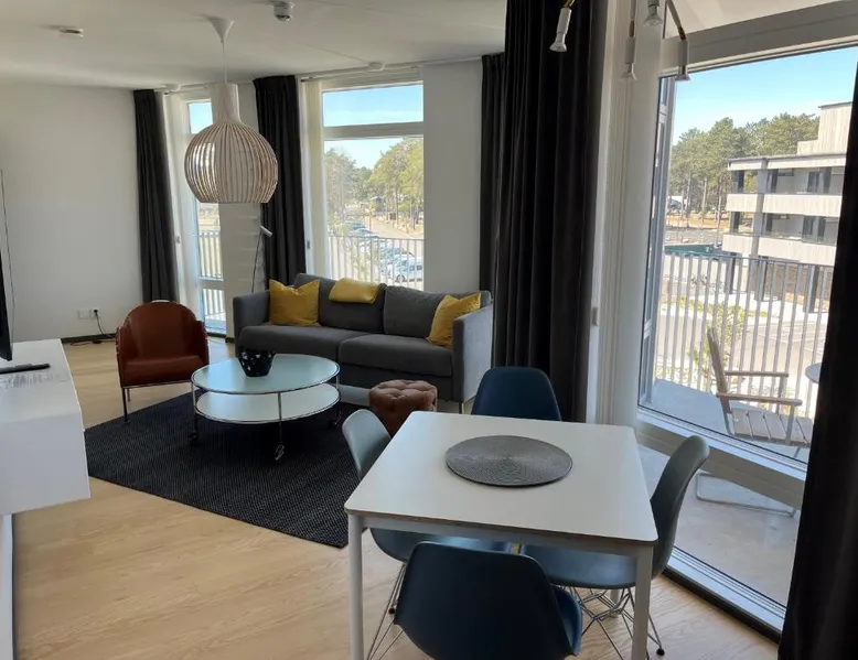 Beachfront Location: ÅhusBrygga Apartment Hotel in Åhus offers direct beachfront access and stunning sea views. Guests can relax on the terrace or enjoy the bar, perfect for unwinding by the shore. Comfortable Accommodations: The aparthotel features family rooms with balconies, private bathrooms, and fully equipped kitchens. Additional amenities include free WiFi, washing machines, and free on-site private parking. Leisure and Activities: Guests can participate in walking, bike, and hiking tours, or enjoy the pool with a view. The hotel provides free WiFi, live music, and a elevator for added convenience. Nearby Attractions: Täppet Havsbad is a 7-minute walk away, while Kristianstad Train Station is 12 mi from the property. Highly rated for its beachfront access and scenic views. This spacious apartment is consisted of of 1 living room, 3 separate bedrooms and 1 bathroom with a shower and a hairdryer. The well-equipped kitchen features a stovetop, a refrigerator, a dishwasher and kitchenware. The apartment offers a washing machine, soundproof walls, a tea and coffee maker, a flat-screen TV, as well as sea views. The unit offers 3 beds.