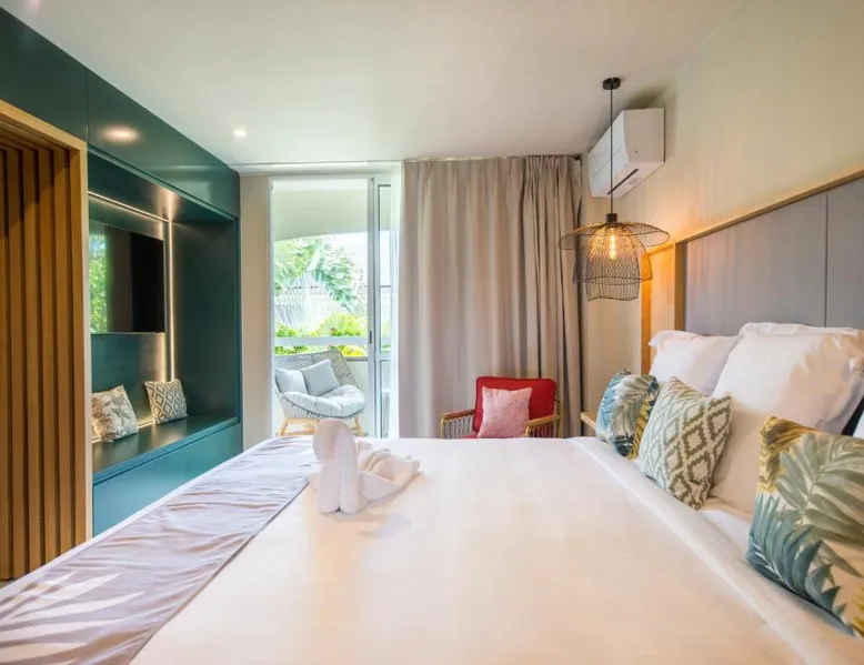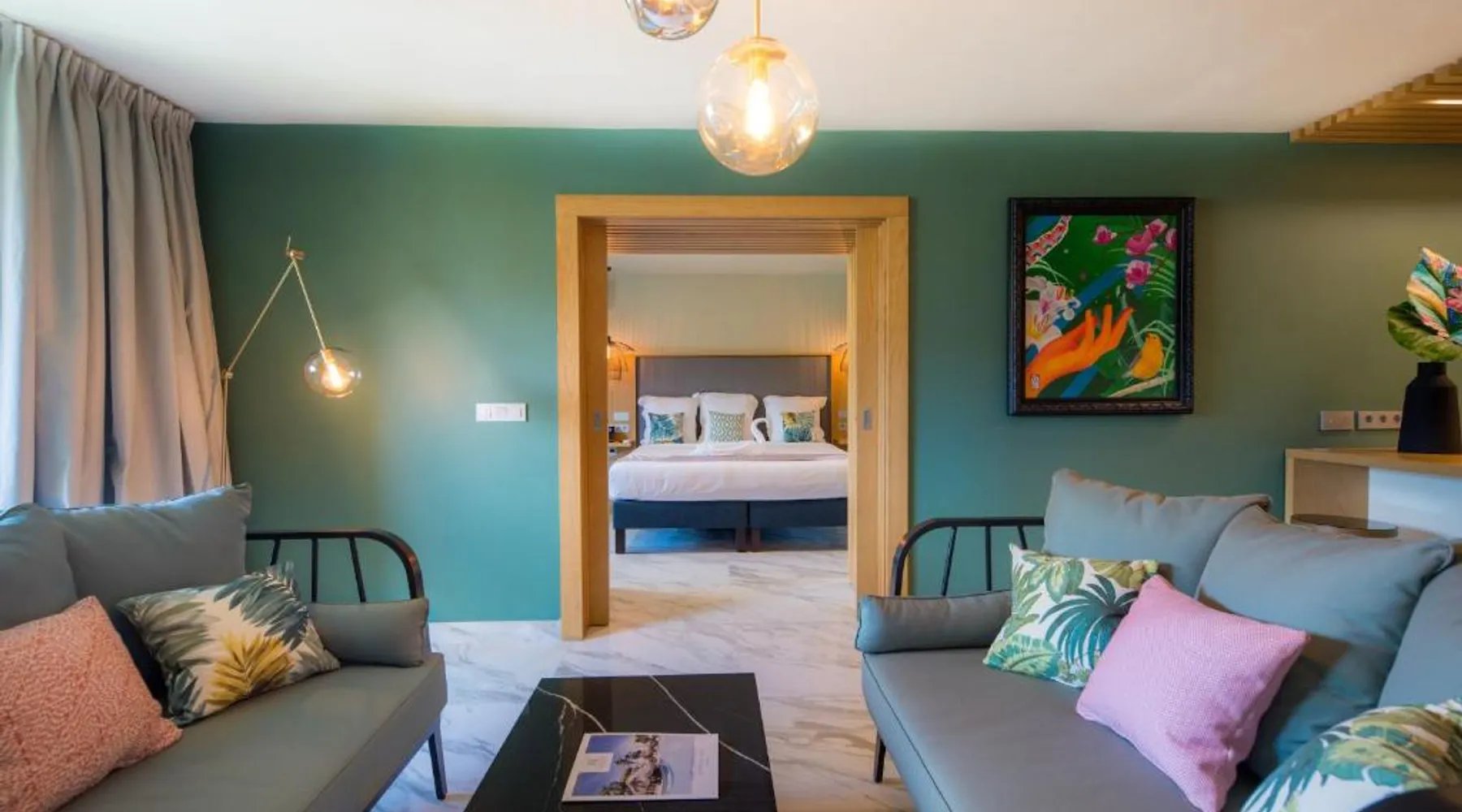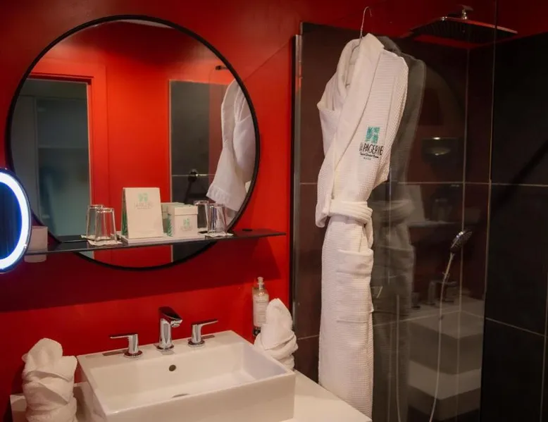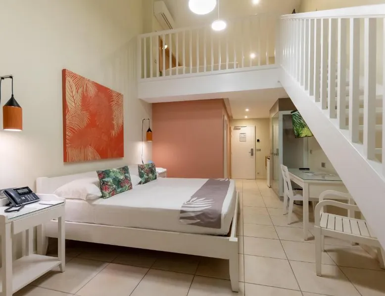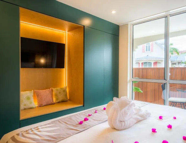 Decorated in bright colors, this hotel in Trois Ilets is 3.1 mi from Empress Josephine Golf Course. The hotel features Le Pitaya restaurant, outdoor pool and spacious rooms with a flat-screen satellite TV. Wi-Fi access is offered in all guest rooms at La Pagerie - Tropical Garden Hotel. The game room includes a pool table . A business center is also offered. Services available at La Pagerie include a 24-hour front desk with concierge and tour information. This suite features 1 living room, 1 separate bedroom and 1 bathroom with a walk-in shower and free toiletries. The air-conditioned suite features a flat-screen TV with cable channels, soundproof walls, a tea and coffee maker, a seating area as well as city views. The unit has 1 bed.