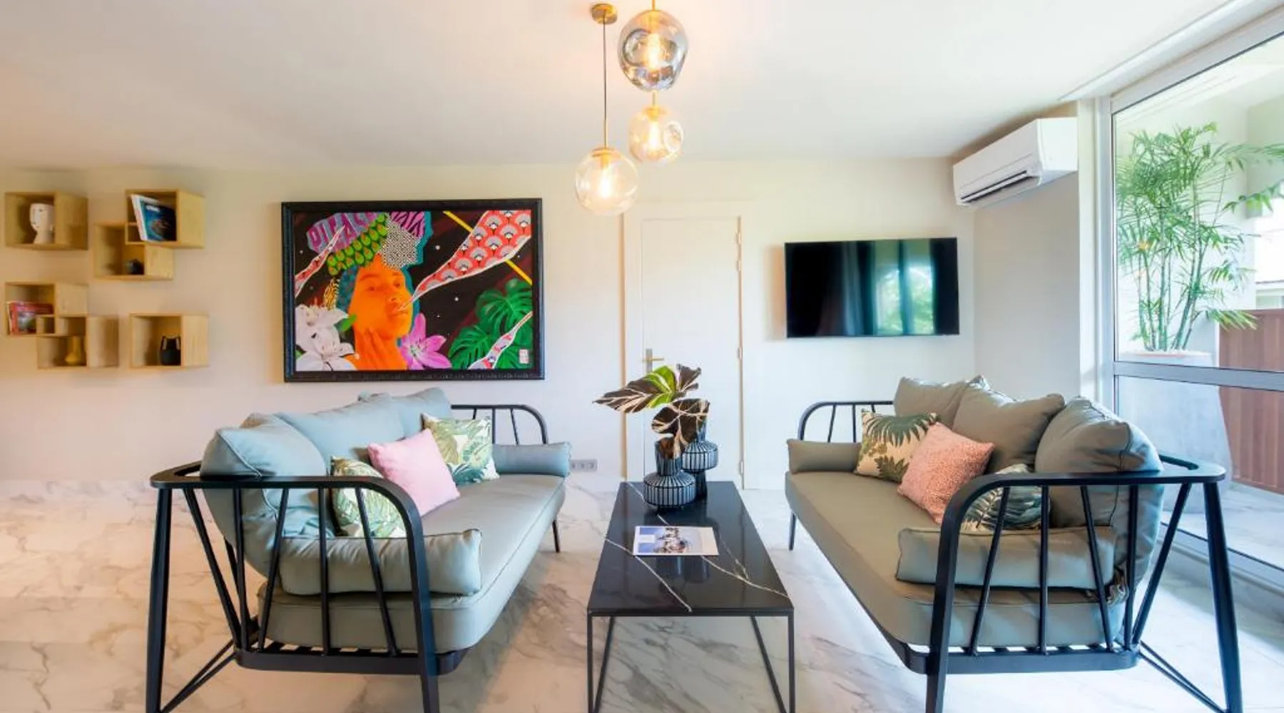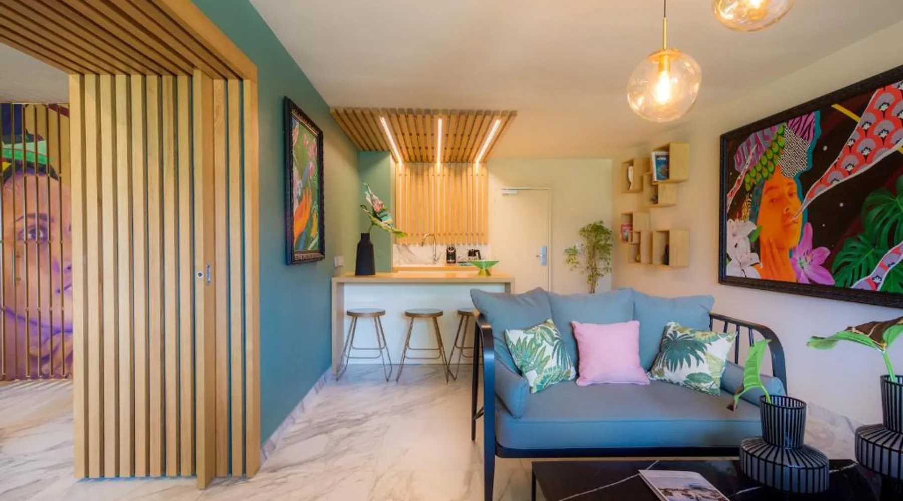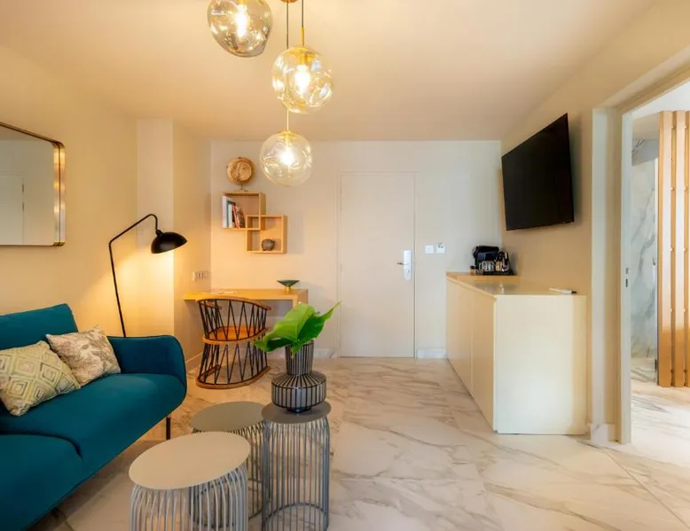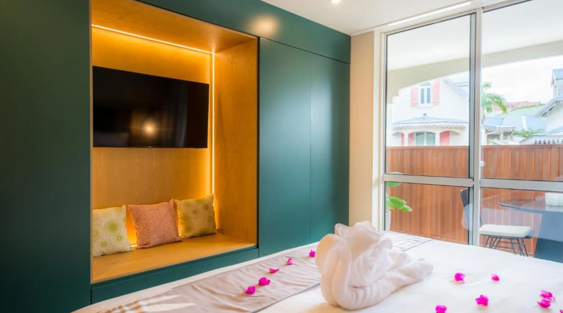Decorated in bright colors, this hotel in Trois Ilets is 3.1 mi from Empress Josephine Golf Course. The hotel features Le Pitaya restaurant, outdoor pool and spacious rooms with a flat-screen satellite TV. Wi-Fi access is offered in all guest rooms at La Pagerie - Tropical Garden Hotel. The game room includes a pool table . A business center is also offered. Services available at La Pagerie include a 24-hour front desk with concierge and tour information. This suite features 1 living room, 1 separate bedroom and 1 bathroom with a walk-in shower and free toiletries. The air-conditioned suite features a flat-screen TV with cable channels, soundproof walls, a tea and coffee maker, a seating area as well as city views. The unit has 1 bed.
