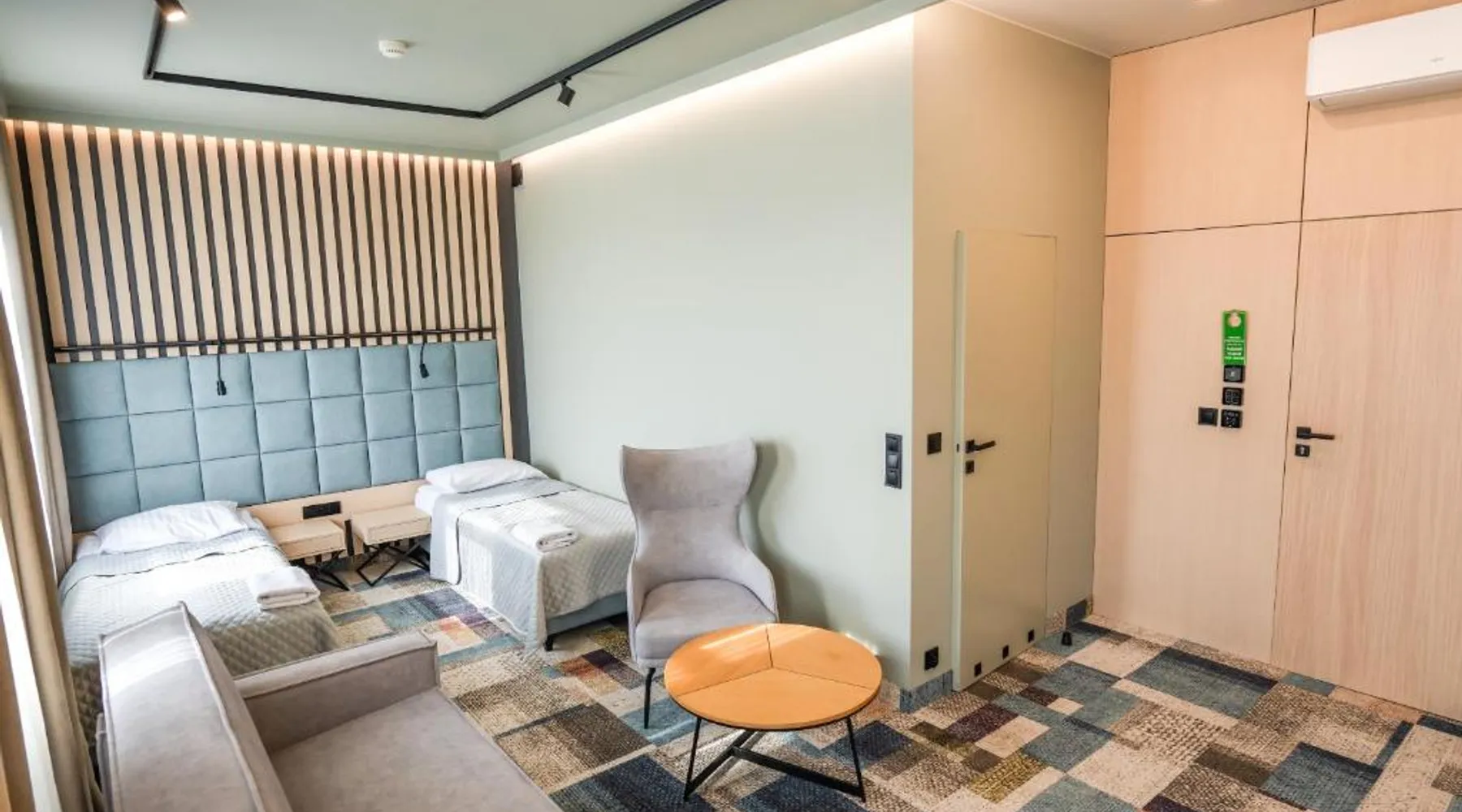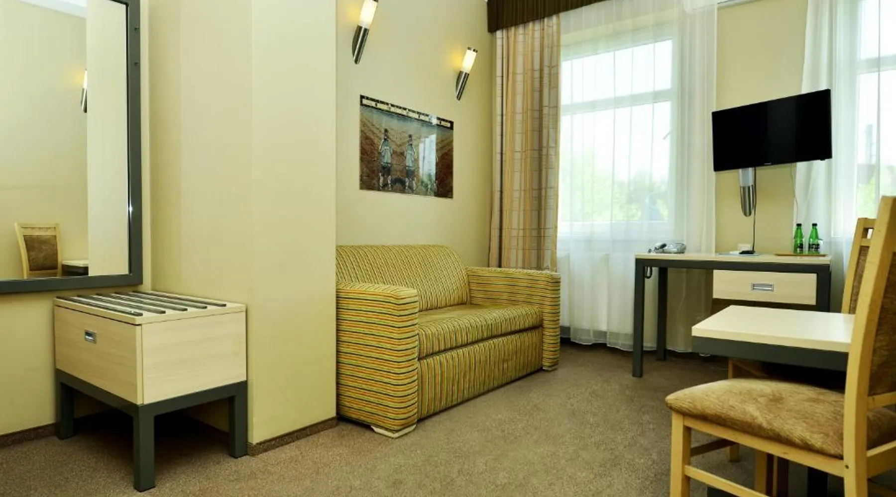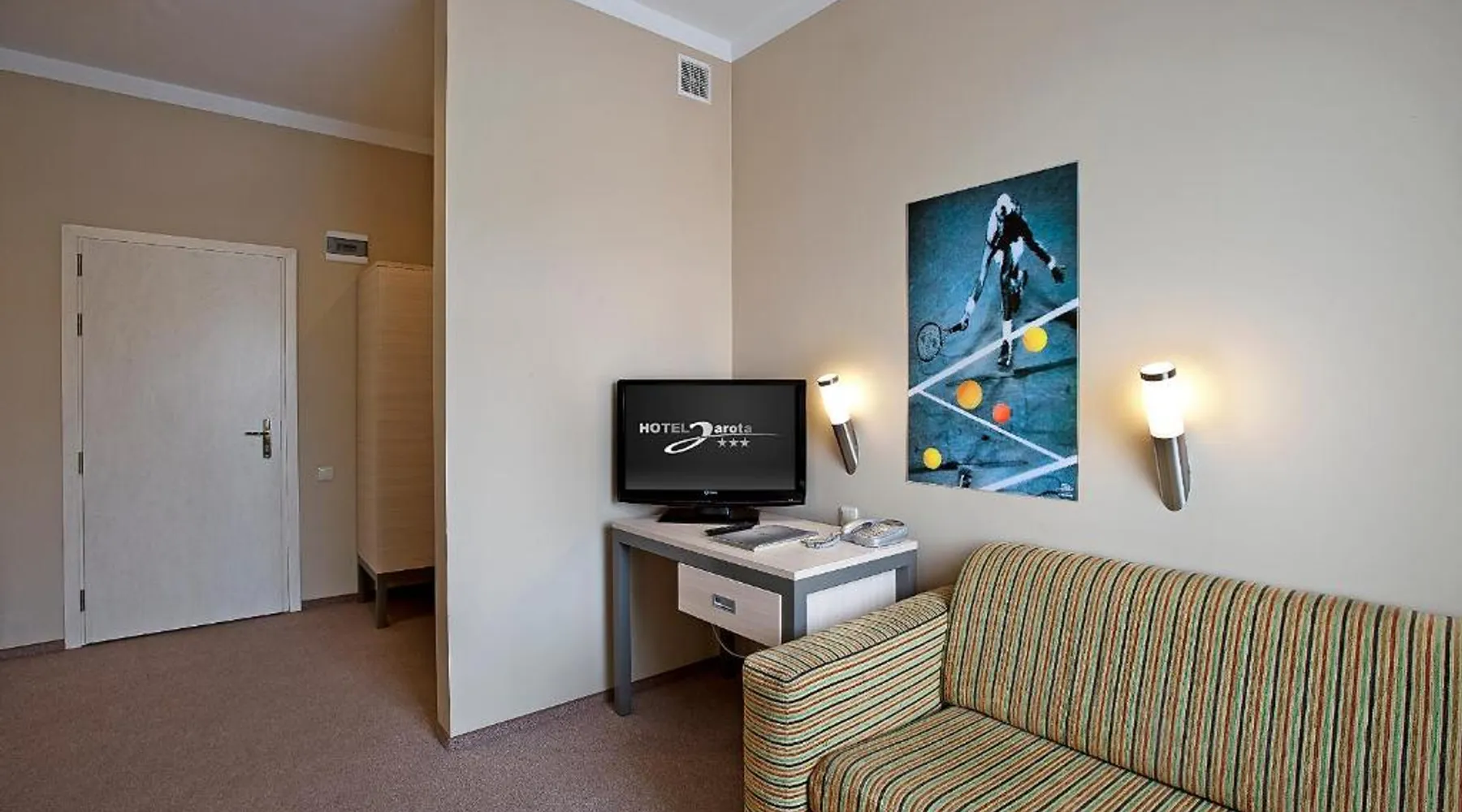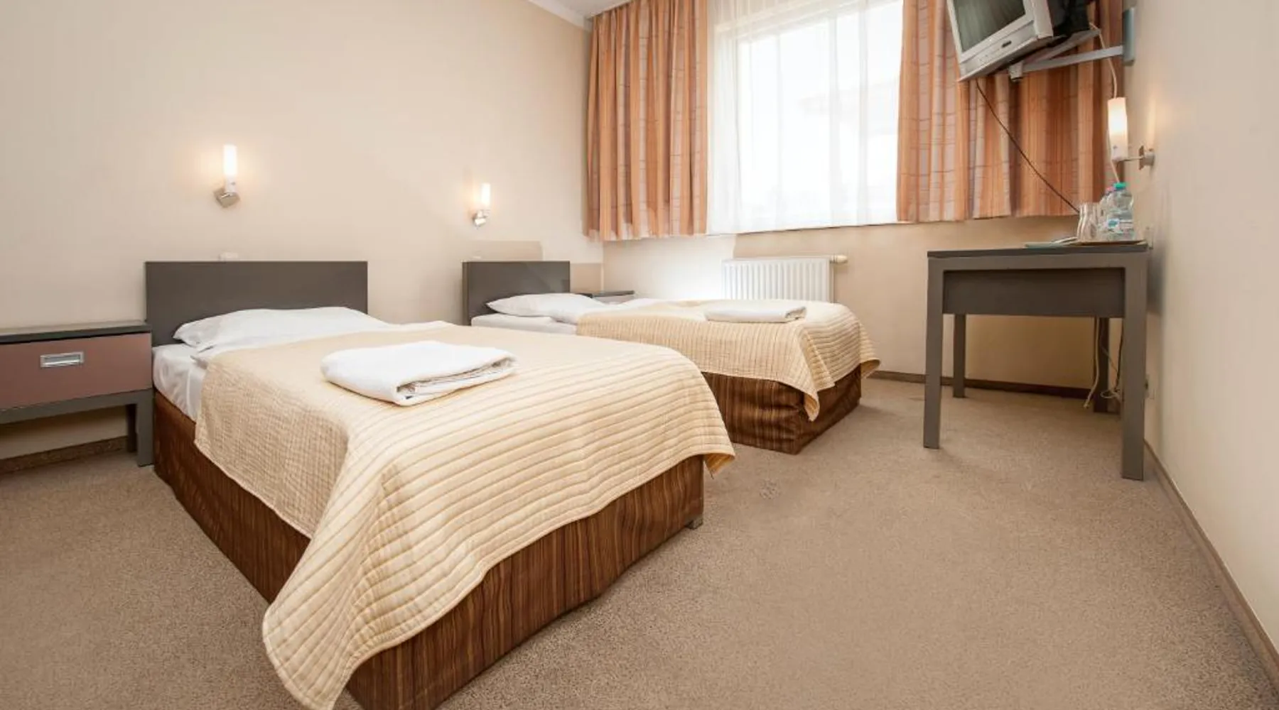 Hotel Jarota is a 3-star property where guests enjoy free access to the seasonal outdoor swimming pool and the gym. An aqua park where guests can use the steam room, hot tub, indoor swimming pool and slides for 1 hour daily, free of charge is available. There is also free Wi-Fi in all areas, a free parking and a 24-hour reception. Rooms at the Jarota are bright and feature elegant interior. Each comes with a satellite TV and a modern bathroom with a shower. A complimentary bottle of mineral water is also available. Hotel Jarota includes a garden furnished with chairs and umbrellas on site. The tennis court is available at an extra cost. The air-conditioned restaurant at the Jarota offers à la carte menu. It specializes in Polish and European cuisine. Jarocin’s Old Town is located 0.6 mi from the property. The picturesque Jarocin Park is only 656 feet away. This apartment's special feature is the sauna. The air-conditioned apartment has 1 bedroom and 2 bathrooms with a shower and a hairdryer. The apartment offers soundproof walls, a wardrobe, a safe deposit box, a sofa, as well as a flat-screen TV with cable channels. The unit has 3 beds.