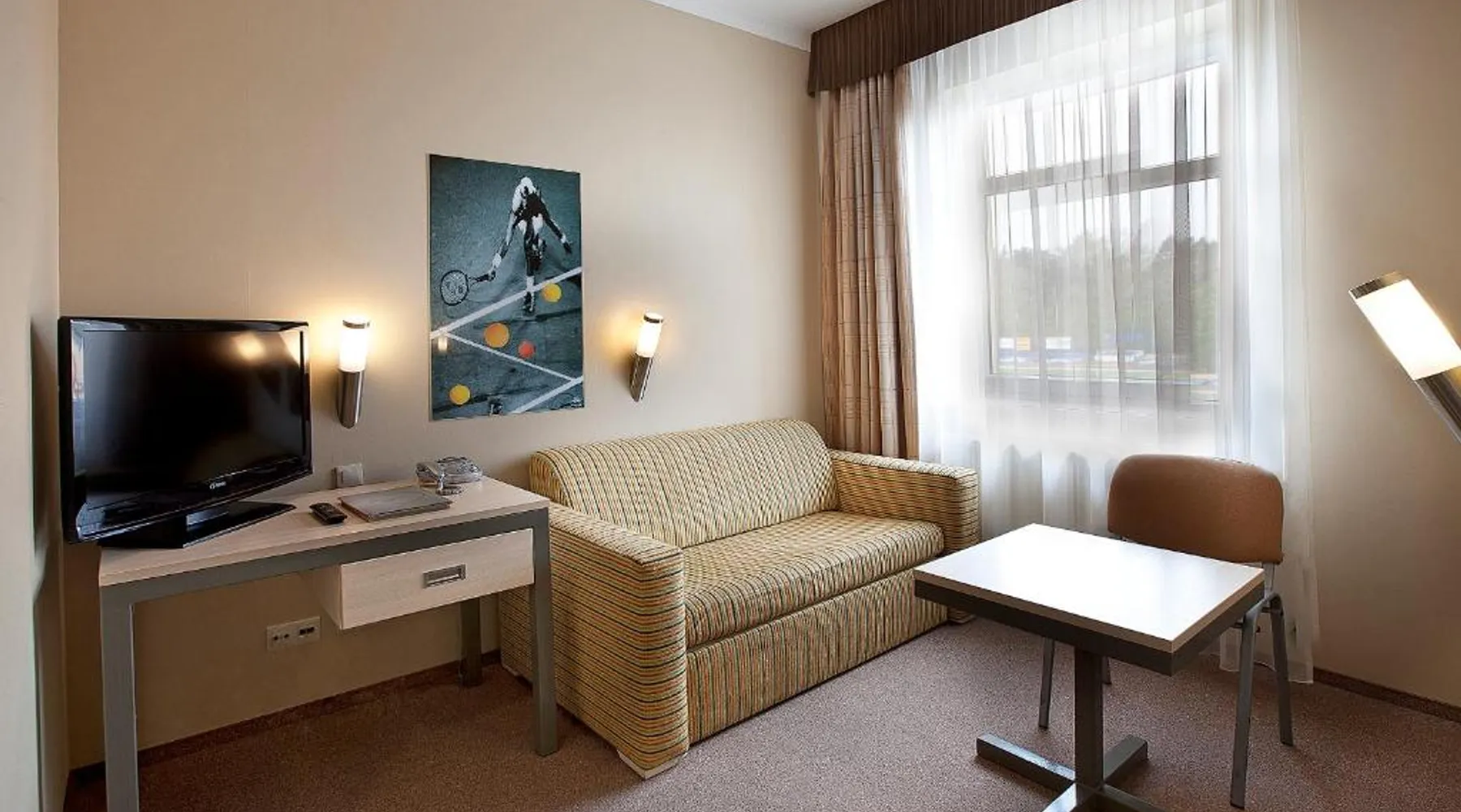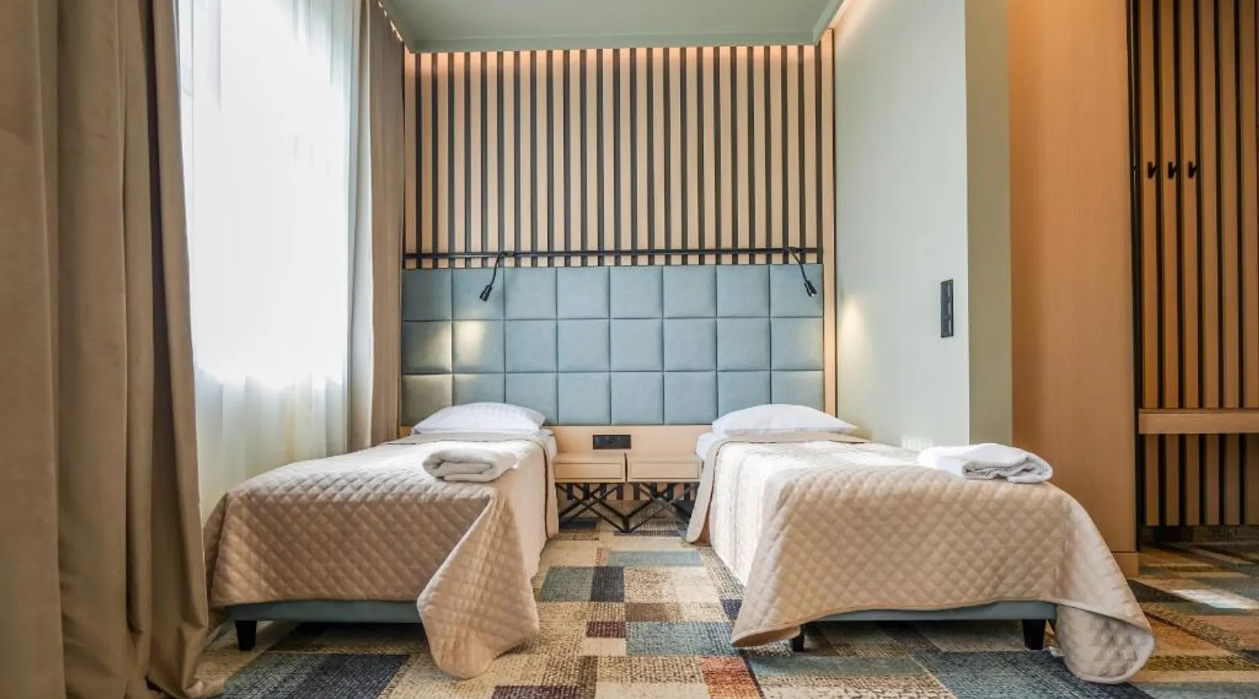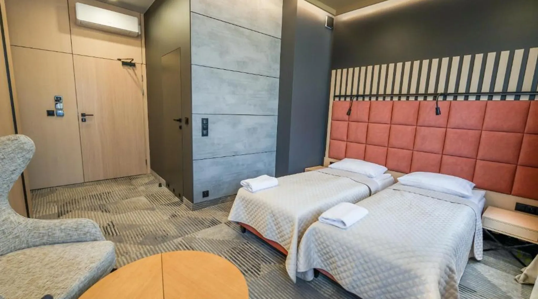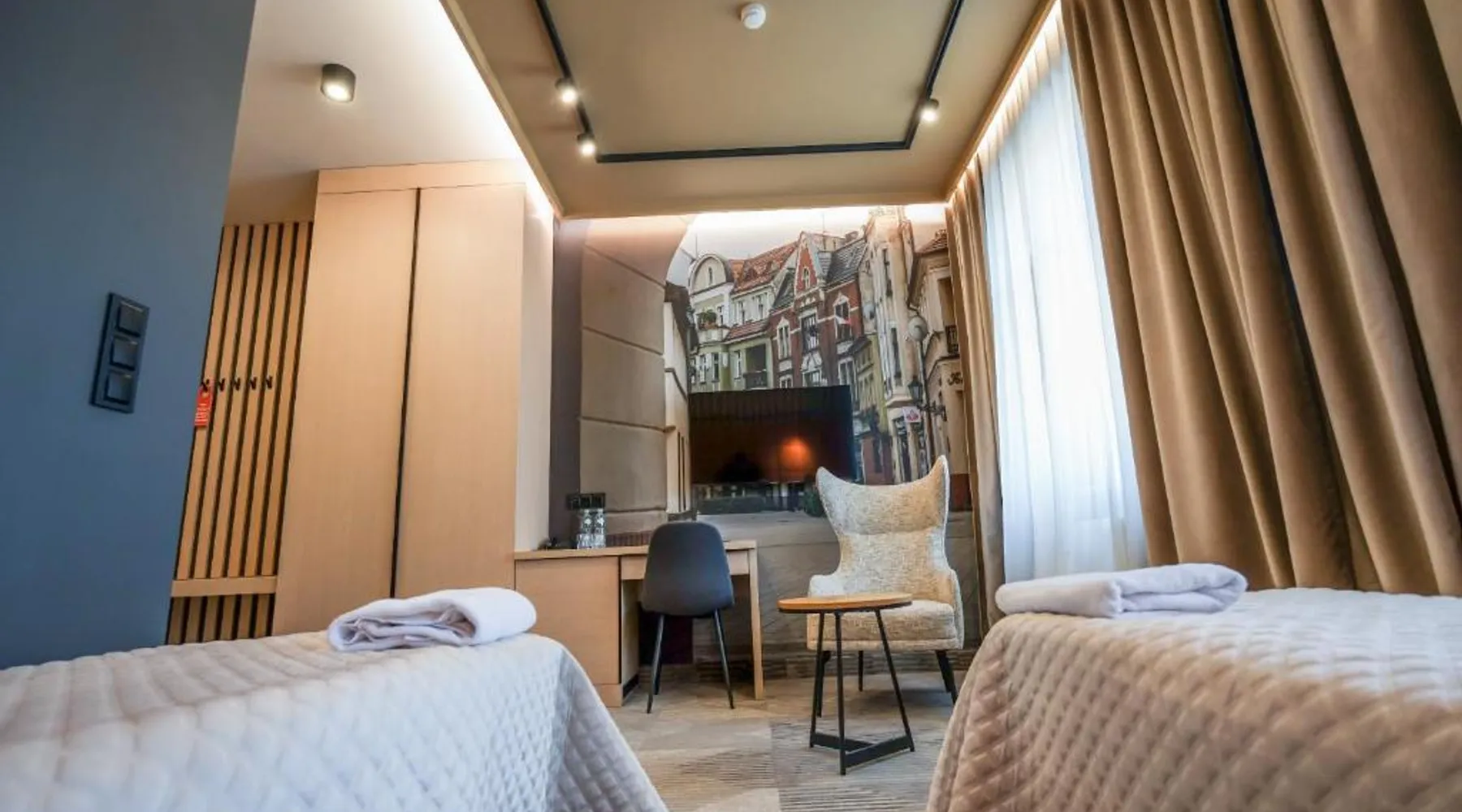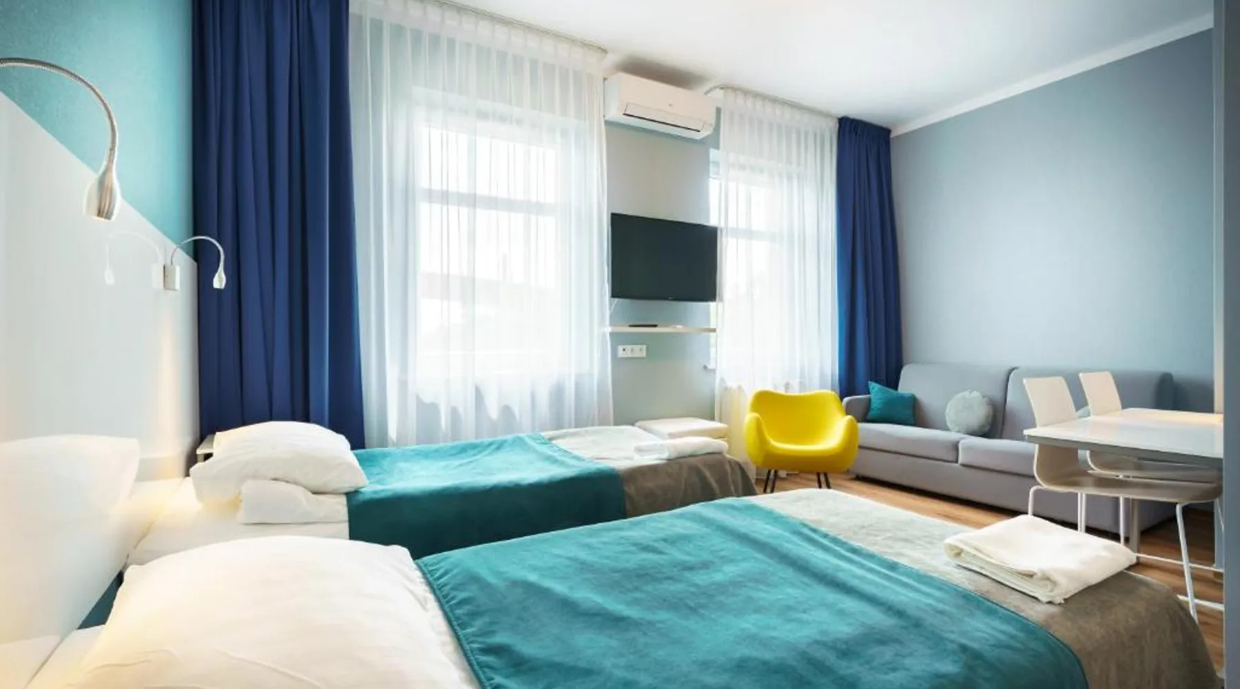 Hotel Jarota is a 3-star property where guests enjoy free access to the seasonal outdoor swimming pool and the gym. An aqua park where guests can use the steam room, hot tub, indoor swimming pool and slides for 1 hour daily, free of charge is available. There is also free Wi-Fi in all areas, a free parking and a 24-hour reception. Rooms at the Jarota are bright and feature elegant interior. Each comes with a satellite TV and a modern bathroom with a shower. A complimentary bottle of mineral water is also available. Hotel Jarota includes a garden furnished with chairs and umbrellas on site. The tennis court is available at an extra cost. The air-conditioned restaurant at the Jarota offers à la carte menu. It specializes in Polish and European cuisine. Jarocin’s Old Town is located 0.6 mi from the property. The picturesque Jarocin Park is only 656 feet away. This apartment's special feature is the sauna. The air-conditioned apartment has 1 bedroom and 2 bathrooms with a shower and a hairdryer. The apartment offers soundproof walls, a wardrobe, a safe deposit box, a sofa, as well as a flat-screen TV with cable channels. The unit has 3 beds.