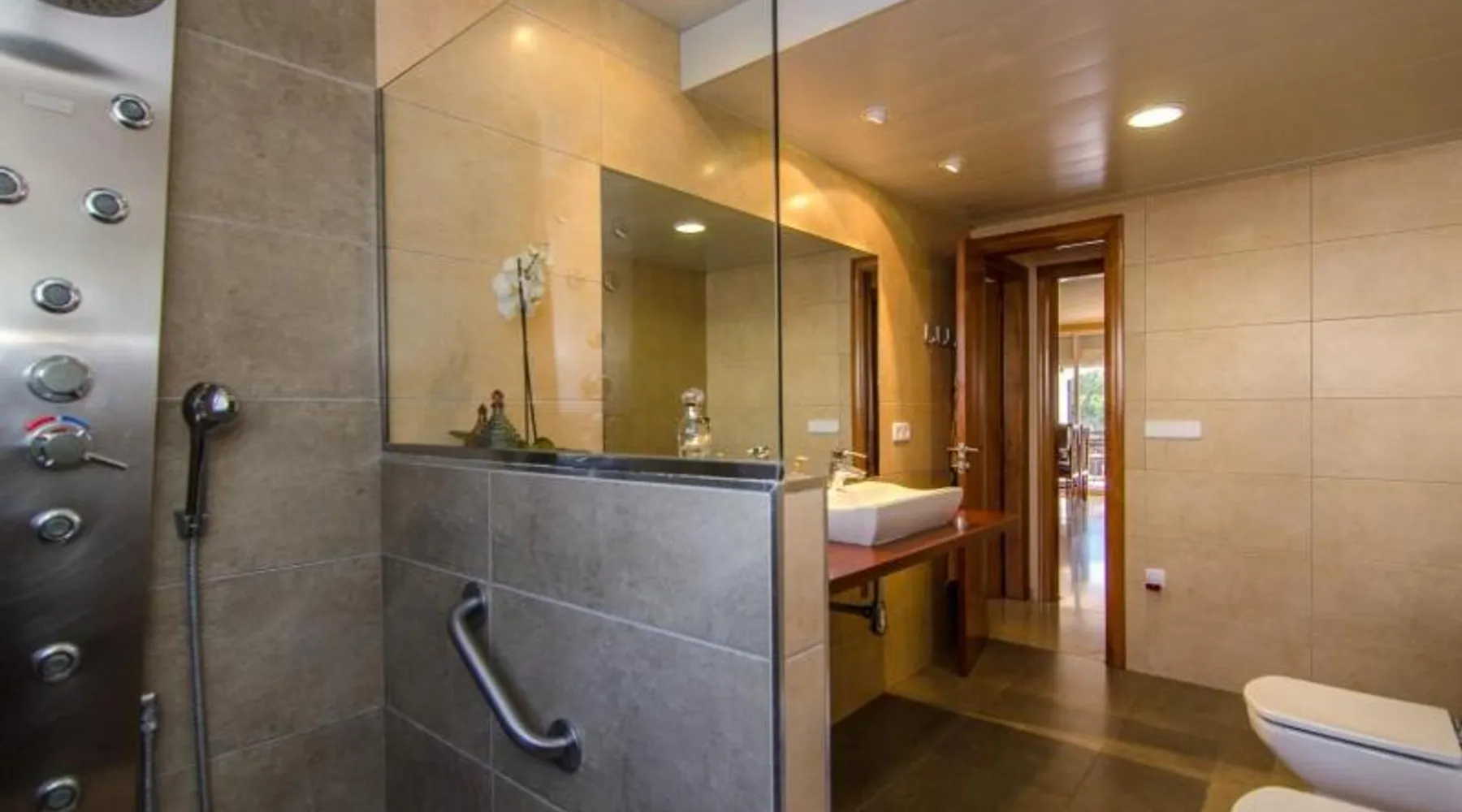 Elegant Accommodations: Club Villamar - Issei in Blanes offers a villa with four bedrooms and three bathrooms. The property features a spacious garden, terrace, and outdoor swimming pool. Free parking is available for guests. Modern Amenities: The villa includes a fully equipped kitchen with a refrigerator, microwave, dishwasher, oven, and toaster. Additional amenities include a washing machine, TV, and barbecue. Prime Location: Located 22 mi from Girona-Costa Brava Airport, the villa is a 6-minute walk from Cala de Sant Francesc. Nearby attractions include Water World (5 mi) and Gnomo Park (2.7 mi). Guests will have a special experience as this villa offers a private pool. This villa is consisted of of 4 bedrooms, kitchen, a terrace and 3 bathrooms with a bath. Guests will find a refrigerator, a dishwasher, kitchenware and an oven in the well-fitted kitchen. The villa also has a barbecue. This villa features a washing machine, a tea and coffee maker and a TV. The unit offers 5 beds.